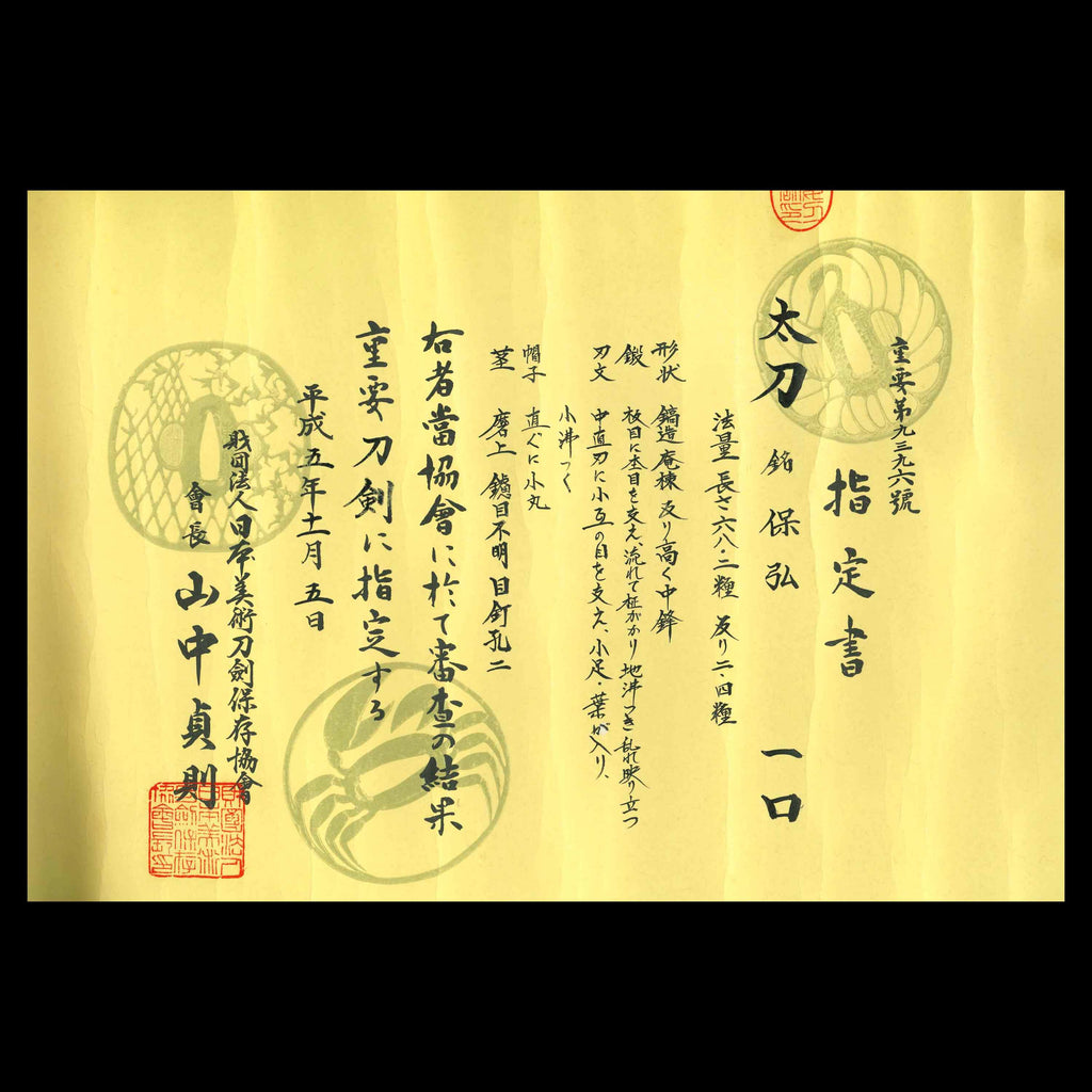 This is a rare opportunity to acquire a signed tachi from the Kamakura period, one of very few extant examples, and a highly valuable work by Yasuhiro, complete with a kunzan-style saya-gaki, to become your family treasure.