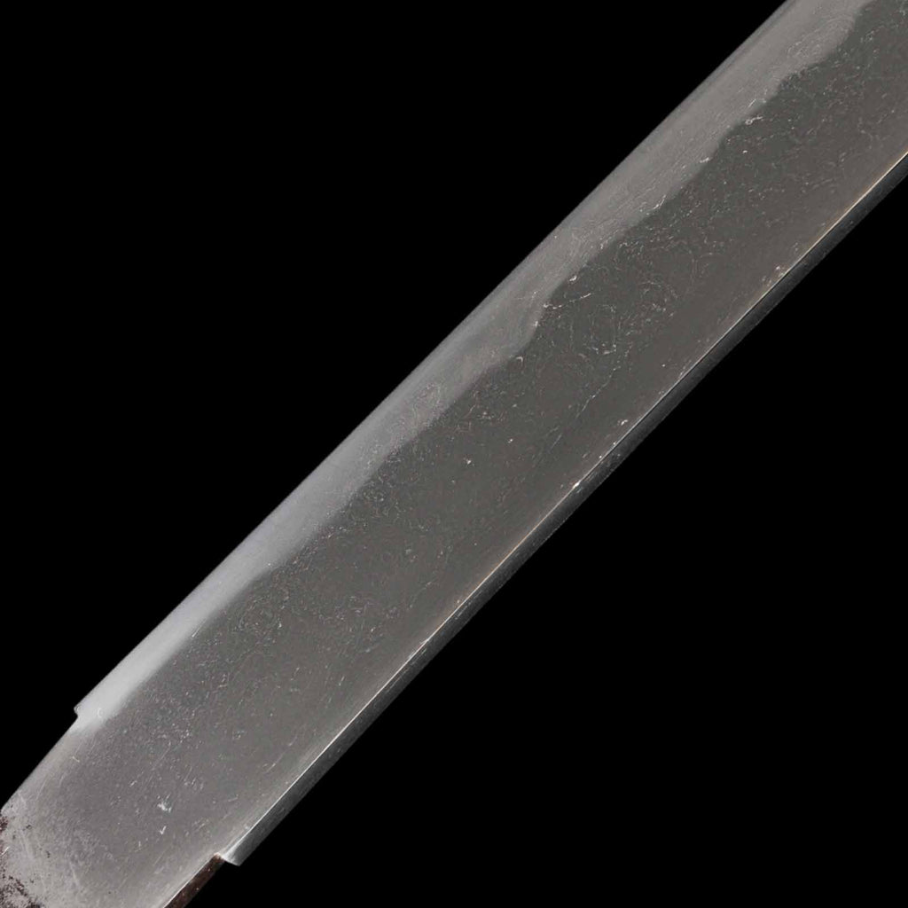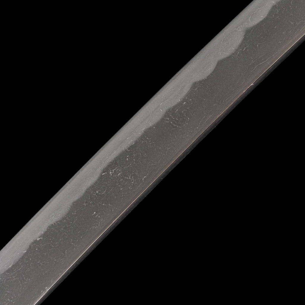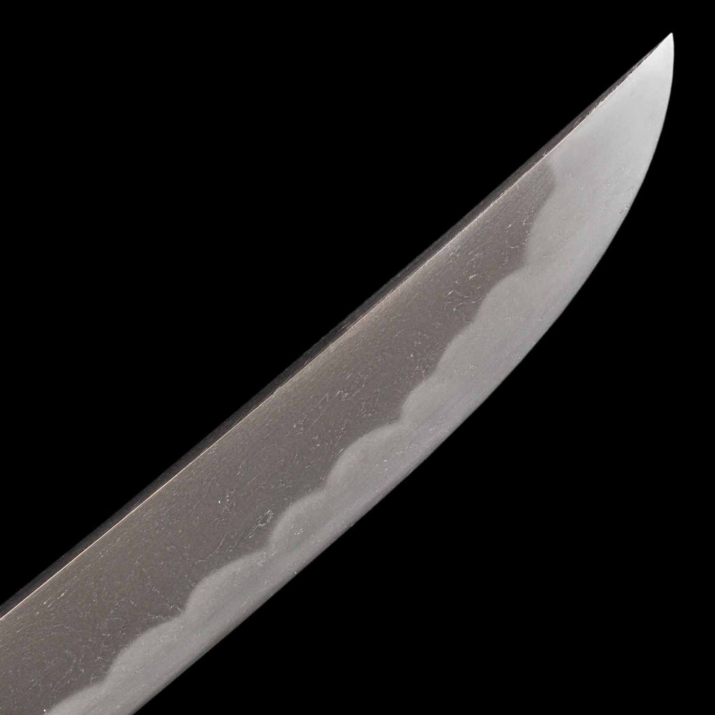Its condition is flawless, with the blade fully polished throughout—hardly believable for an antique. The jigane displays a fine grain pattern blending itame and mokume, with well-defined nie and visible yubashiri. The hamon is a sharp, vivid gunome pattern with vividly active patterns like kochoji and ashi.