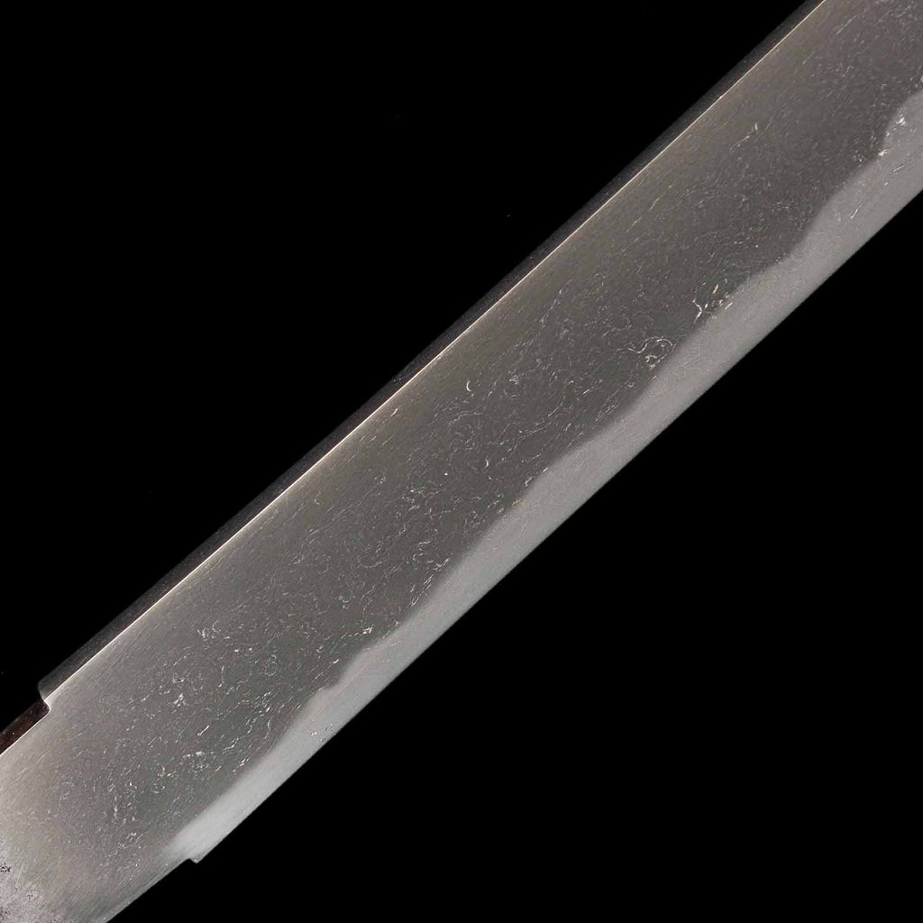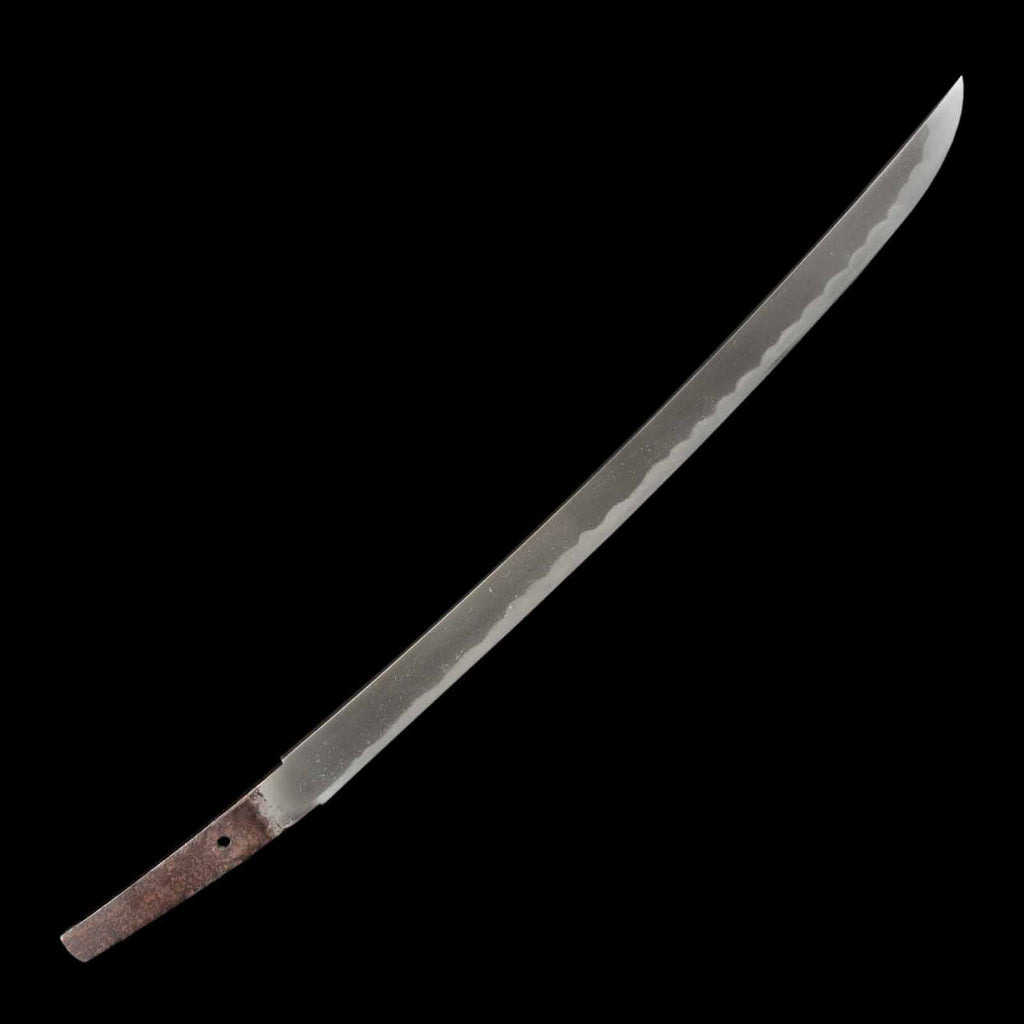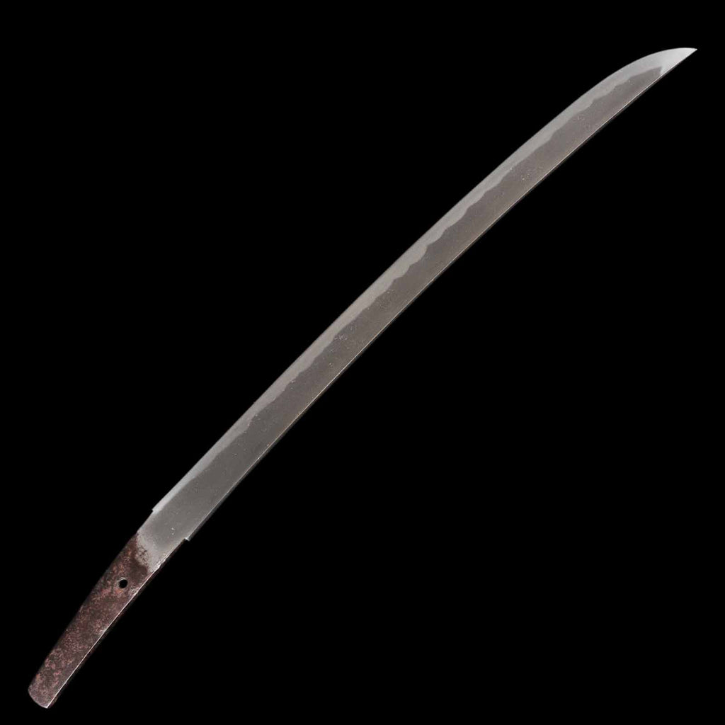 Its condition is flawless, with the blade fully polished throughout—hardly believable for an antique. The jigane displays a fine grain pattern blending itame and mokume, with well-defined nie and visible yubashiri. The hamon is a sharp, vivid gunome pattern with vividly active patterns like kochoji and ashi.