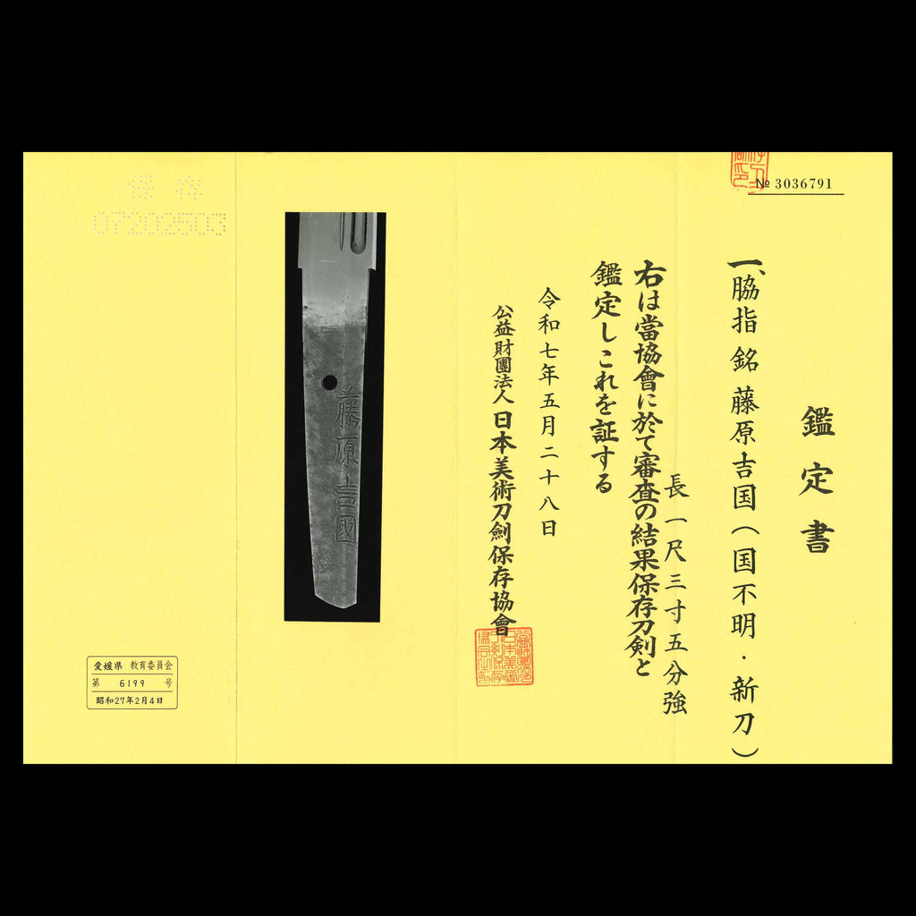 Fujiwara Yoshikuni was a disciple of Yoshimichi. While in Oshu, he went by the name Morishita Magobei. Around the Enpo era of the Edo period, he was invited to Tosa and served as a court swordsmith. His younger brother also excelled as a swordsmith, and one of his blades later became Sakamoto Ryoma's treasured sword.