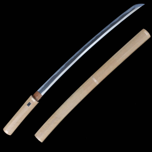 A beautiful wakizashi with a delicate, flawless, dainty blade. The koshirae are very beautiful with a rabbit motif…quite a few rabbits! The tsuba is more ‘rustic’ and functional, however. The ridged ‘kizamizaya’ is very eye-catching and 3hat attracted me to this modestly-priced wakizashi. The description suggested light scratching on the blade due to regular drawing from the kizamizaya but I really can’t see it at all, so I’m especially pleased and a sign of Japanese perfectionism!