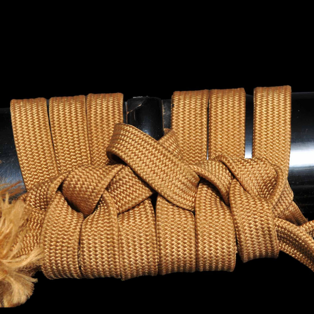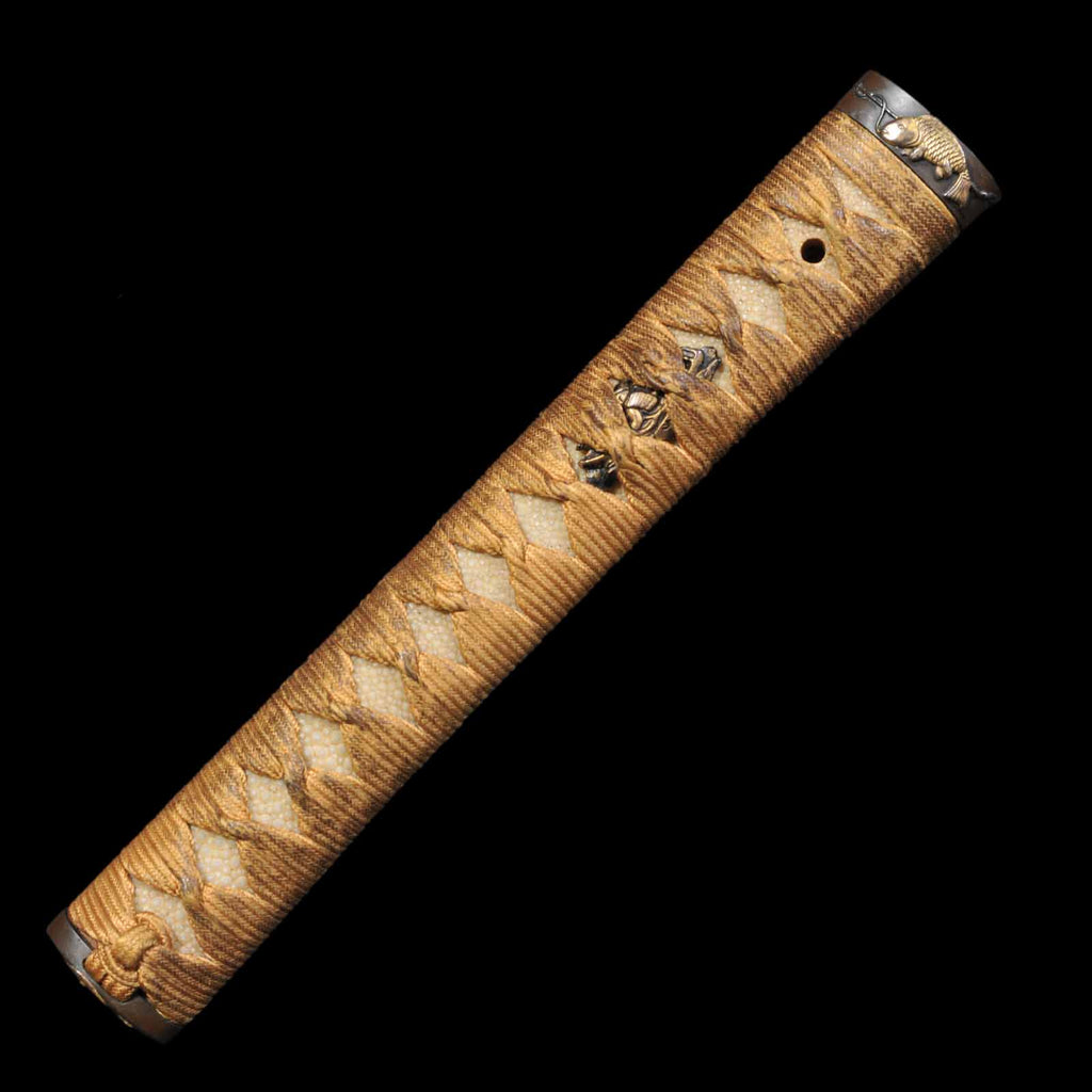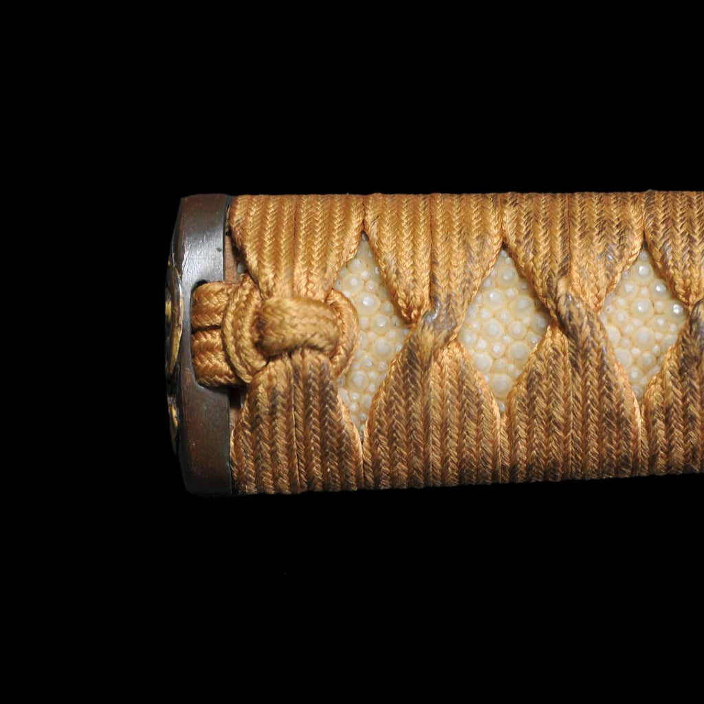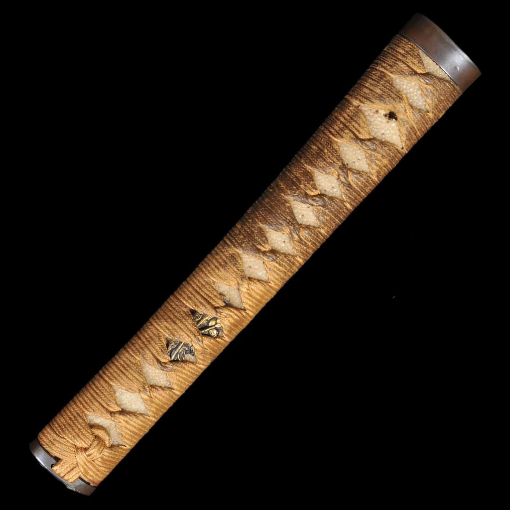 - Koshirae: Light brown silk tsuka wrap with black gloss finish saya