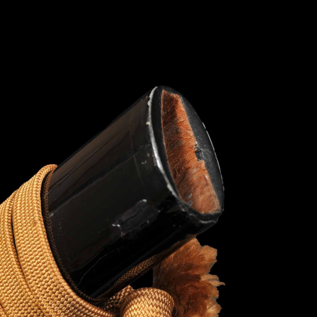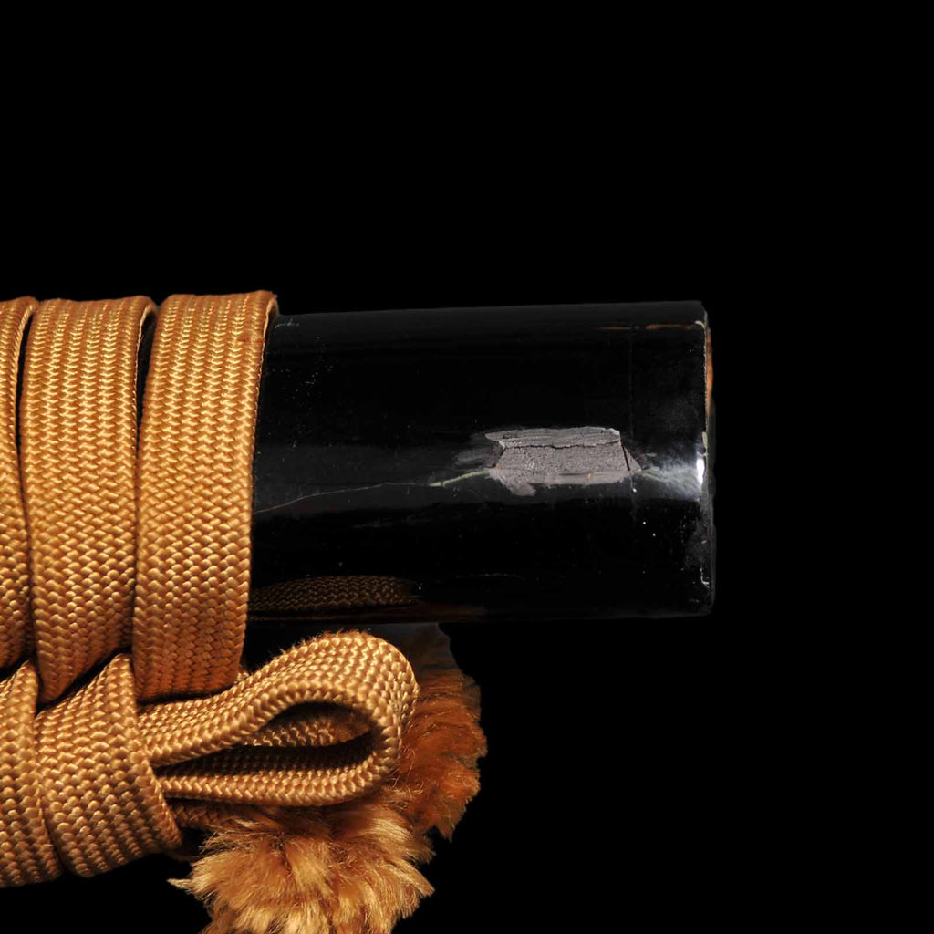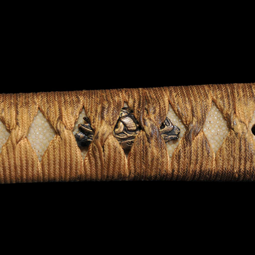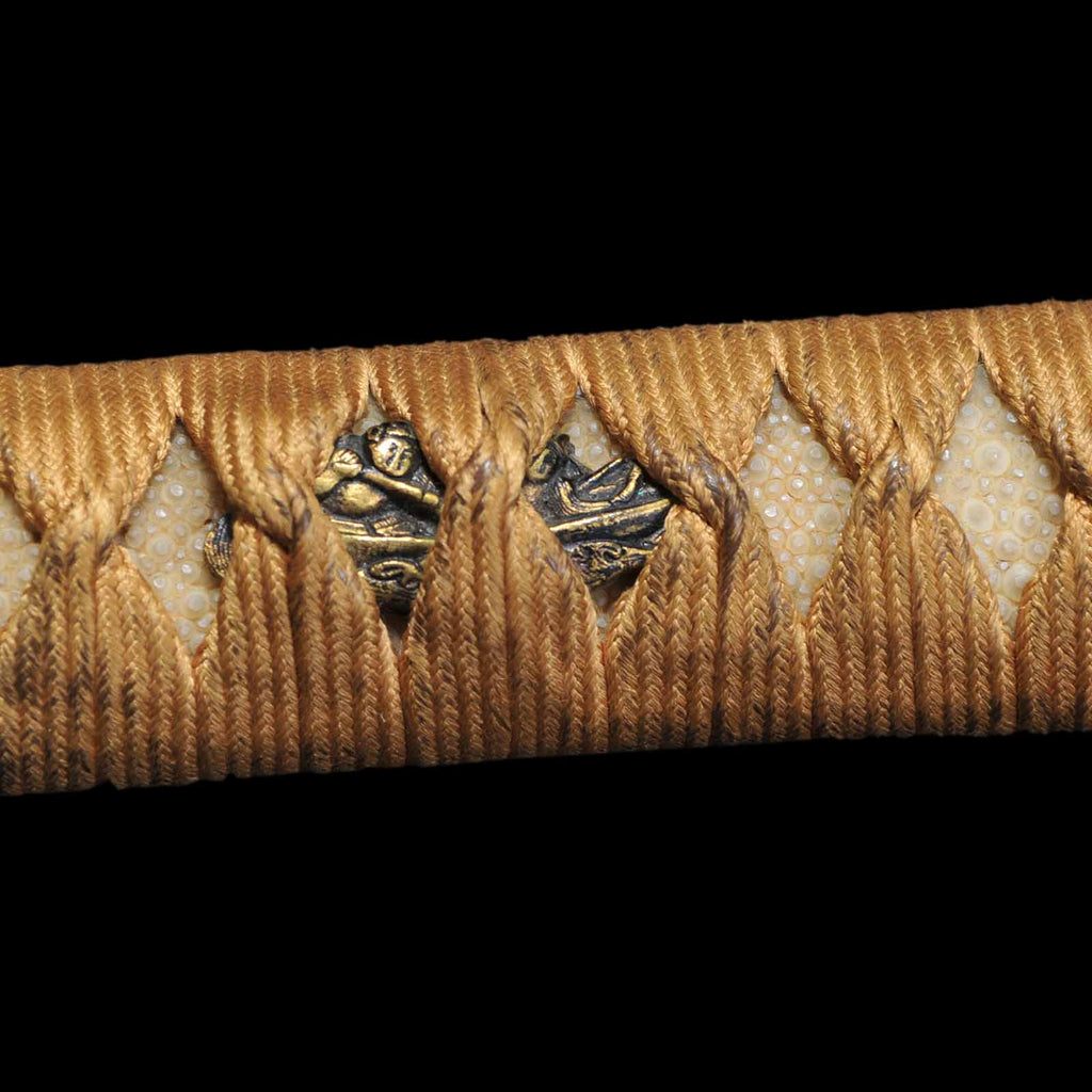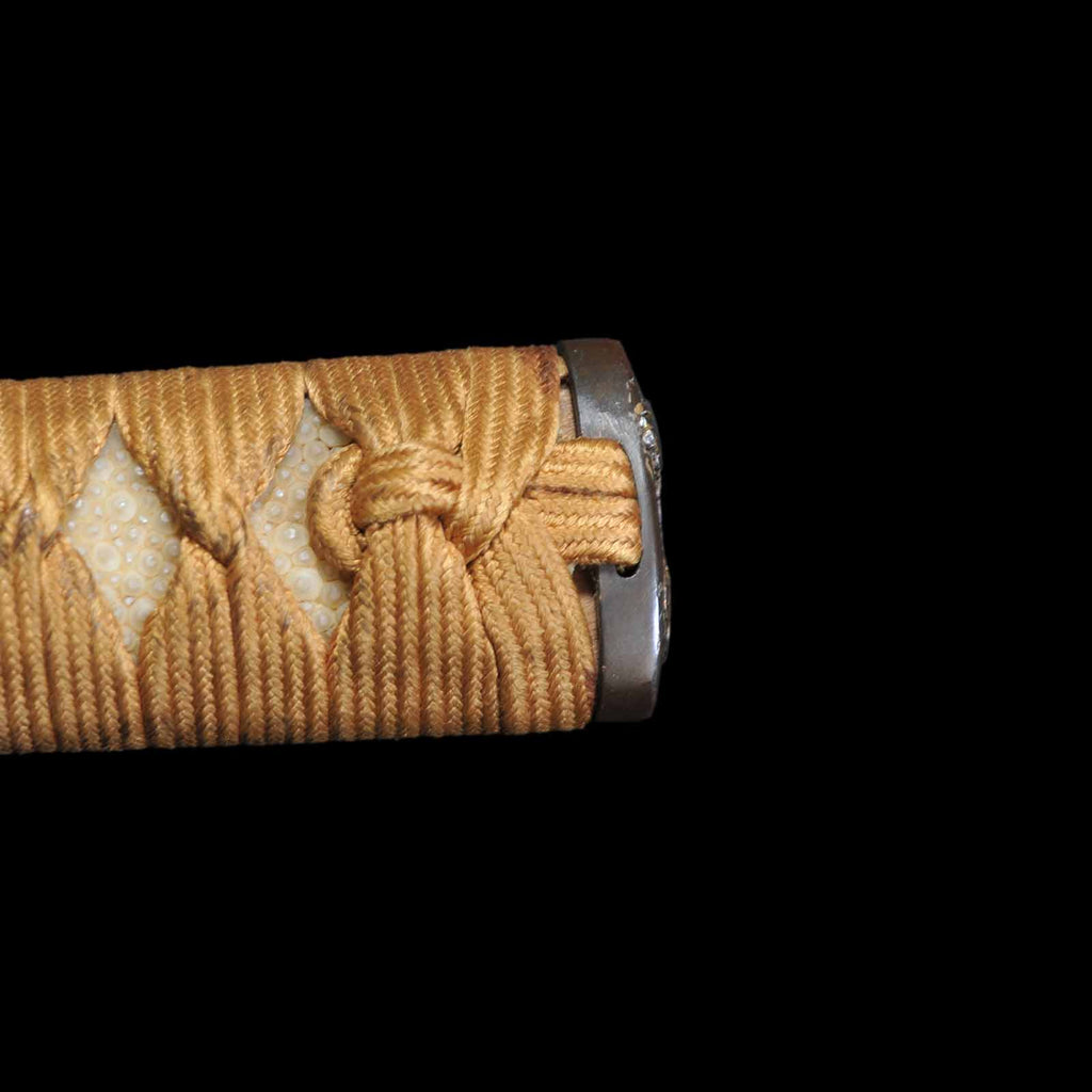 - Koshirae: Light brown silk tsuka wrap with black gloss finish saya