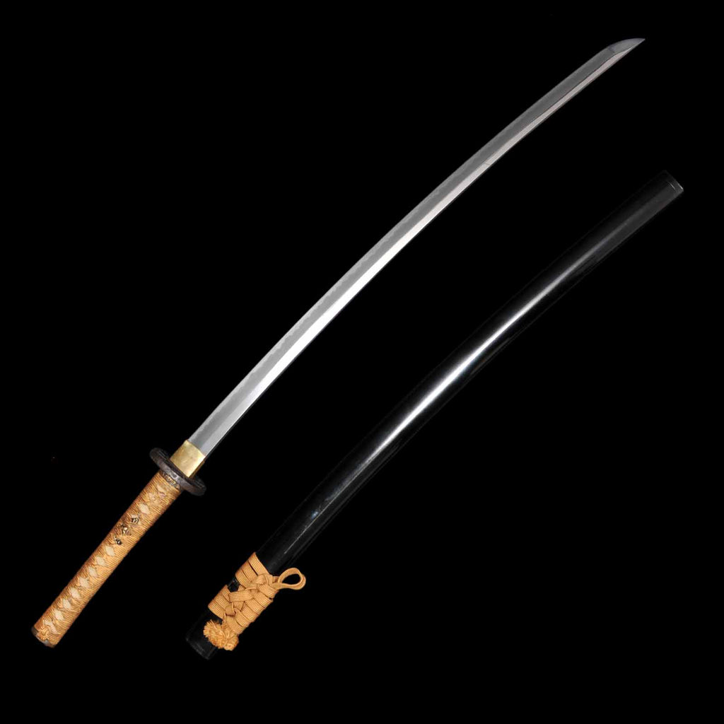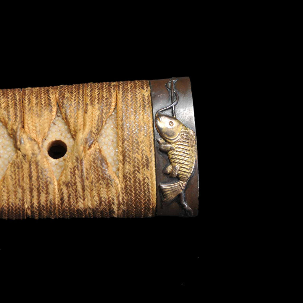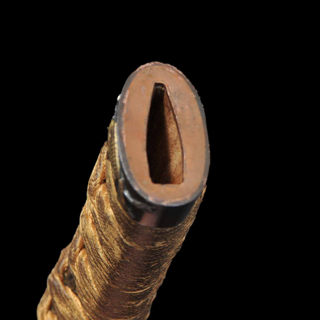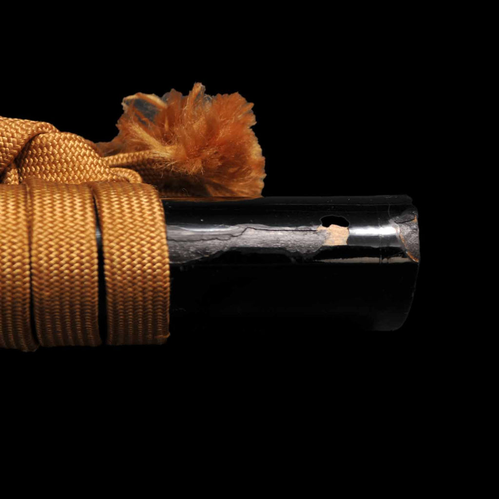 - Koshirae: Light brown silk tsuka wrap with black gloss finish saya