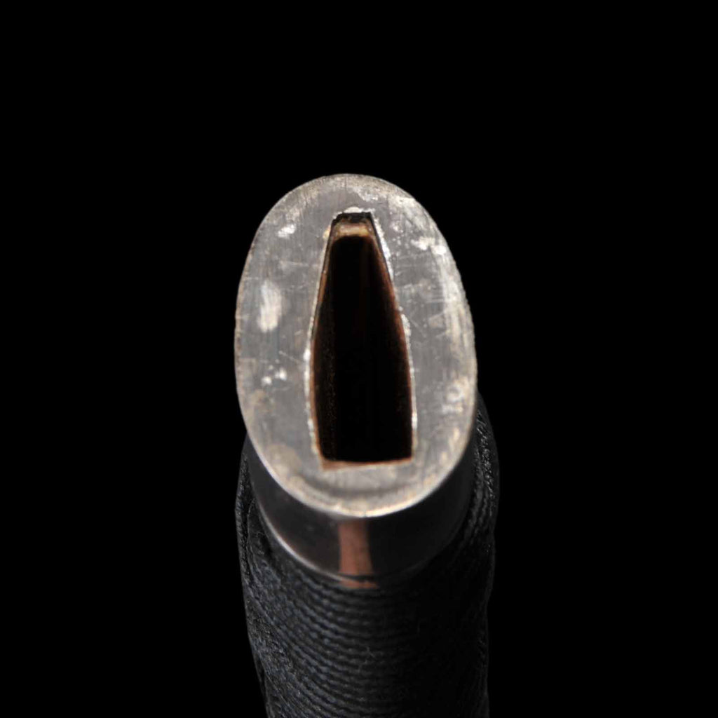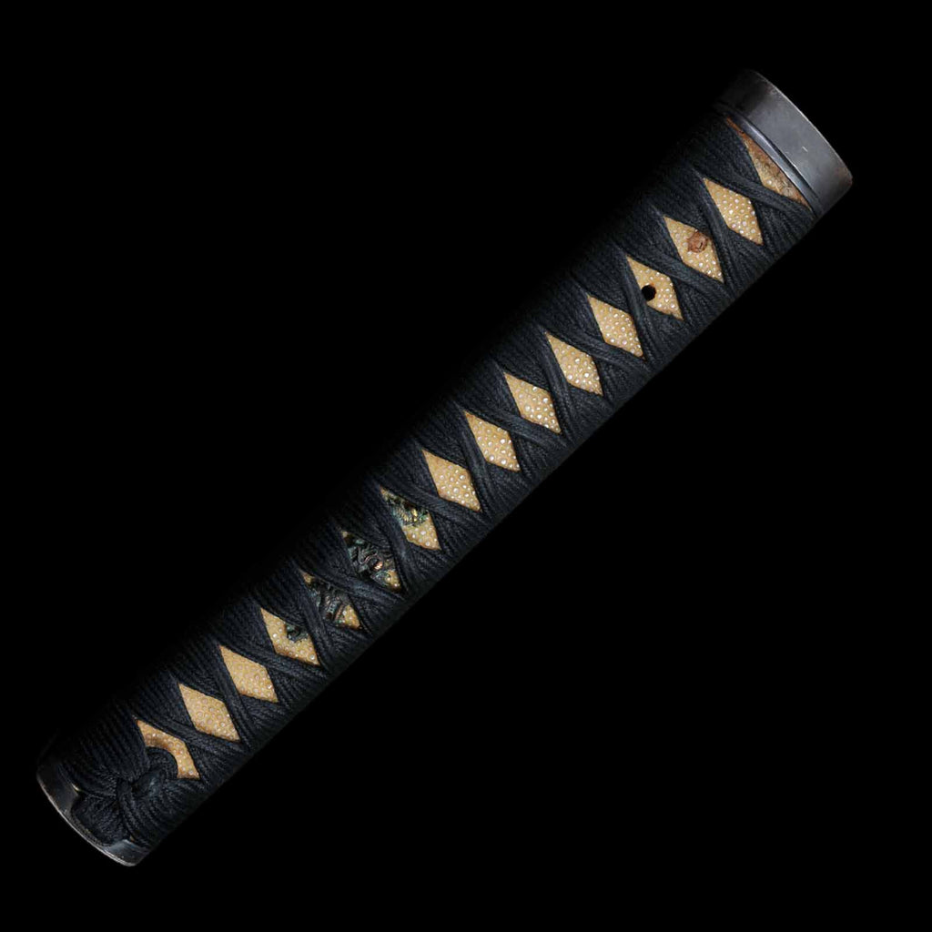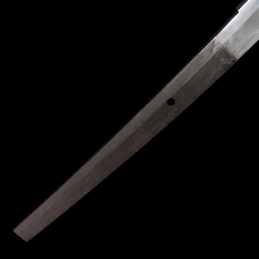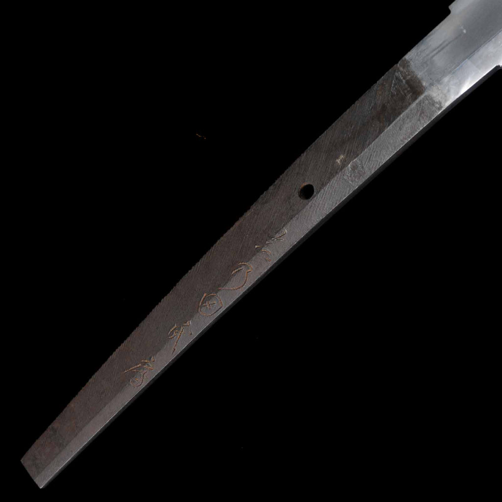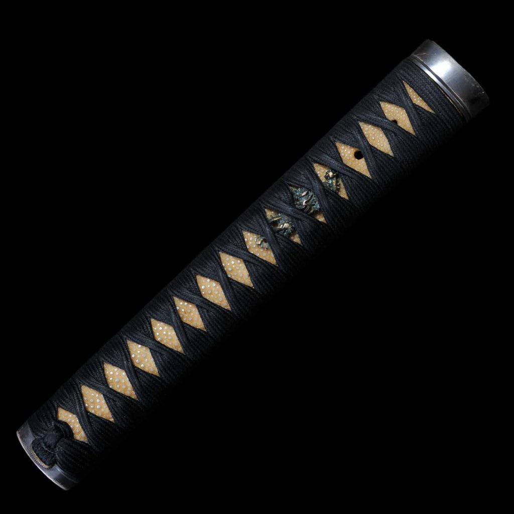 Ujifusa was a Gifu swordsmith active before and during World War II. His real name was Shinoda Hiroshi, and he was a disciple of Watanabe Kanenaga. During World War II, he was ranked as one of the top swordsmiths in the classification of swordsmiths of the time. He was also awarded the prize for excellence at the New Japanese Sword Exhibition in 1941. The koshirae has a solid and sturdy exterior with modern metal fittings reminiscent of the tensho koshirae. The scabbard is decorated with beautiful sendan kizami.