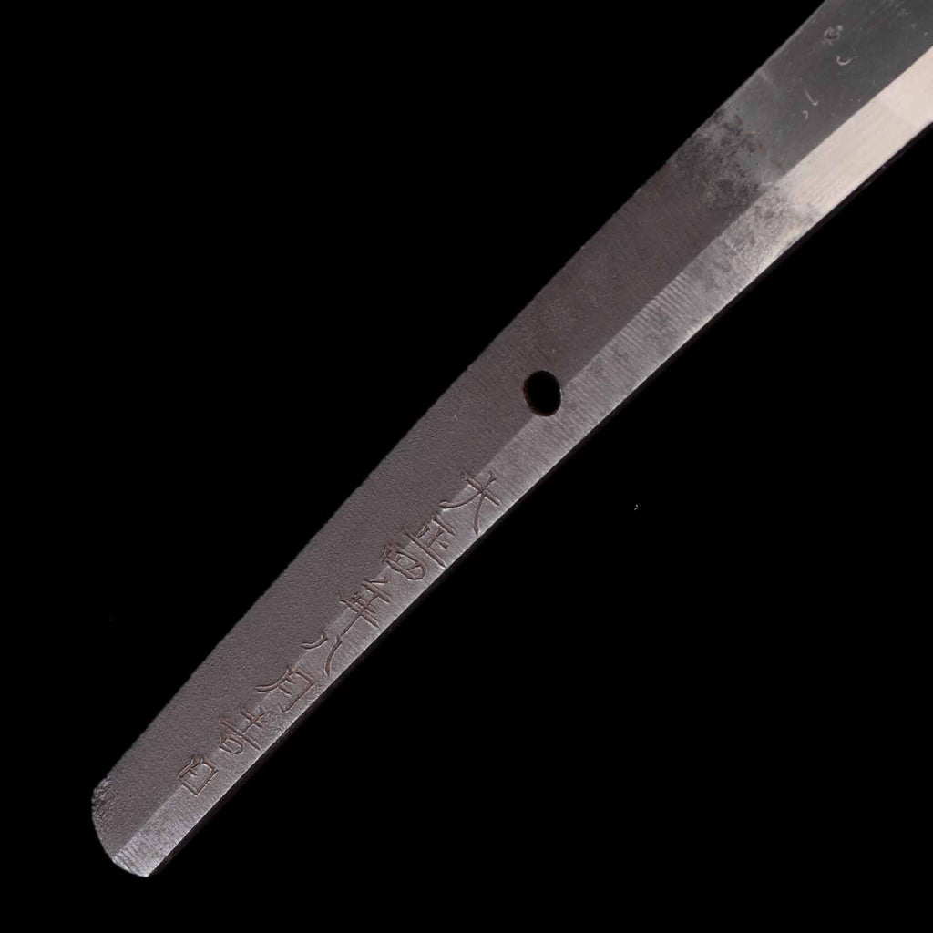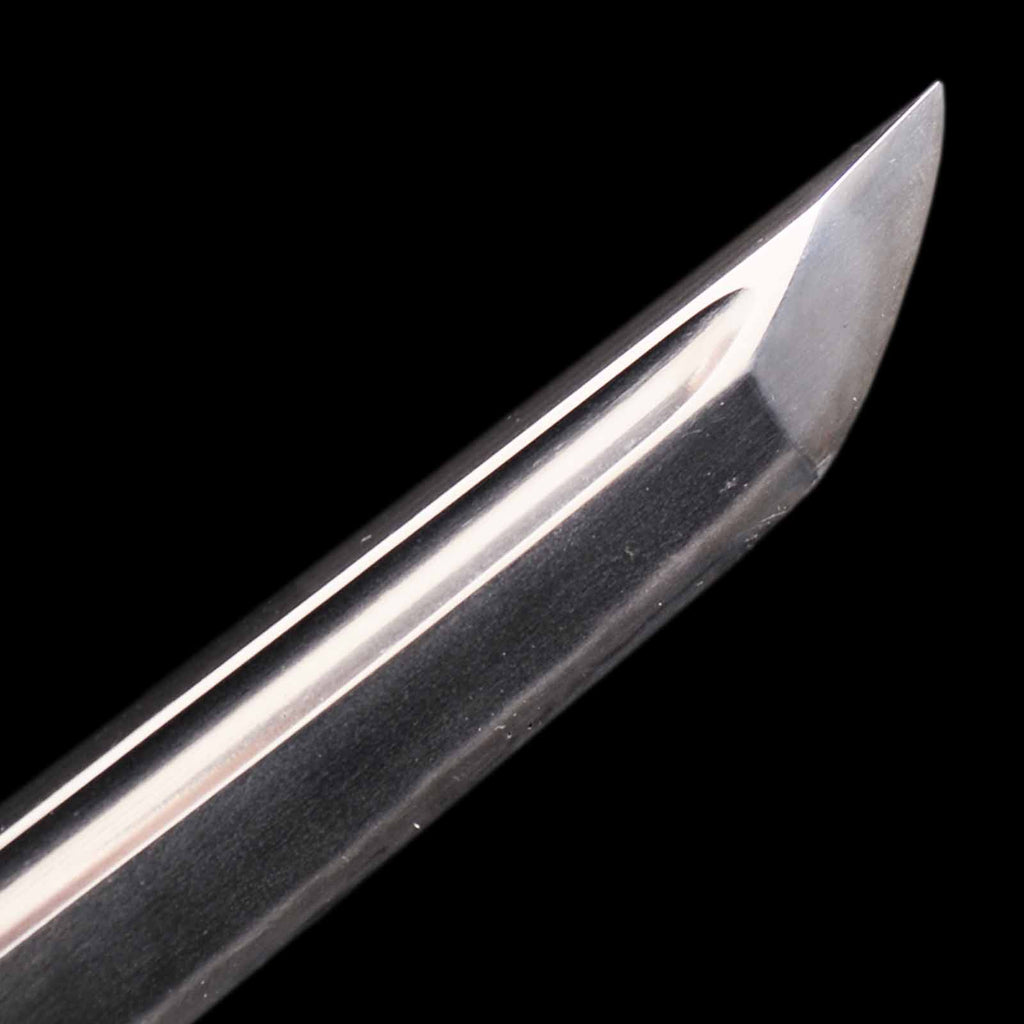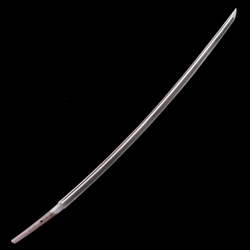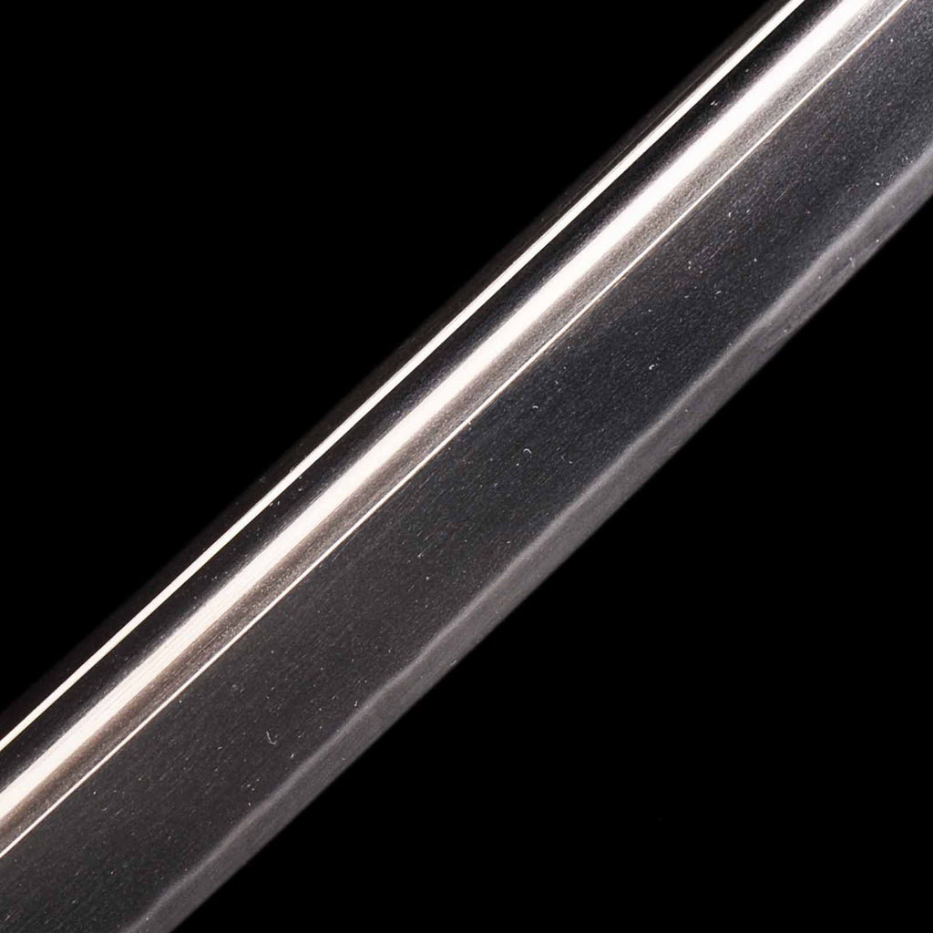 The blade is in exceptionally fine condition, fully polished throughout, with absolutely no flaws, rust, or chips. The jigane features a beautifully refined itame grain. The hamon is a fine, straight sugiha pattern, returning to the tip in Komaru. Both sides of the blade are carved with boji.