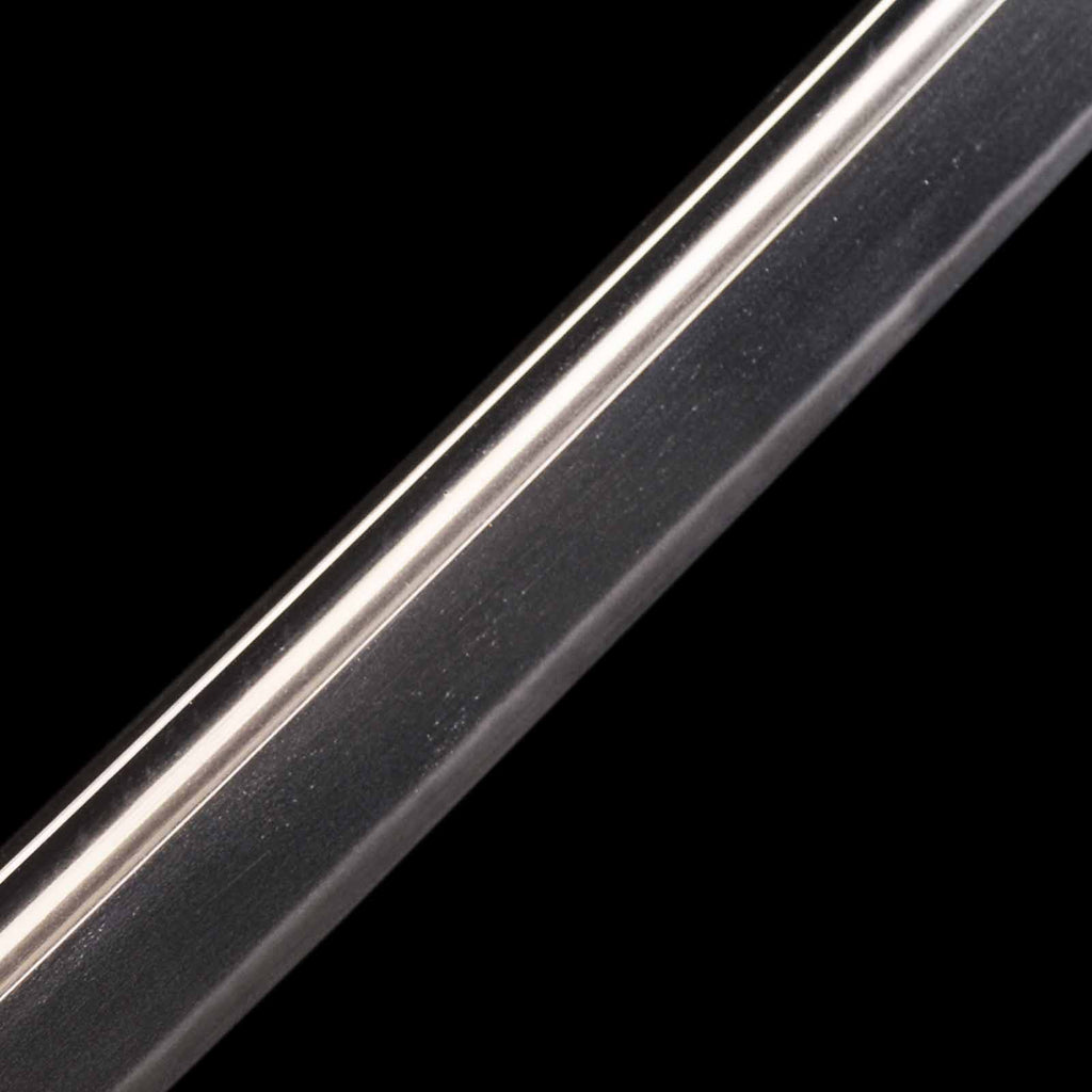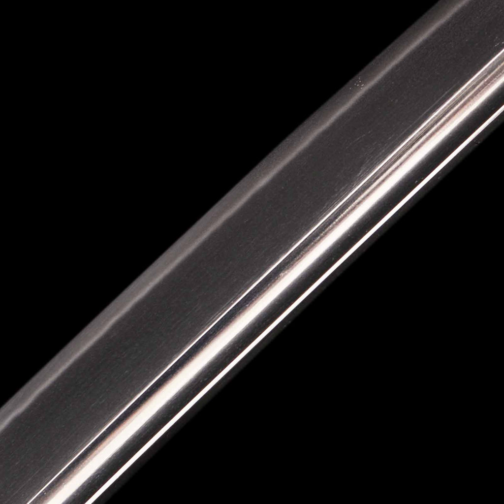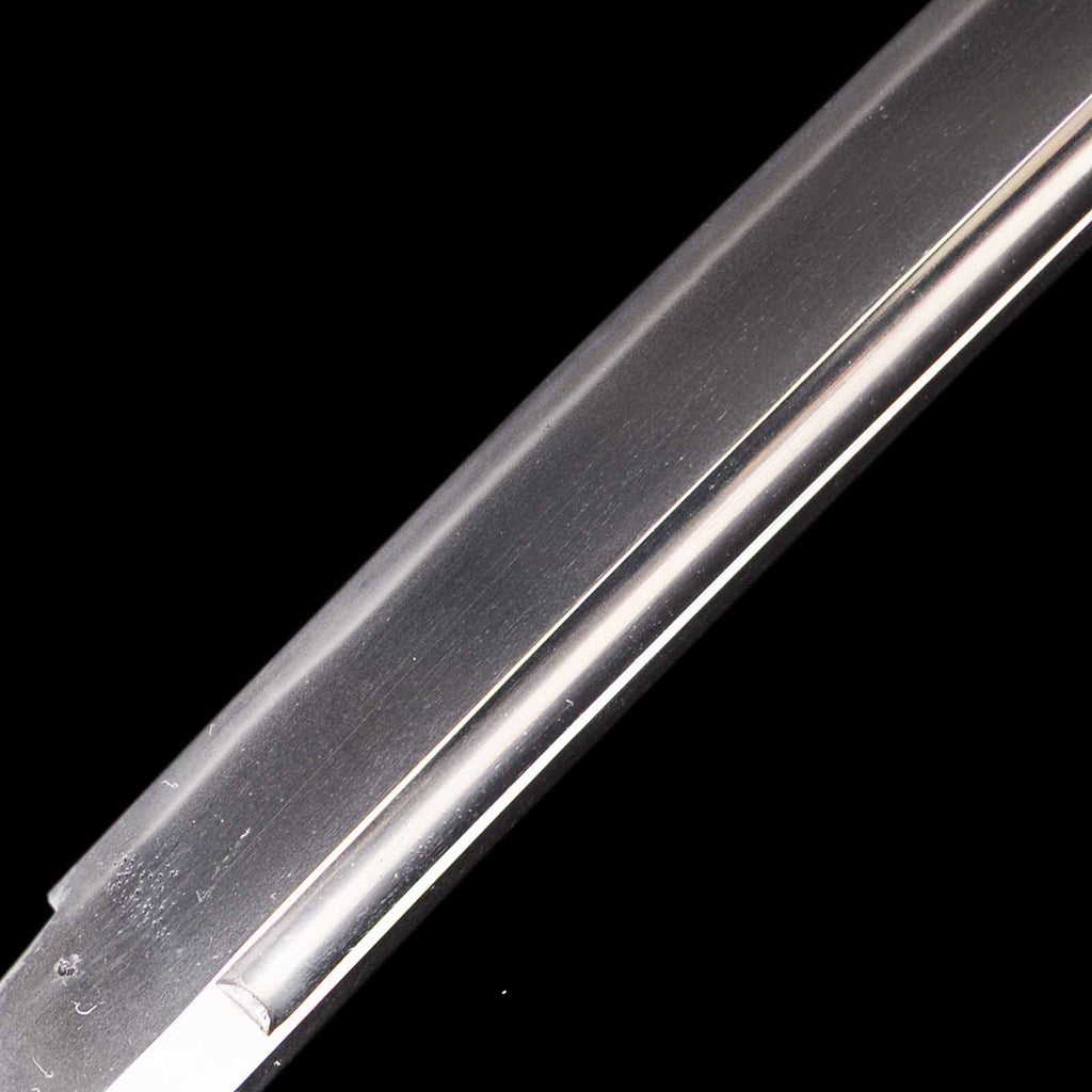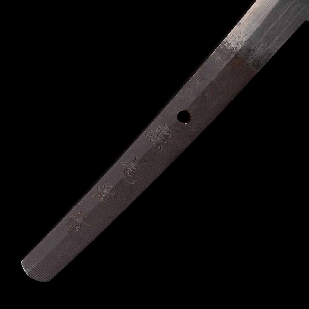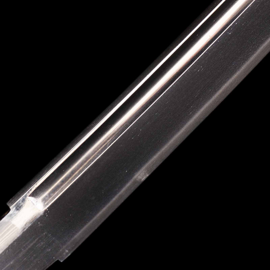 The blade is in exceptionally fine condition, fully polished throughout, with absolutely no flaws, rust, or chips. The jigane features a beautifully refined itame grain. The hamon is a fine, straight sugiha pattern, returning to the tip in Komaru. Both sides of the blade are carved with boji.