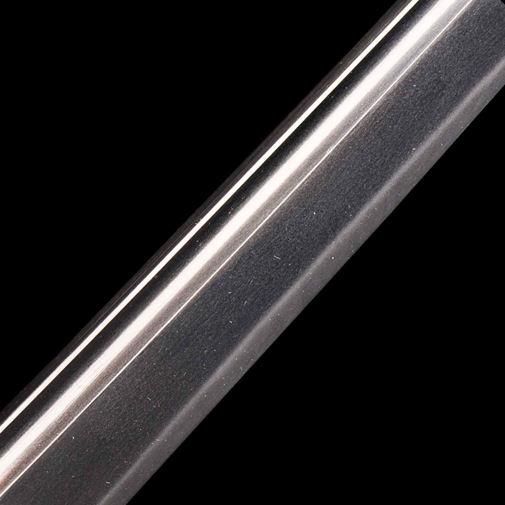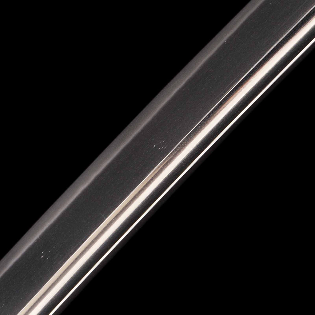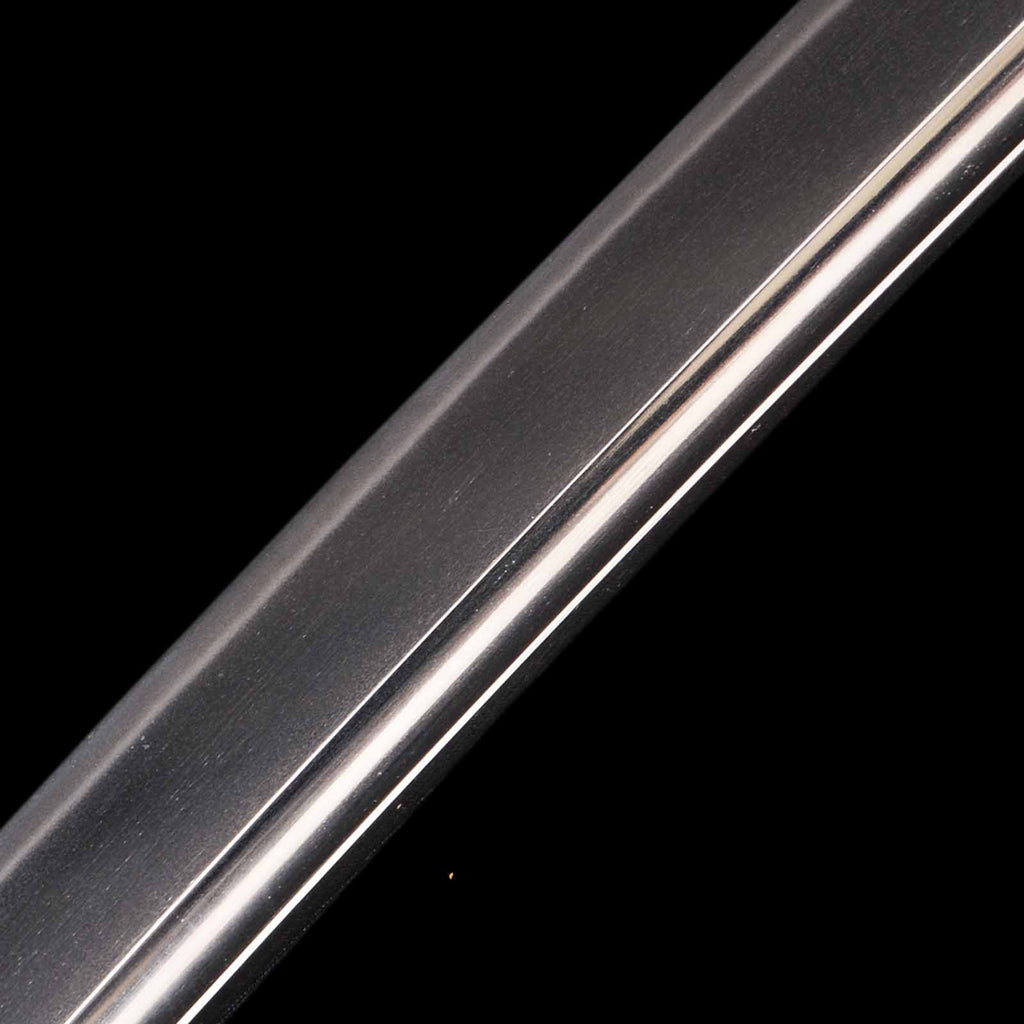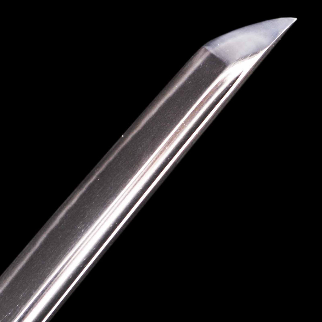 The blade is in exceptionally fine condition, fully polished throughout, with absolutely no flaws, rust, or chips. The jigane features a beautifully refined itame grain. The hamon is a fine, straight sugiha pattern, returning to the tip in Komaru. Both sides of the blade are carved with boji.