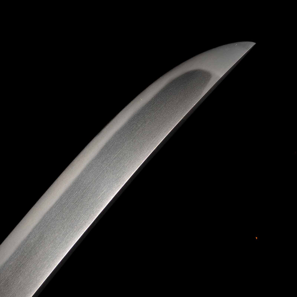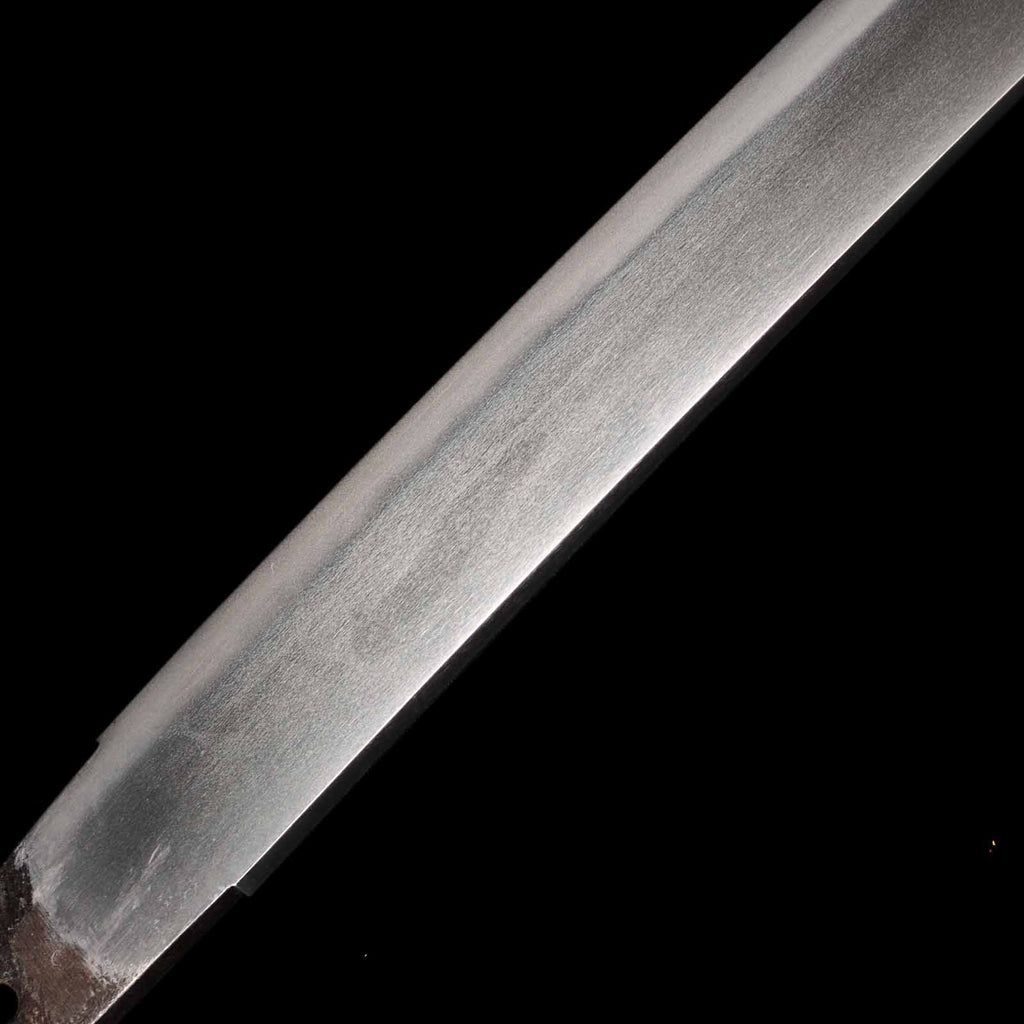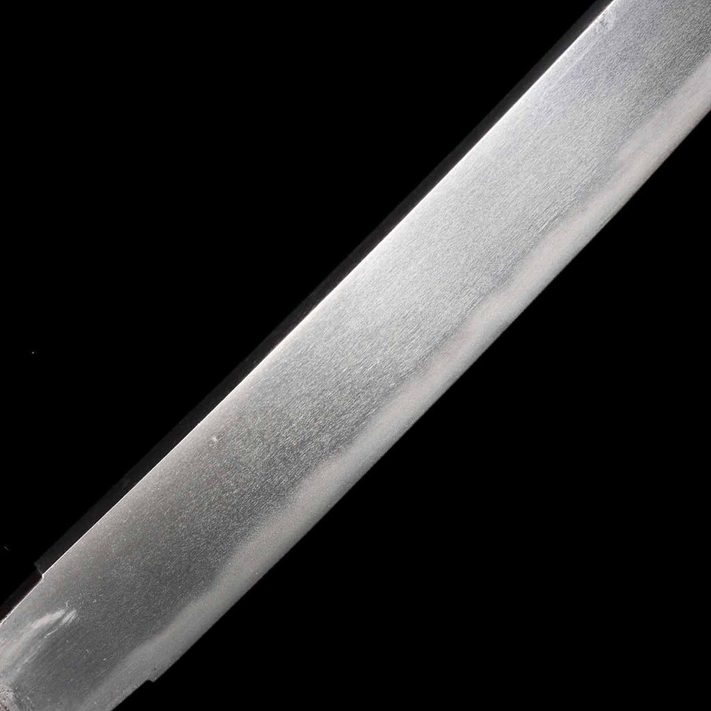 The state of preservation is very good, almost flawless, but there are traces of rust at a point about 11 cm from the kissaki on the sashiura side. The hada is itame, close to masame, and the yubashiri and chikei are very nicely raised. The Suguha hamon mixed with Gunome is very beautiful and well nie tight.