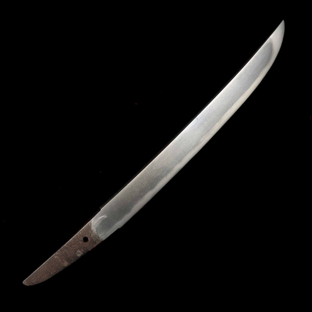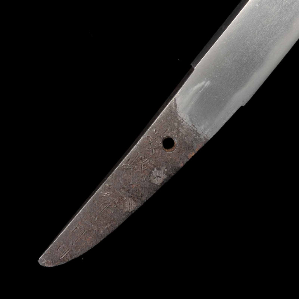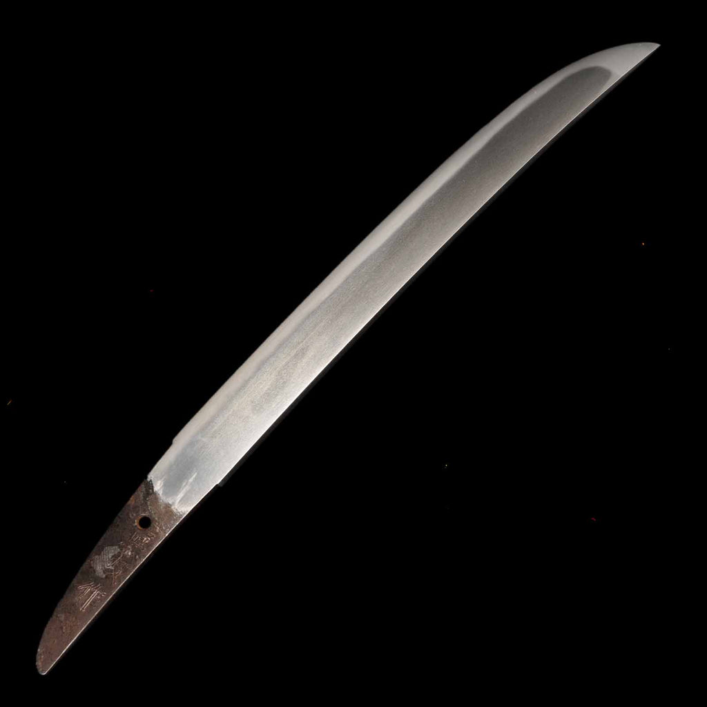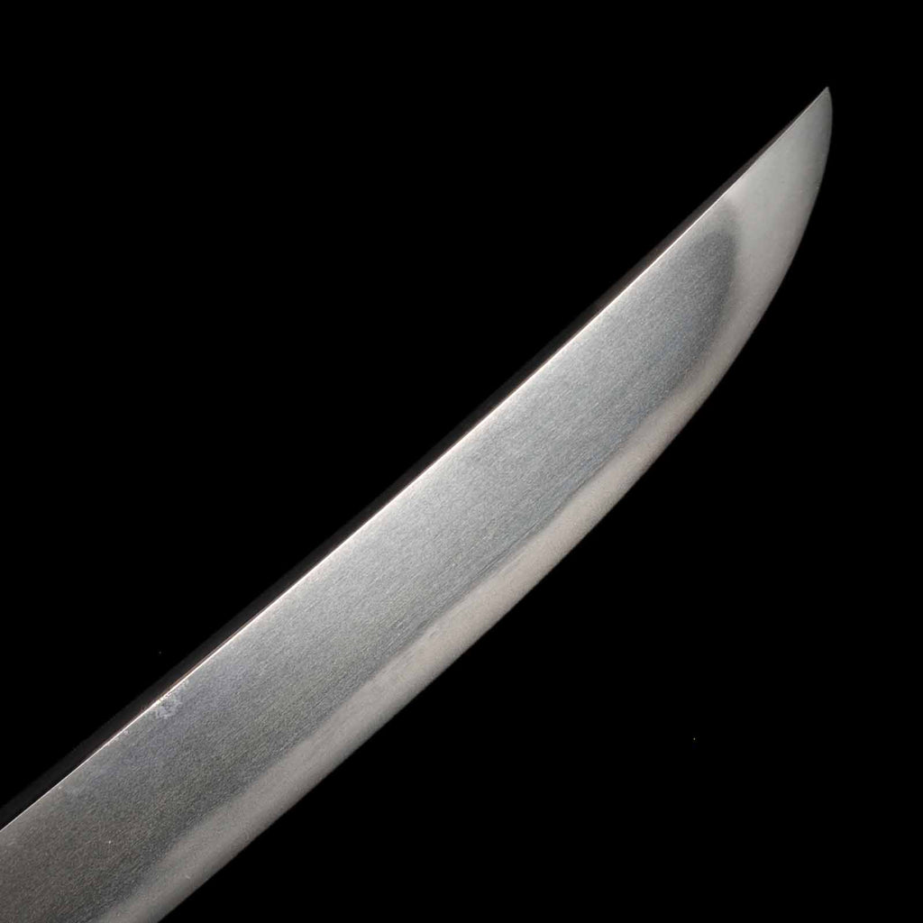 The state of preservation is very good, almost flawless, but there are traces of rust at a point about 11 cm from the kissaki on the sashiura side. The hada is itame, close to masame, and the yubashiri and chikei are very nicely raised. The Suguha hamon mixed with Gunome is very beautiful and well nie tight.