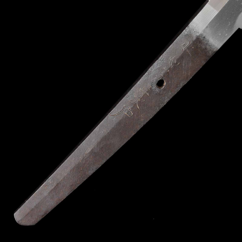 This piece is a katana made by Masatsugu, the son of the second Suishinshi Masahide. When he was thirteen years old his grandfather and father died, and their pupil, Taikei Naotane, became his de facto master.