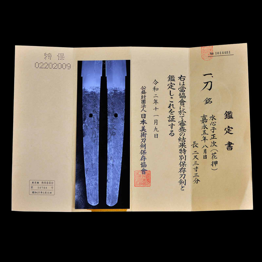 • Signature: Kan'ei Gonen Hachigatstu-bi(front), Suishinshi Masatsugu: engraved signature(back)