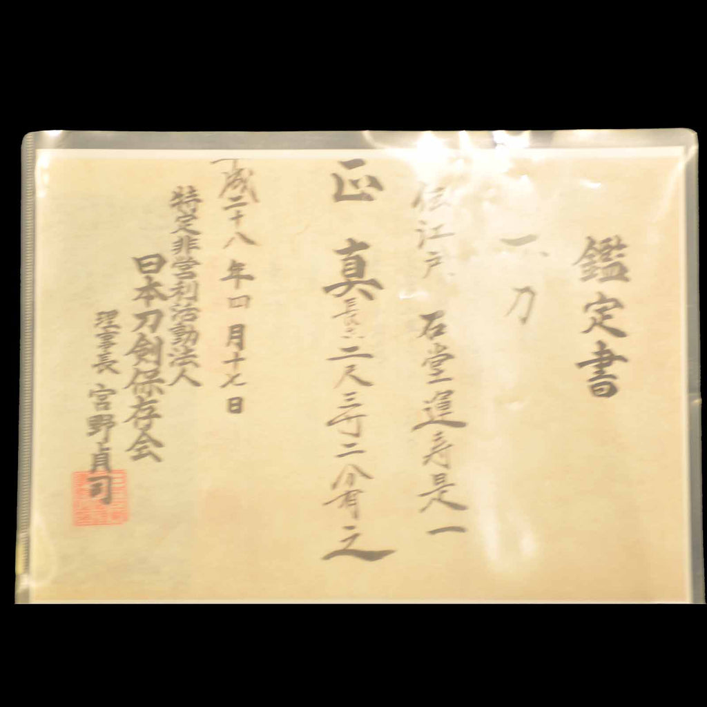 This sword, although without signature, has been authenticated by the NTHK as the work of Unju Korekazu. Korekazu was born in 1820, and became the adopted son of the sixth Ishido Korekazu. Around 1841, he officially took over as the seventh generation swordsmith. Korekazu was renowned as a master swordsmith, and even at that time, he was immensely popular, later becoming the designated smith of the Tokugawa family. He is truly a master craftsman representing the Shinshinto period. This sword has no fatal flaws, but there are signs that an amateur has attempted to sharpen the Kissaki area. This sword is highly recommended for those who want to acquire a masterpiece at a reasonable price.