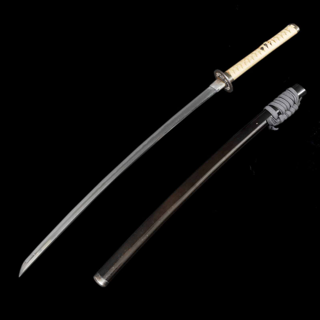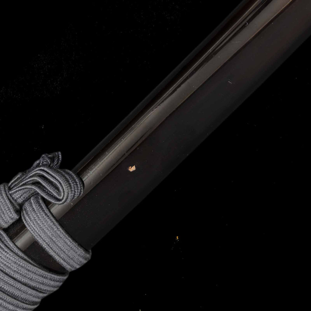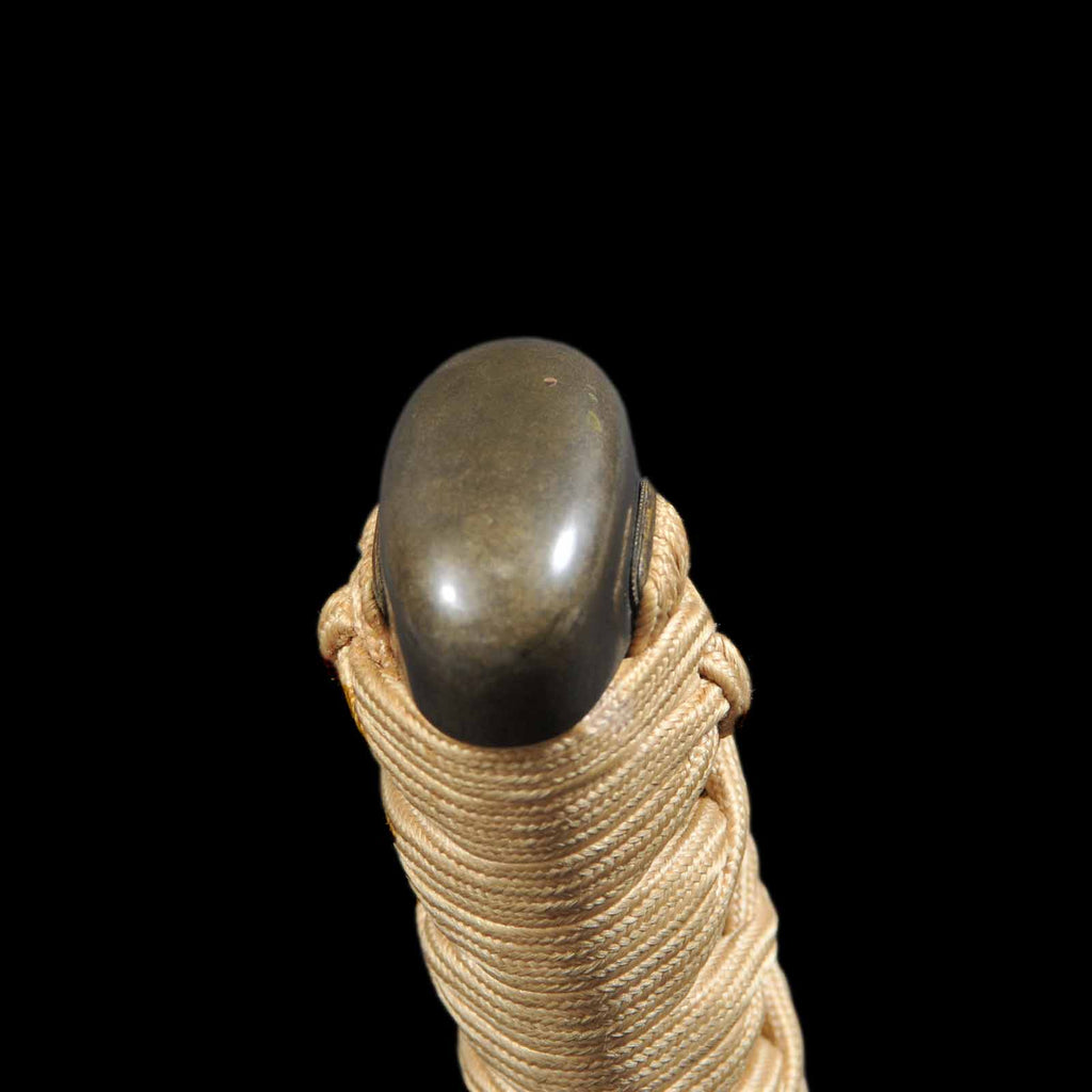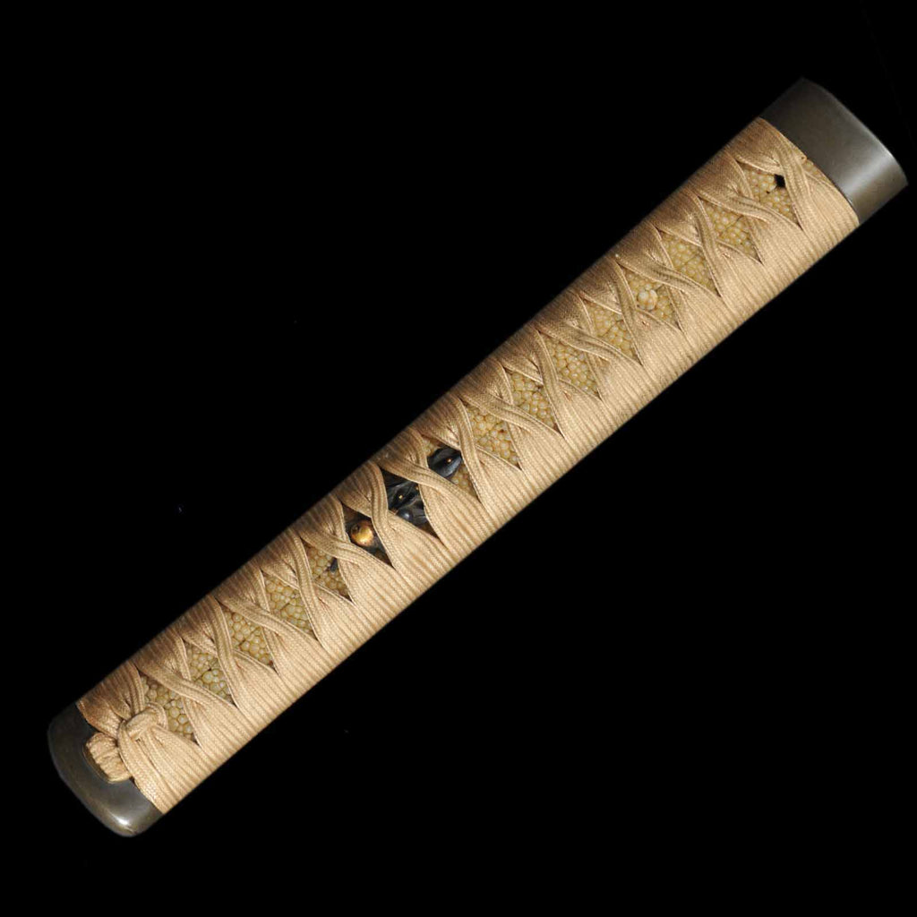 - Koshirae: Cream yellow silk tsuka wrapping with kuroro lacquered saya