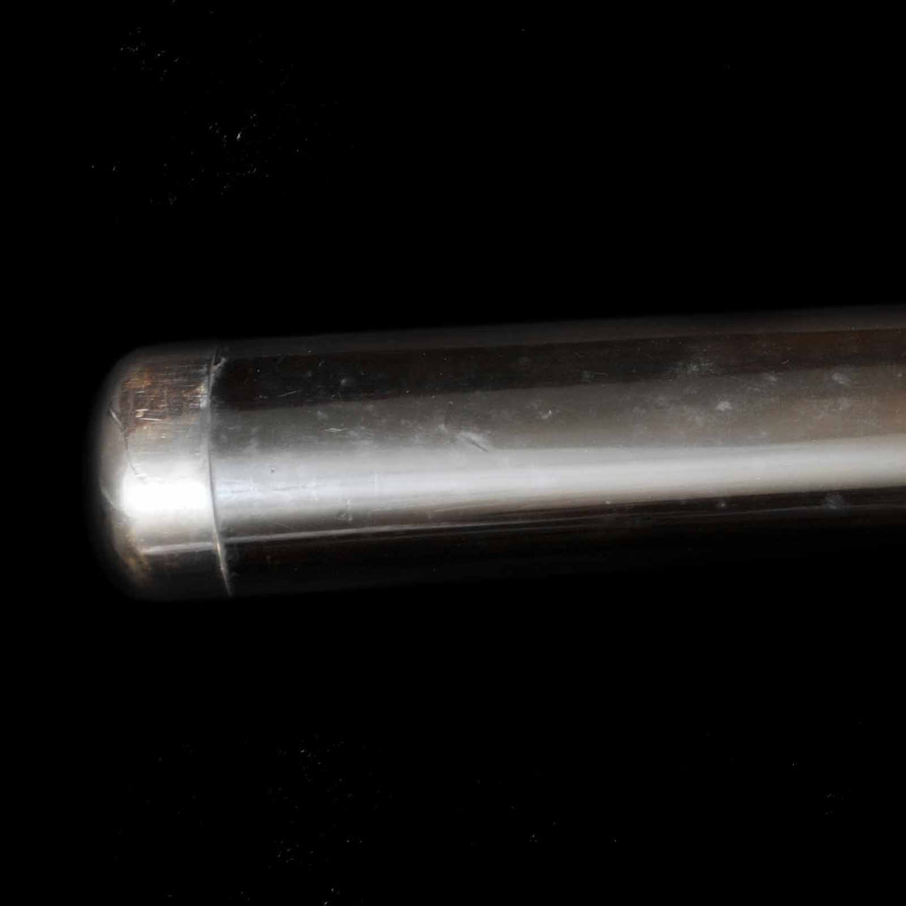 This sword was originally made as a long Tachi, and it is believed that it was shortened over time to its current length. Considering the characteristics of the sword, the Kurashiki Sword Museum has authenticated this sword as being made by Masamori. Masamori was a disciple of Suishinshi Masahide and learned the sword making methods of Bizen-den and Soshu-den. His style is a mix of Soshu-den hada and Bizen-den chojimidare. This sword was created in the late Edo period, as inferred from its shape and forging method. The condition of preservation is good for its age, and despite the presence of minute flaws, the overall condition is clean. The fuchi-gashira, menuki, tsuba, and kojiri are original, and the fuchi-gashira and kojiri are a set. The tsuba is a sukashi-tsuba with an exquisite pattern. The scabbard has a few shallow dents and flaws from age, but it has enough value as an antique and is a recommended gem to be enjoyed as an object of appreciation.