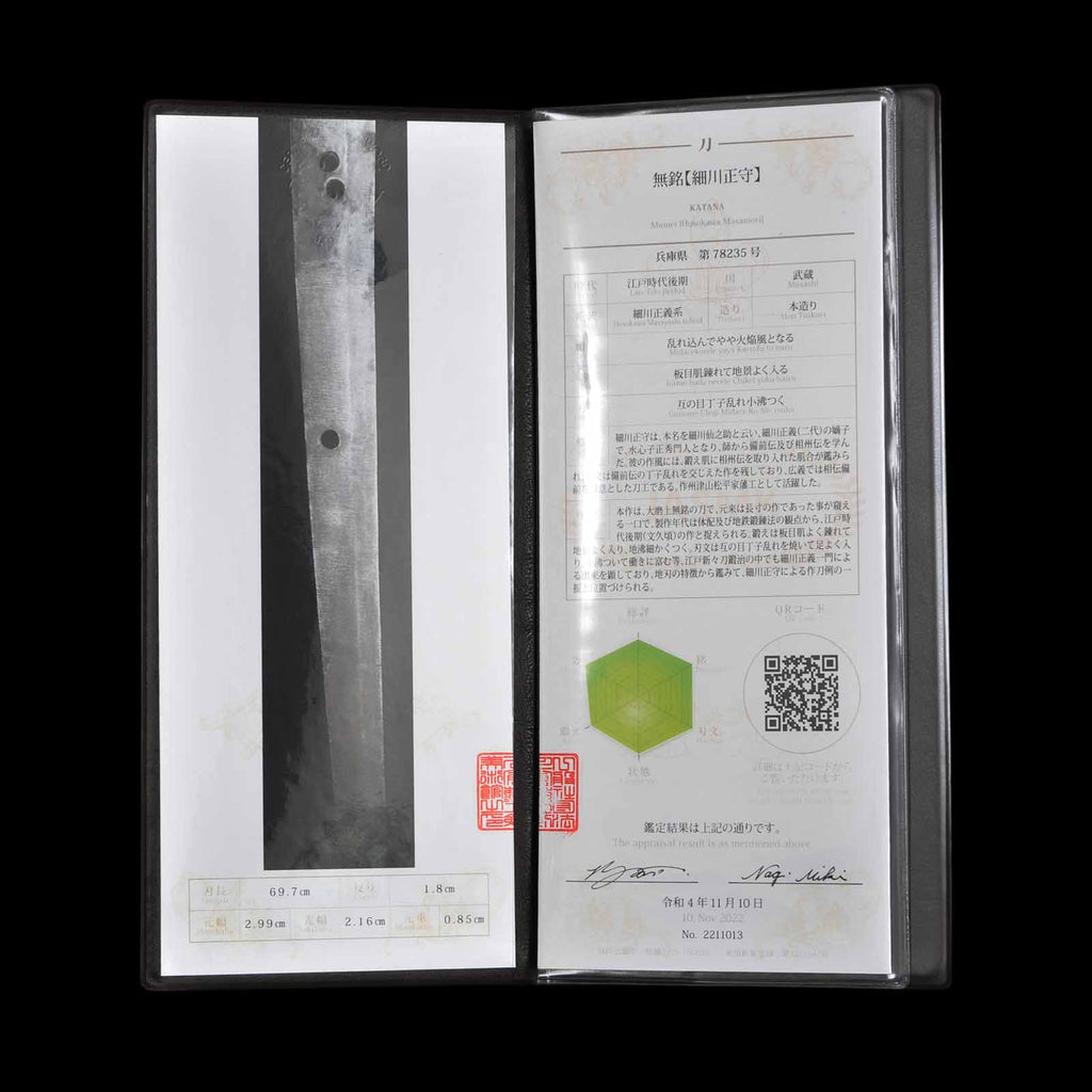 Katana - Mumei(No Signature) - JASMK Certifcate(Morimasa) - Uchigatana Koshirae - Suriage Nakago - Shinshinto Era