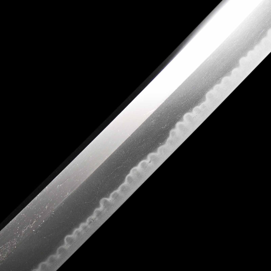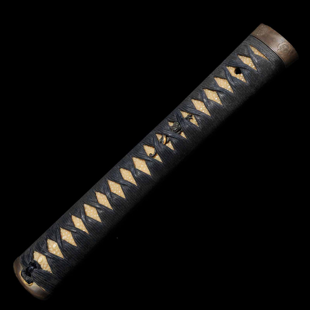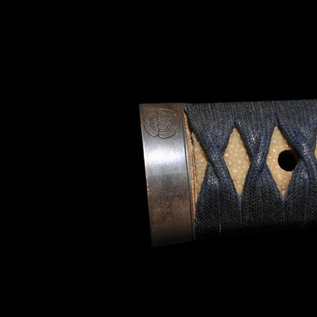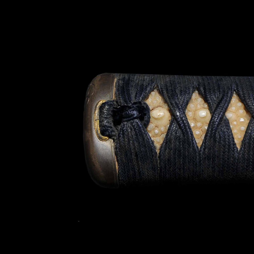 The koshirae are equipped with metal fittings of the period. The tsuba with a deer motif is particularly impressive. The tsuka cord, made of pure silk, is wrapped in the tsumami-maki style. The scabbard has been kizami-finished at an angle to give it a luxurious look.