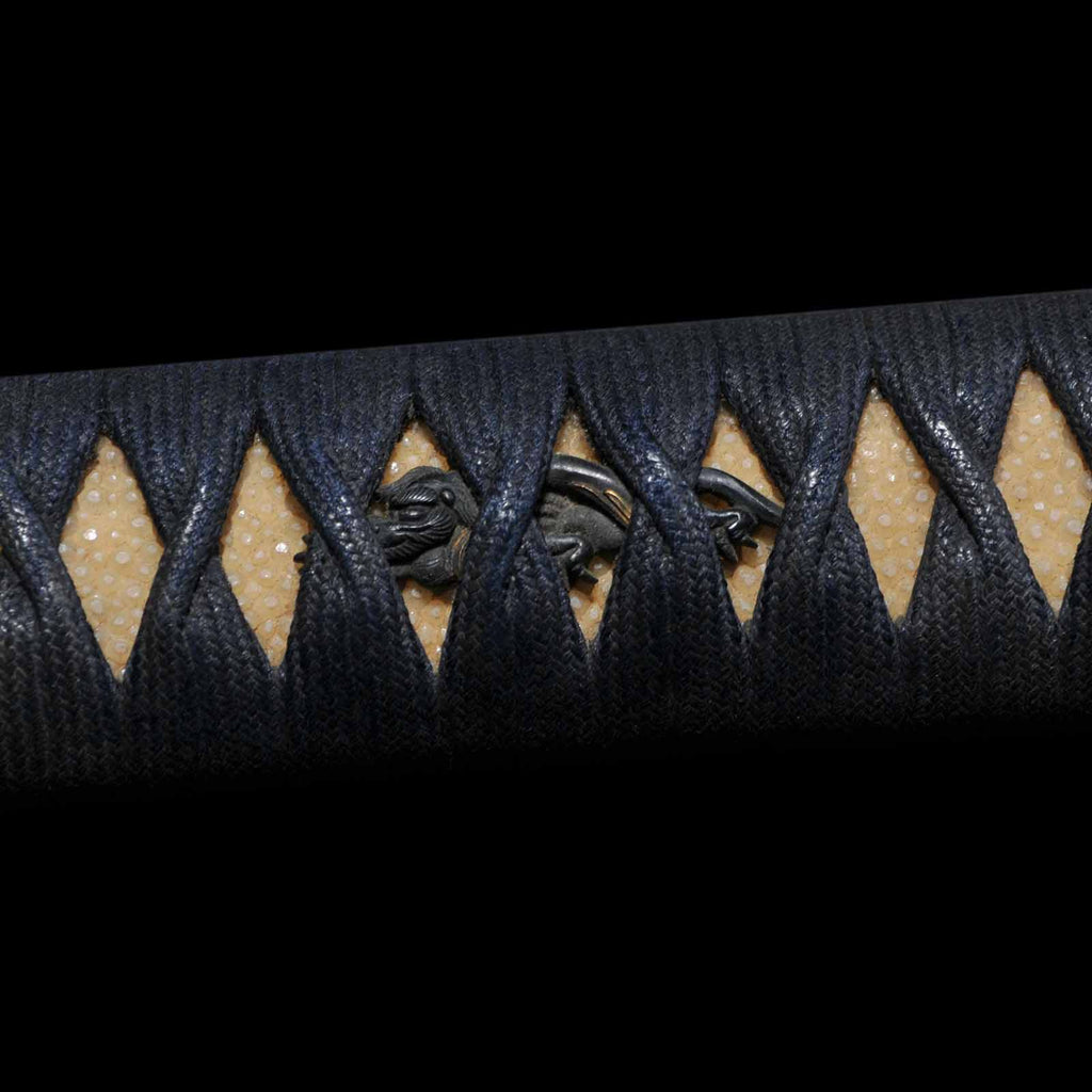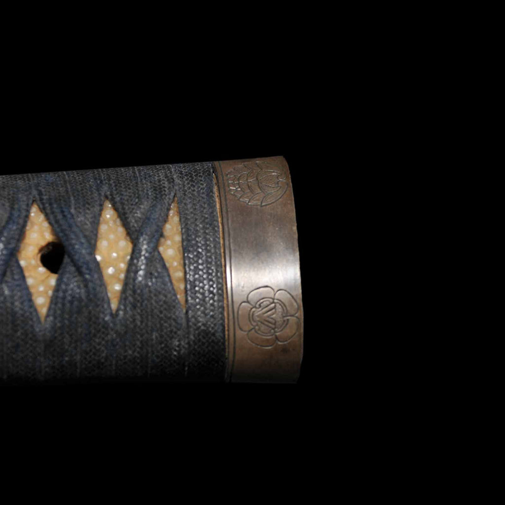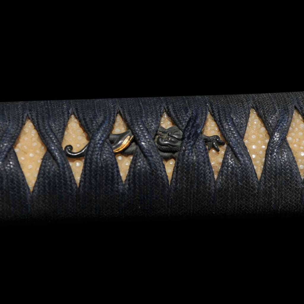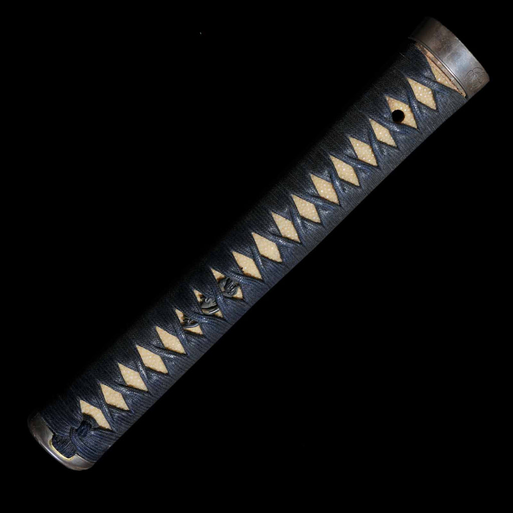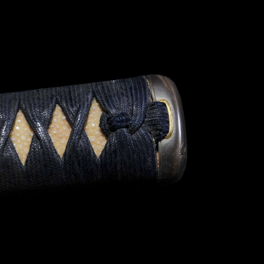 The koshirae are equipped with metal fittings of the period. The tsuba with a deer motif is particularly impressive. The tsuka cord, made of pure silk, is wrapped in the tsumami-maki style. The scabbard has been kizami-finished at an angle to give it a luxurious look.