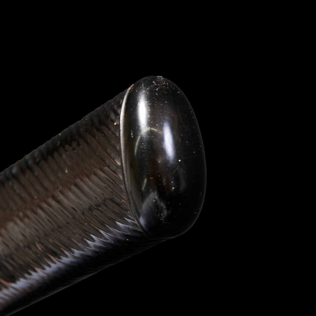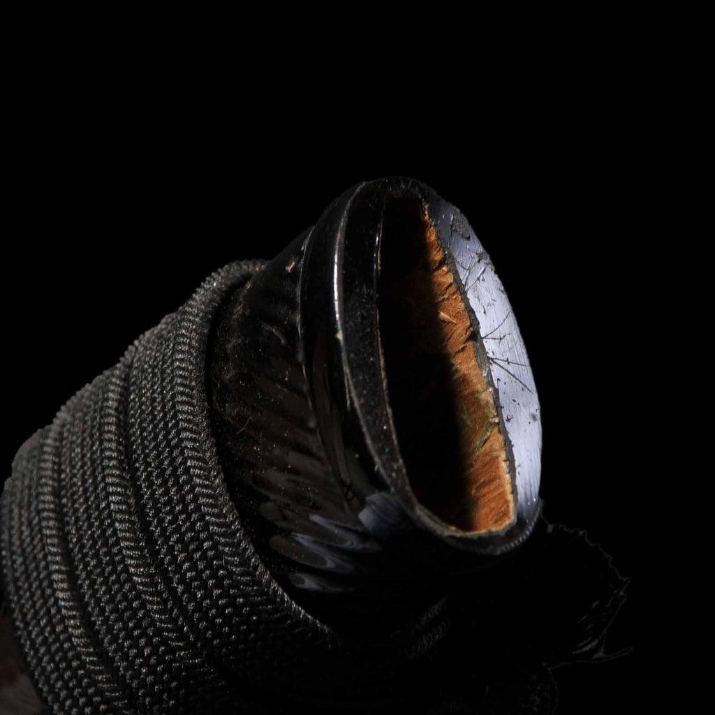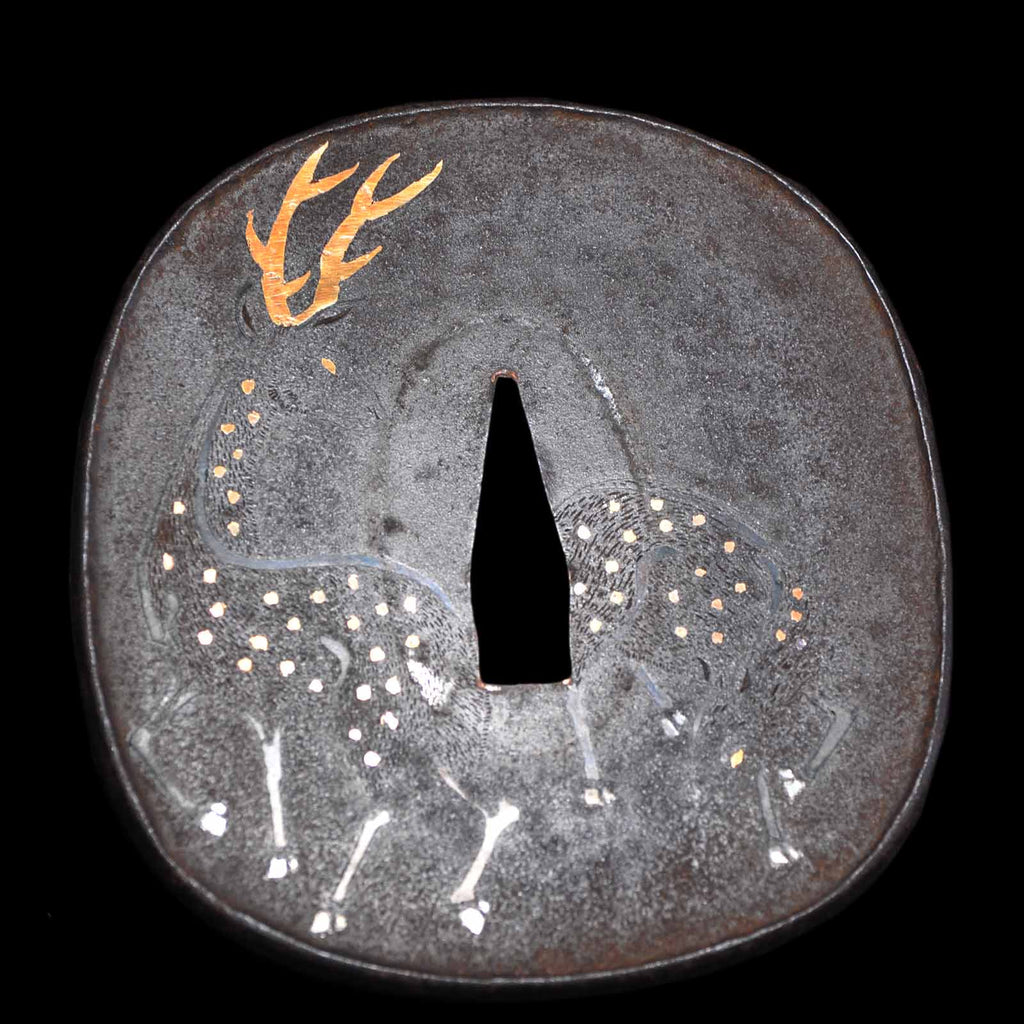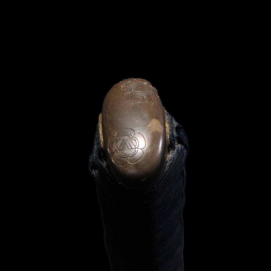 The koshirae are equipped with metal fittings of the period. The tsuba with a deer motif is particularly impressive. The tsuka cord, made of pure silk, is wrapped in the tsumami-maki style. The scabbard has been kizami-finished at an angle to give it a luxurious look.