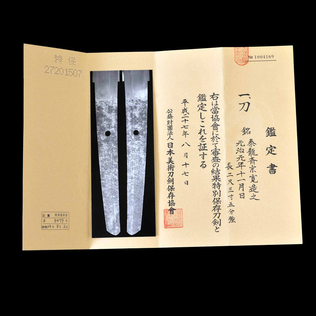 • Signature: Tairyusai Munehiro Korewo Tsukuru(front), Ganji Gannen Juichigatu-bi