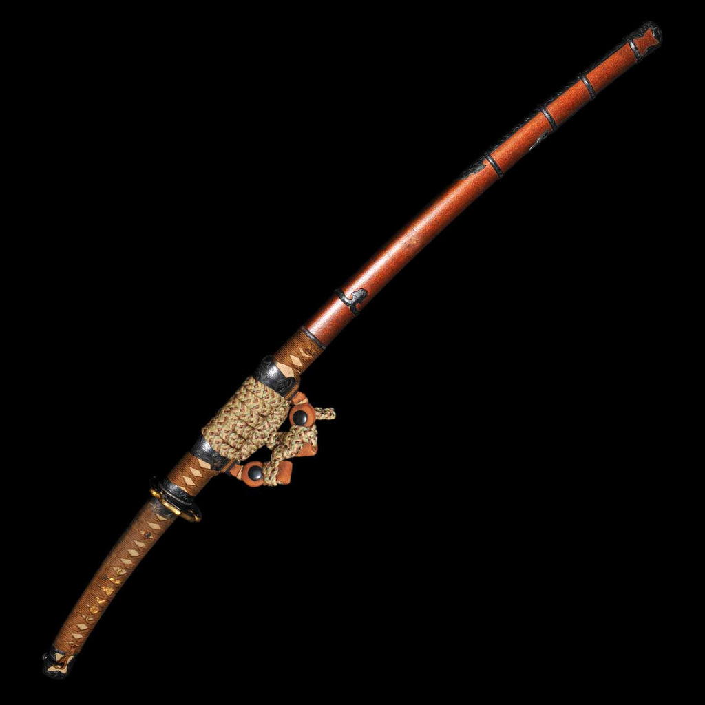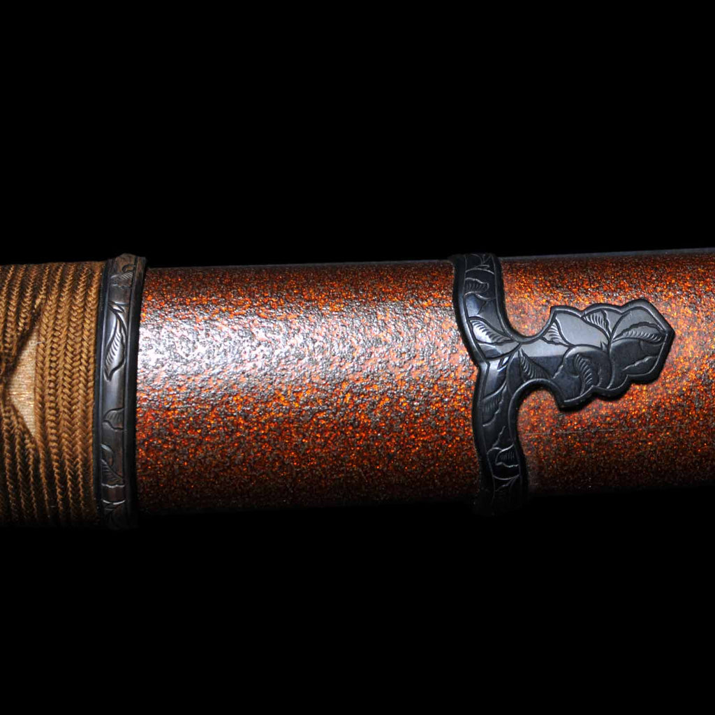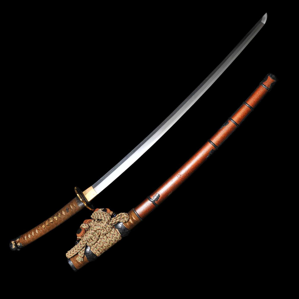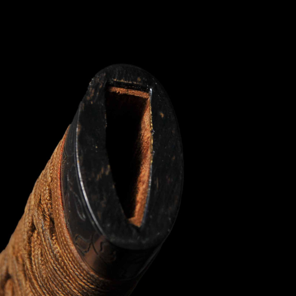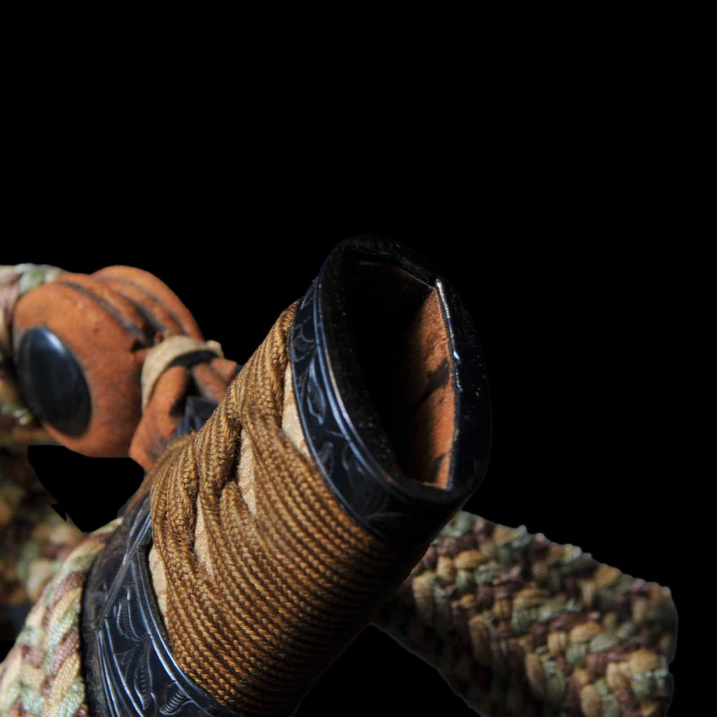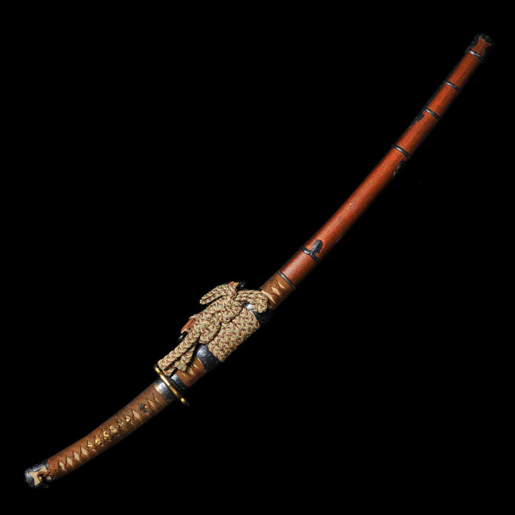 - Koshirae: Tachi Koshirae, brown silk wrapped Tsuka with Nashiji lacquered Saya