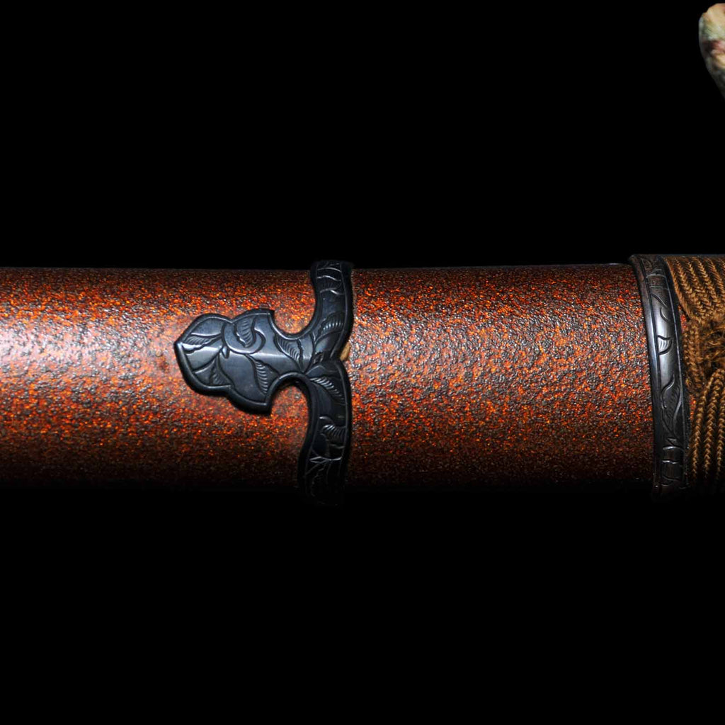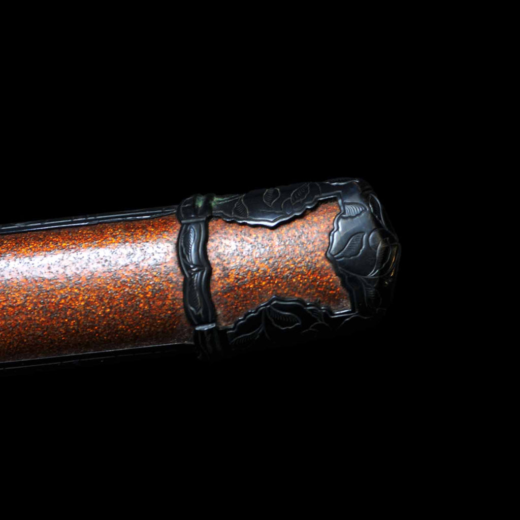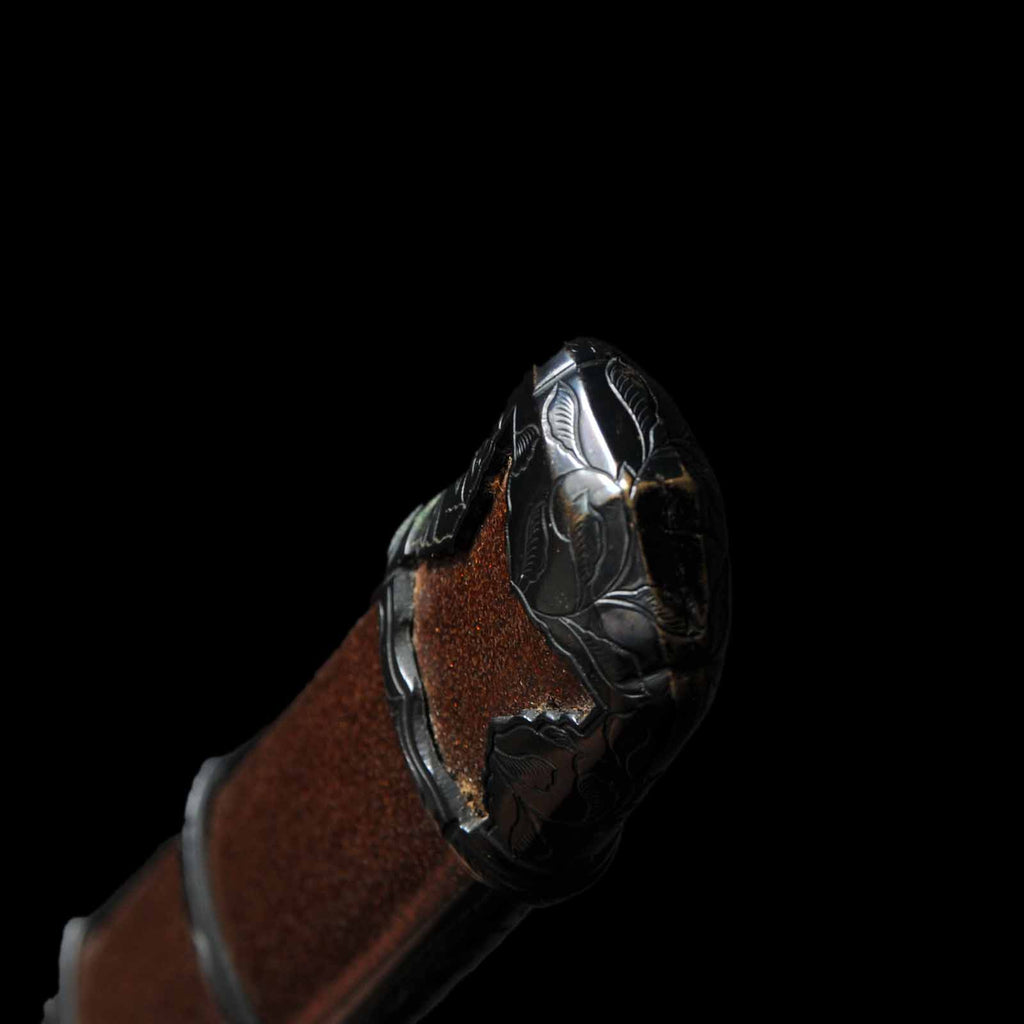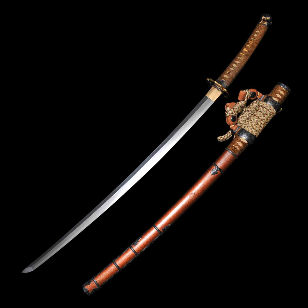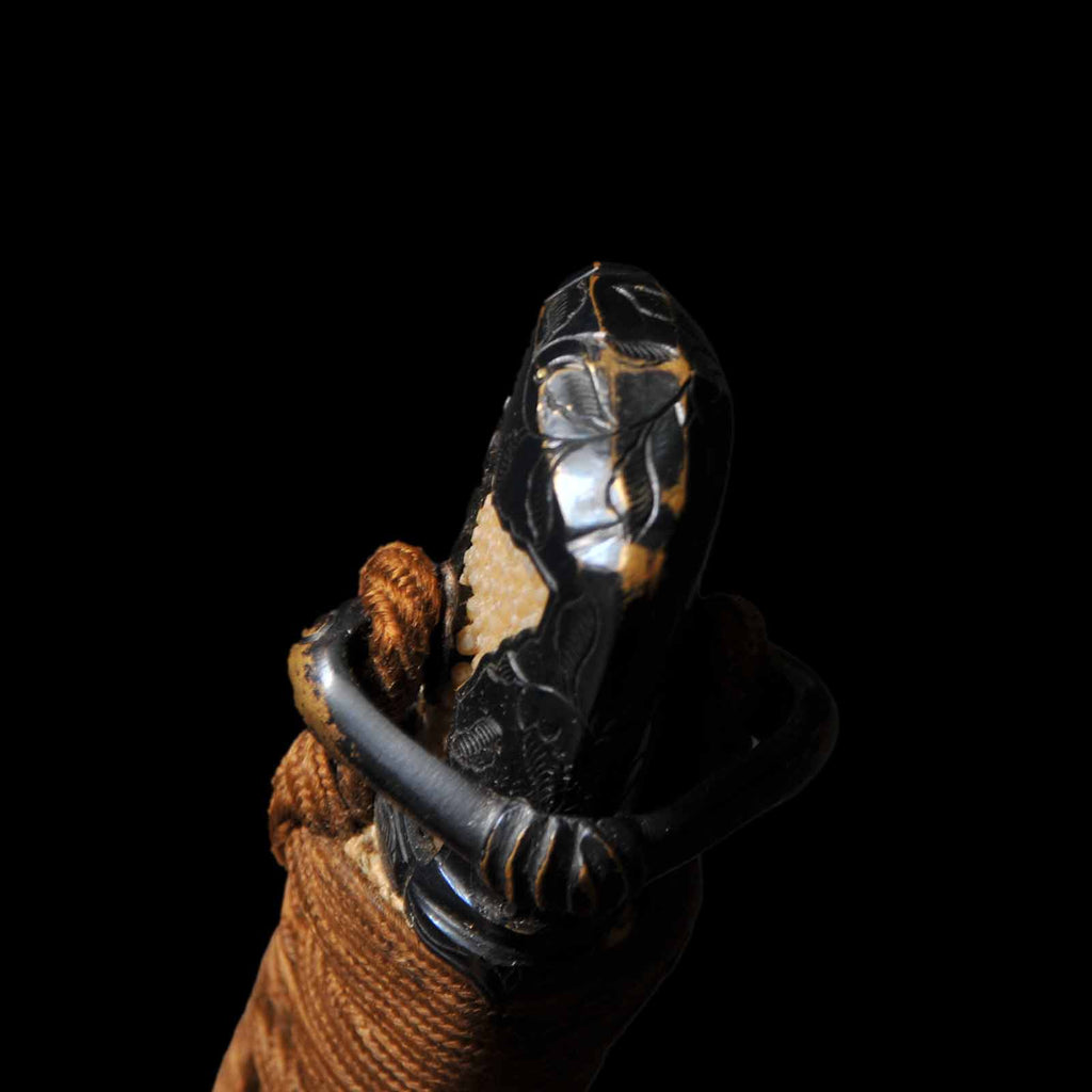 - Koshirae: Tachi Koshirae, brown silk wrapped Tsuka with Nashiji lacquered Saya