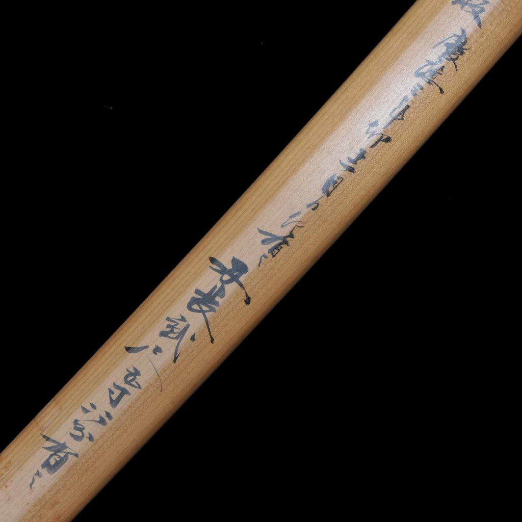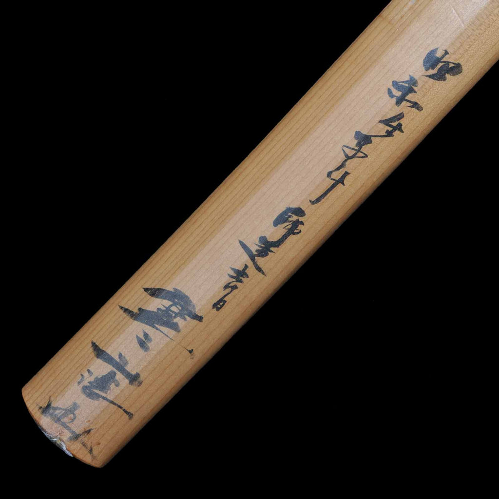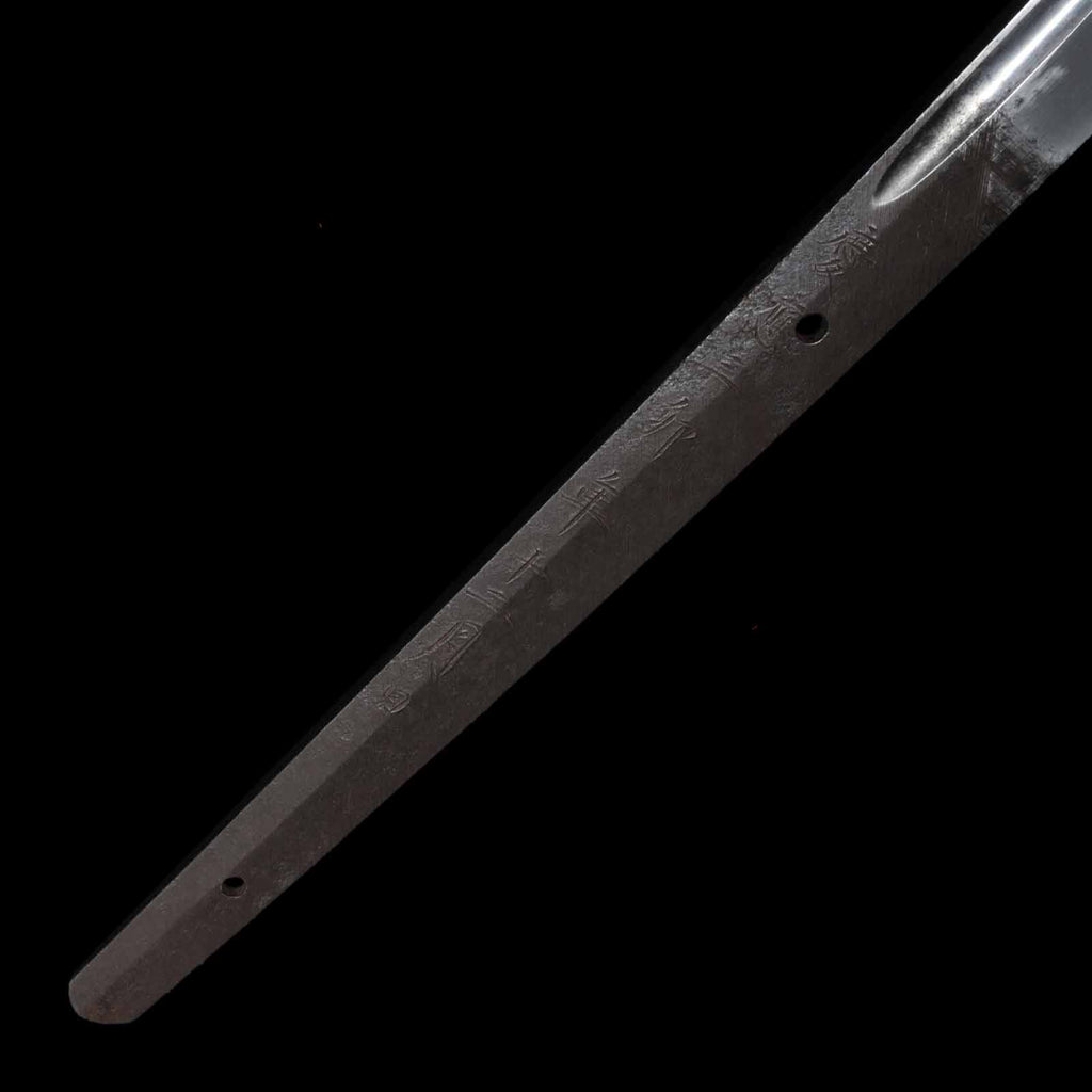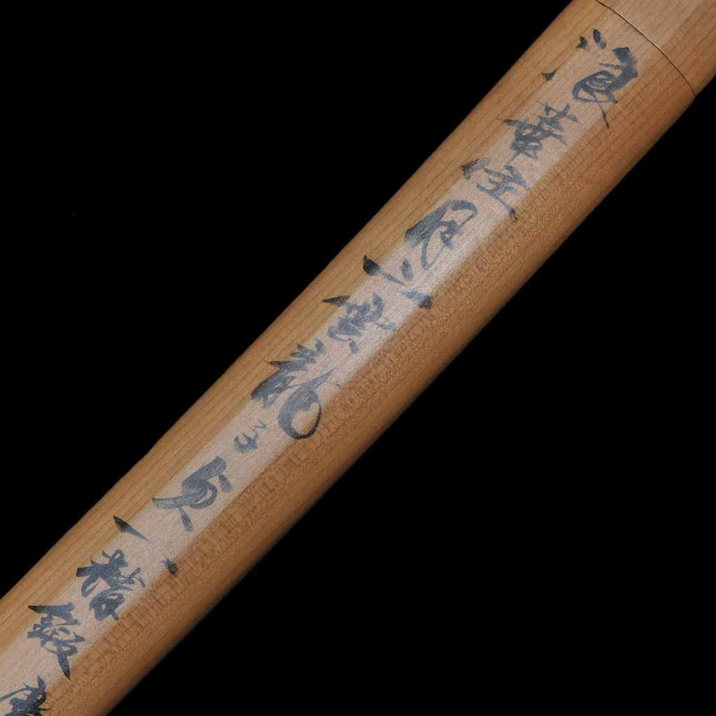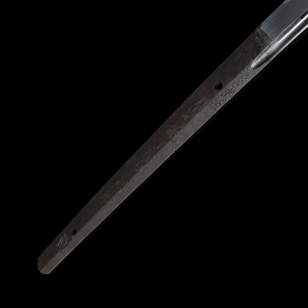 This piece is in excellent preservation condition and is of great beauty. Typical Bakumatsu sword features, such as shallow curvature and large kissaki, can be seen on this sword. The hada is a well-packed itame hada that enjoys active layers such as chikei. Hamon is suguha with ko-gunome mixed in places. This was made when he lived in Osaka, and on the back of the nakago is engraved December 1867, the month this sword was made. His works made after the Meiji period are available in the market, but those made in the Edo period are rare and valuable. Sato Kanzan, an authority in the appraisal of Japanese swords, certified this piece as the work of Sadakazu I, and wrote as such on the scabbard.