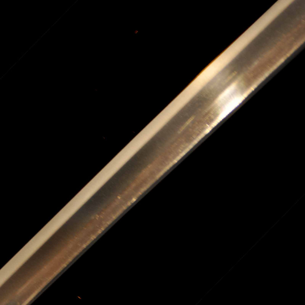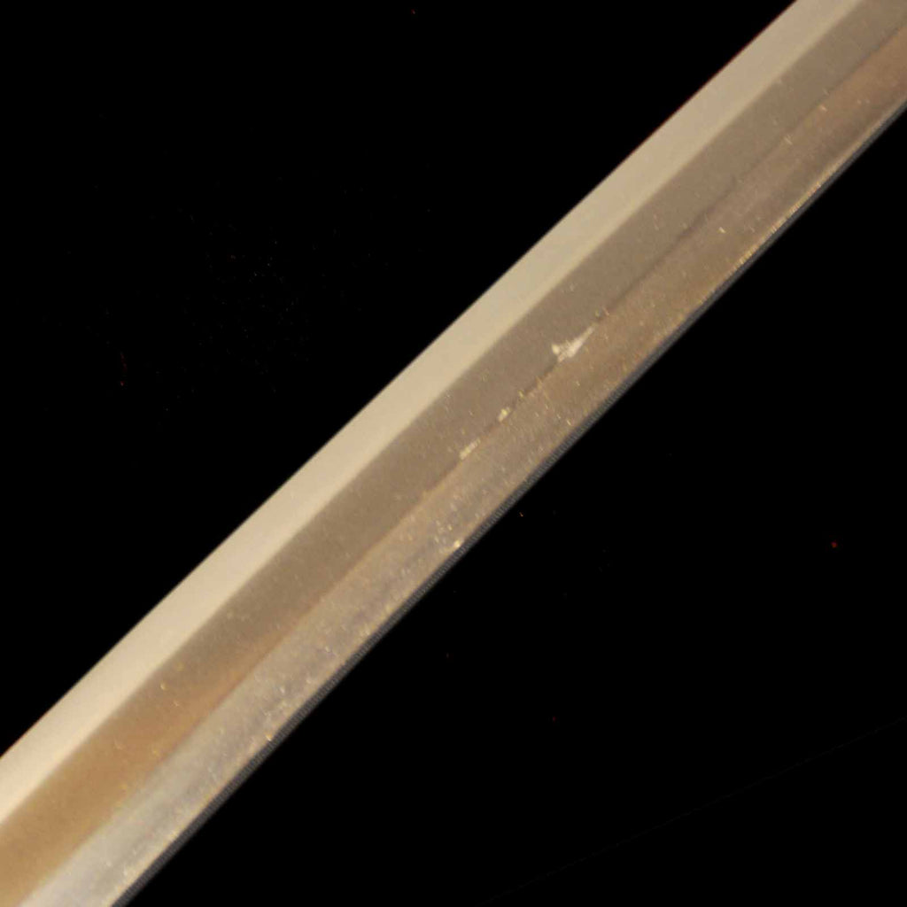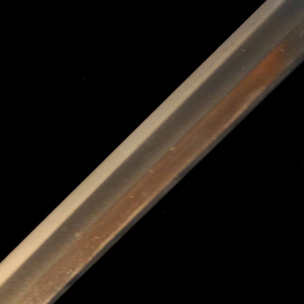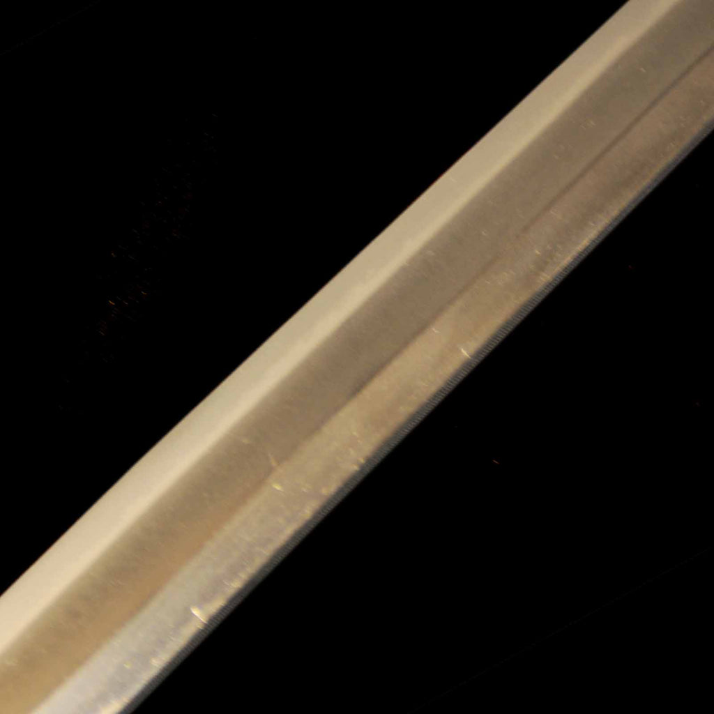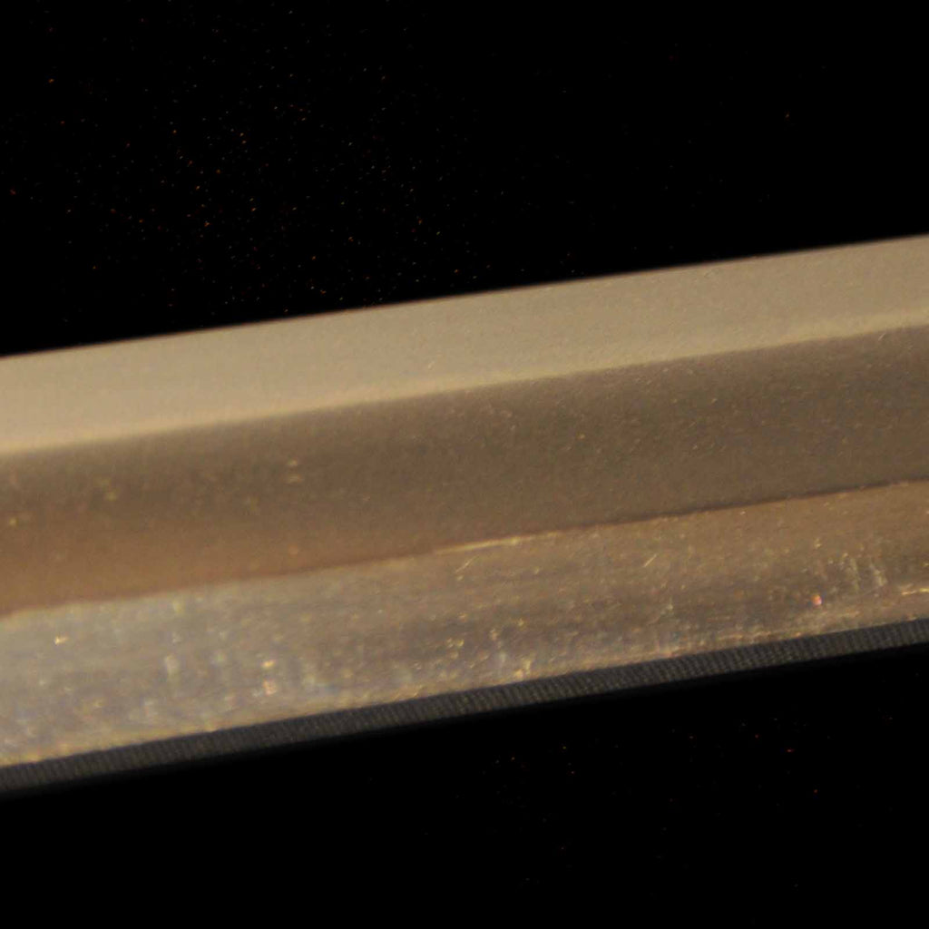 This sword is a typical late Sinshinto piece with a shallow curvature, which was popular at the end of the Edo period. The sword is well preserved with no rust or flaws, but the surface is slightly cloudy due to age. It is equipped with the original metal fittings, but with two additional seppa installed to adjust the tsuba. On the nakago is engraved "Tadayoshi, a resident of Hizen." Looking at this sword, which embodies the swords of the end of the Edo period, when the sword curvature became shallow to ensure that the enemy would be killed by thrusting, one may also feel the spirit of the samurai of the time.