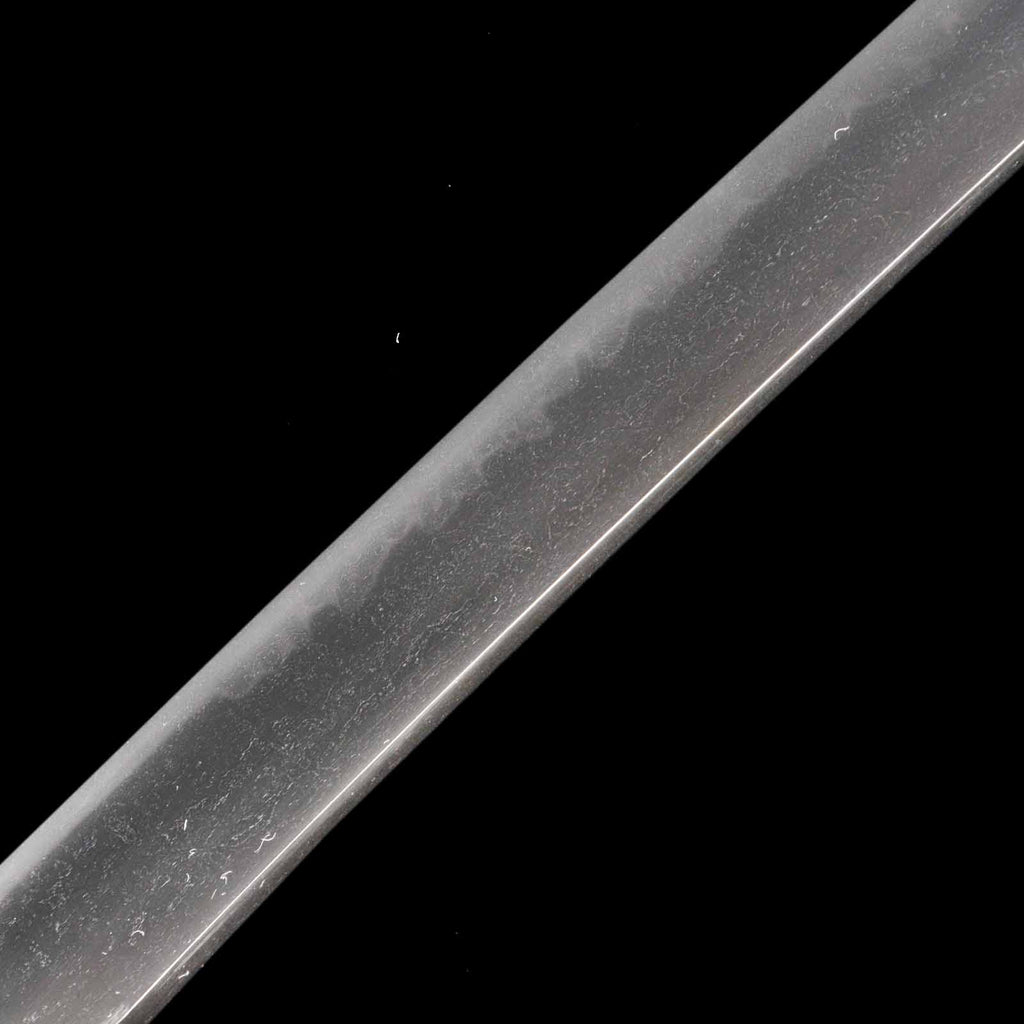 The blade is in extremely good condition, with no flaws whatsoever, suggesting that it was carefully preserved. The jigane has a base tone of itame with some mokume mixed in, and the yubashiri is also clearly visible. The hamon is irregular choji, with very active hataki such as tama and ashi in places. The nakago is engraved with the name “Senshu Kunimitsu.”