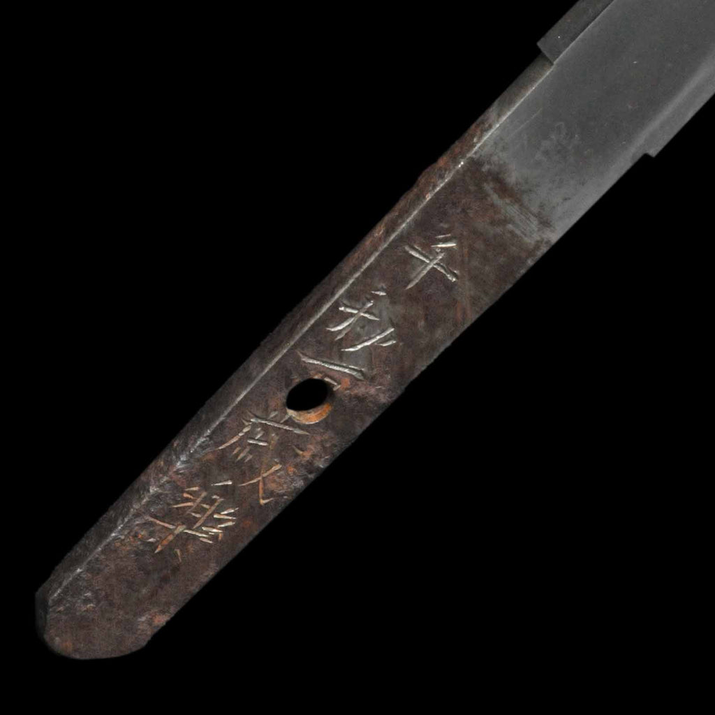 The koshirae is equipped with two types of koshirae: shirasaya and tanto koshirae. The tanto koshirae has fine kizami applied to the tsuka and part of the saya. The Saya is lacquered with a textured tame-nuri finish and decorative metal fittings.