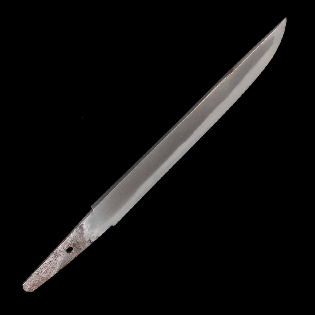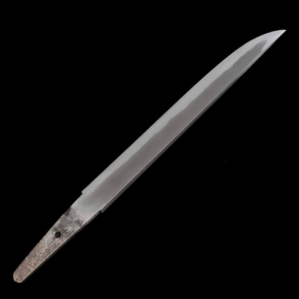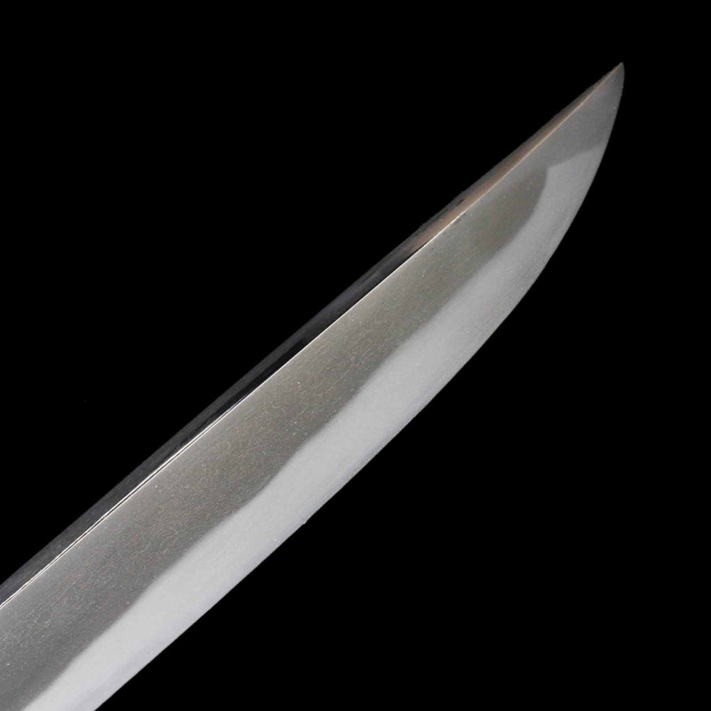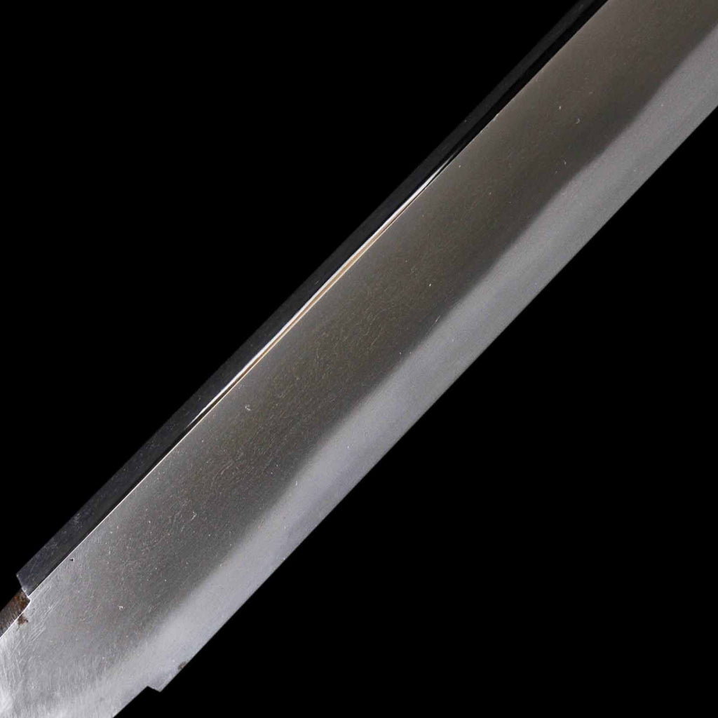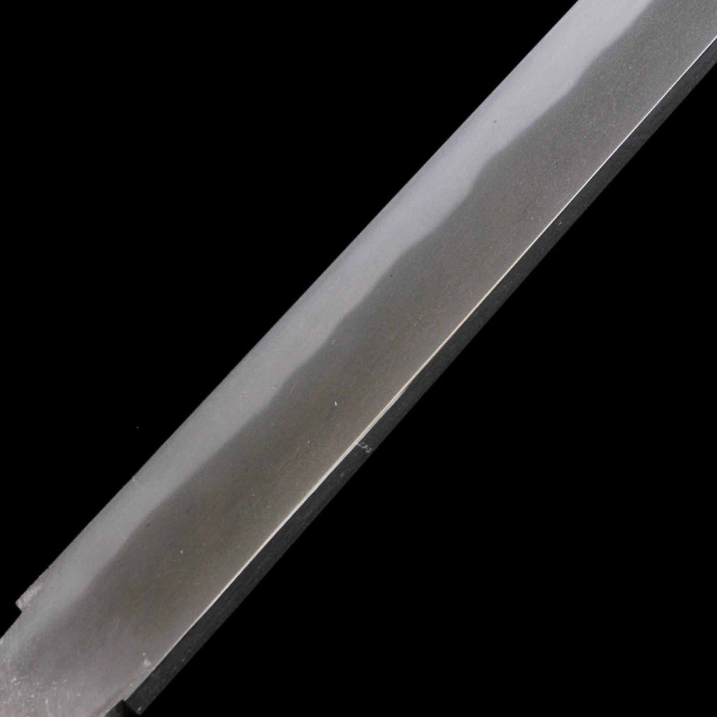 The sword is very well preserved with no flaws or chips. The well-packed itame hada is decorated with suguha hamon on one blade and gunome hamon on the other. Both hamon have well-tightened nie. The name "Nagasone Oki" is engraved on the nakago, probably the name of a swordsmith of the Nagasone clan, but it is assumed that the nakago has been shortened by suriage and the name has been cut off in the middle.