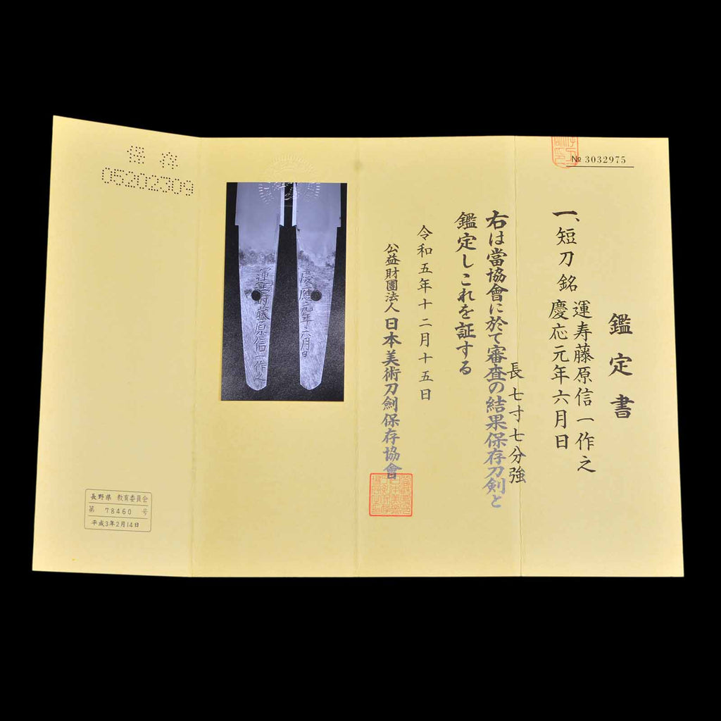 Tanto - Nobukazu - NBTHK Hozon Certificate - Shirasaya Koshirae - Ubu Nakago - Shinshinto Era - Nagano 78460
