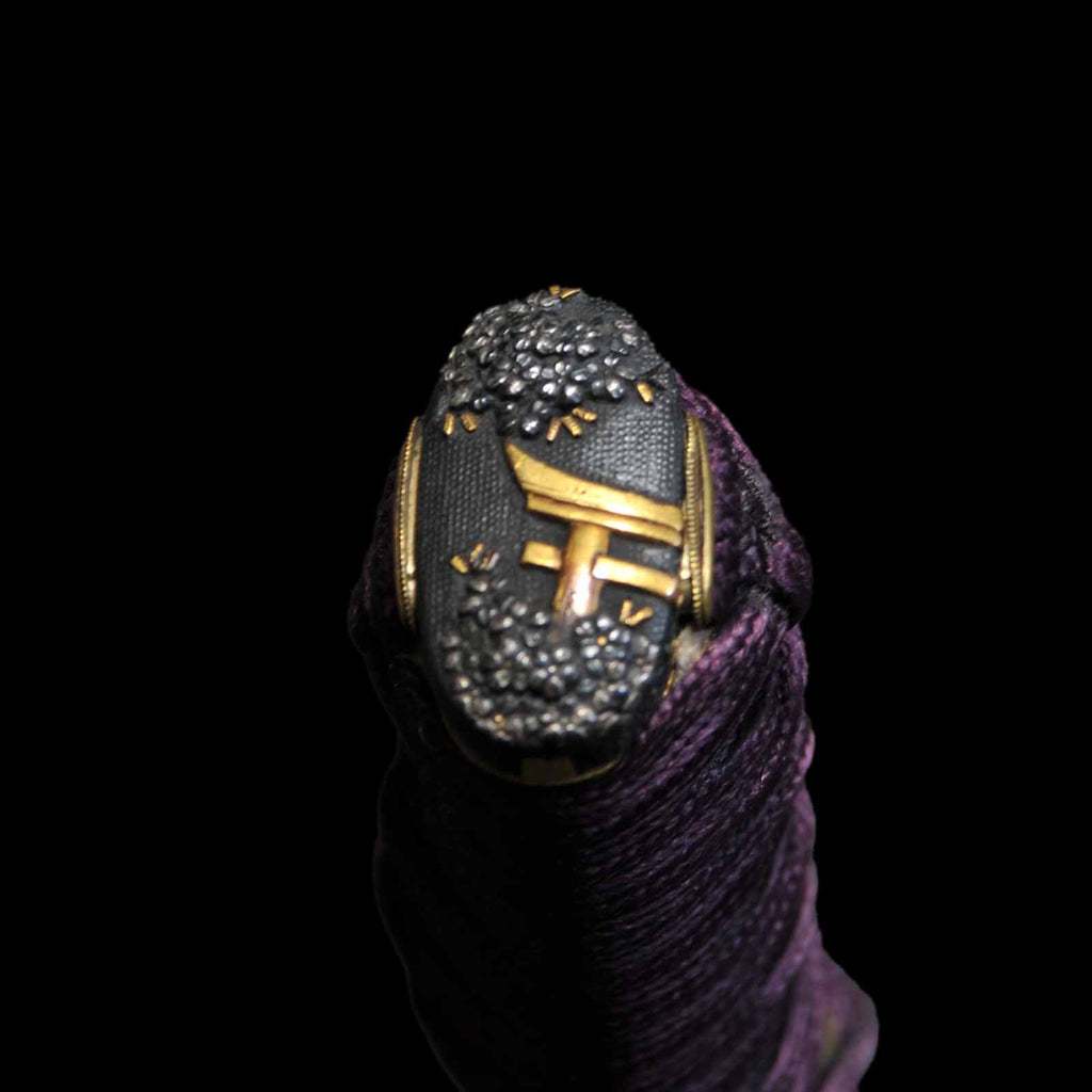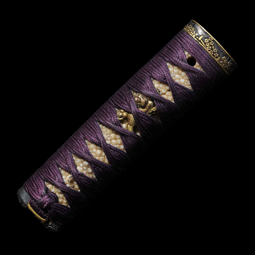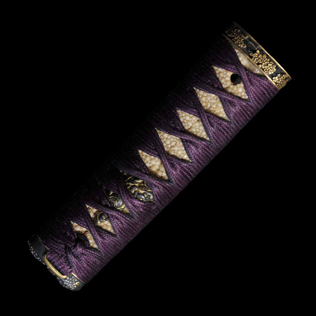 - Koshirae: Purple silk Tsuka wrapping with Kuro-ro Saya lacquer
