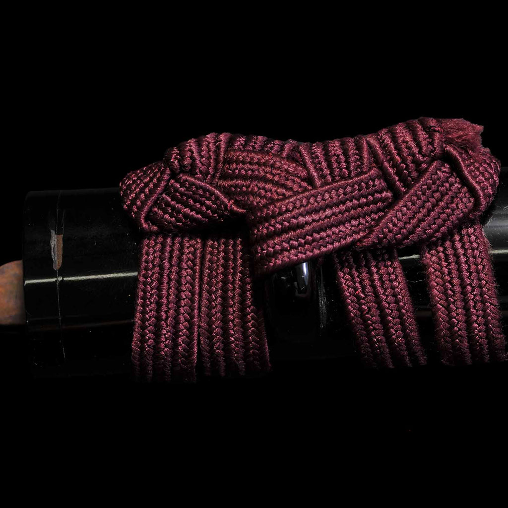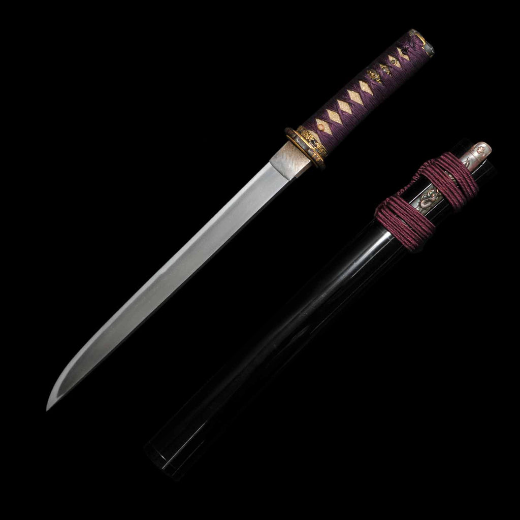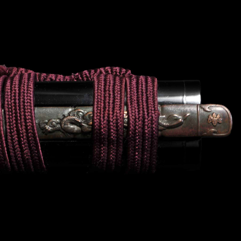 - Koshirae: Purple silk Tsuka wrapping with Kuro-ro Saya lacquer