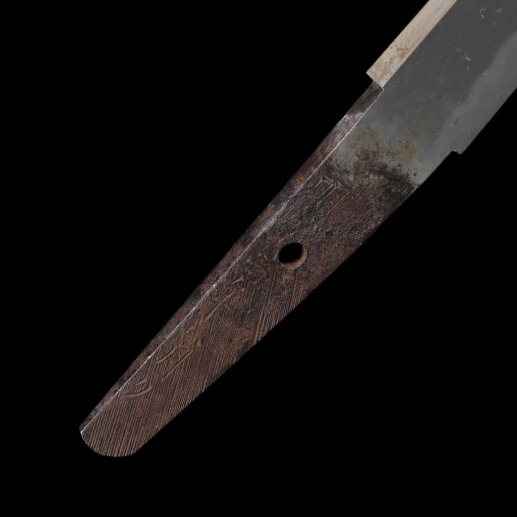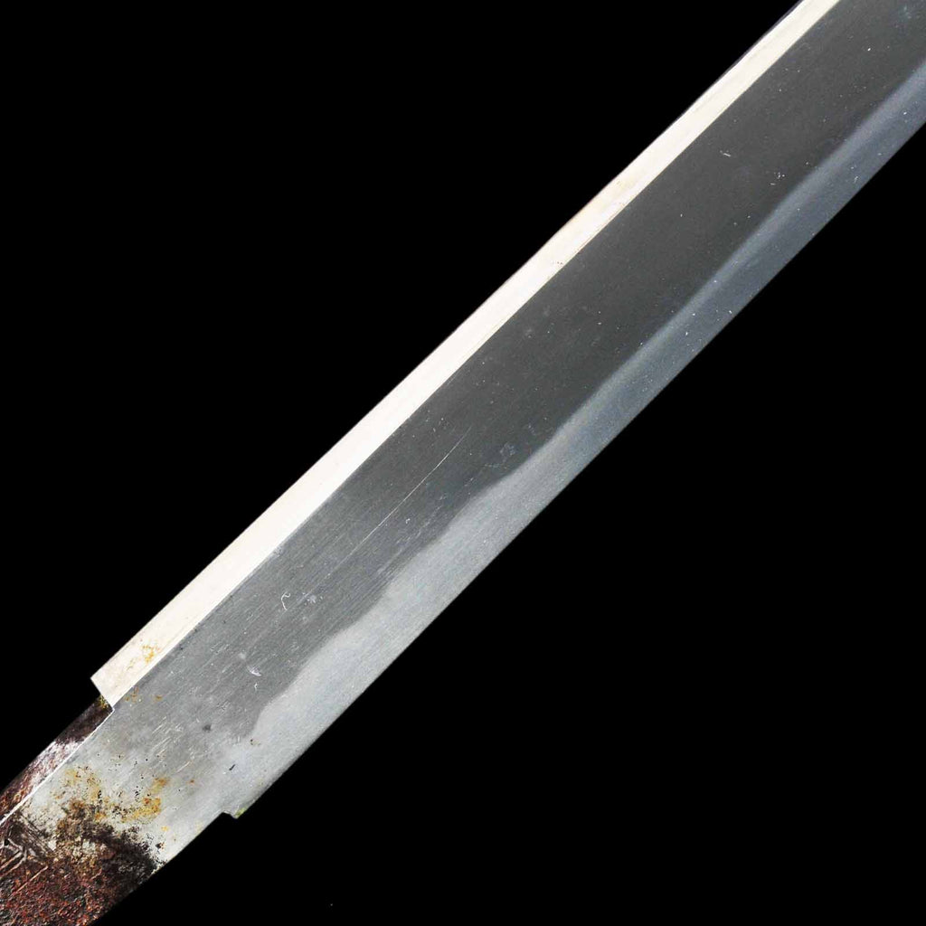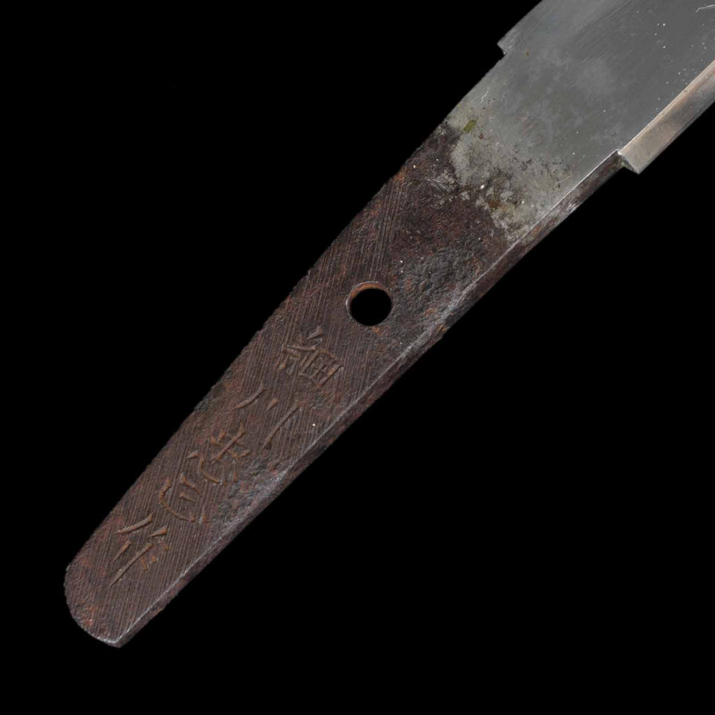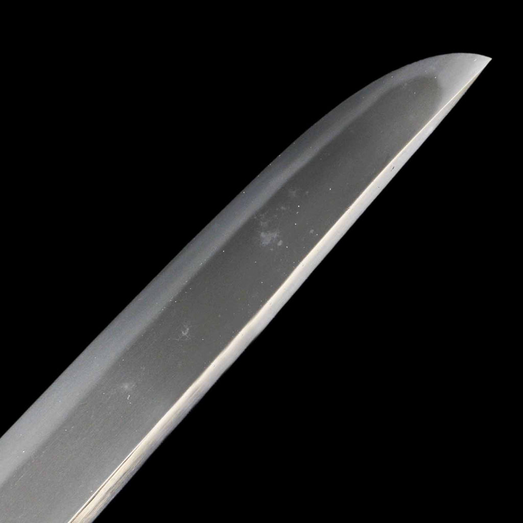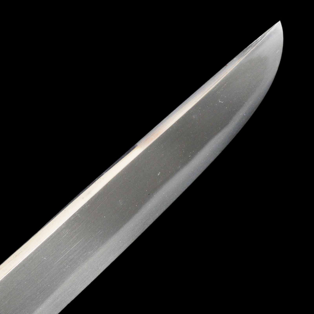 The hada is a well-packed koitame with very visible chikei. The hamon is a notare style suguha with gunome mixed in, and the nie is very bright. This dagger is thick for its length and is more of a yoroidoshi-like dagger. The name Hosokawa Tadamasa is engraved on the nakago.