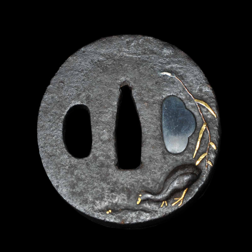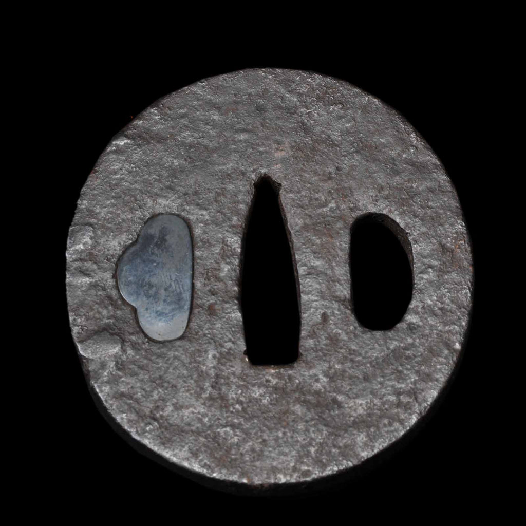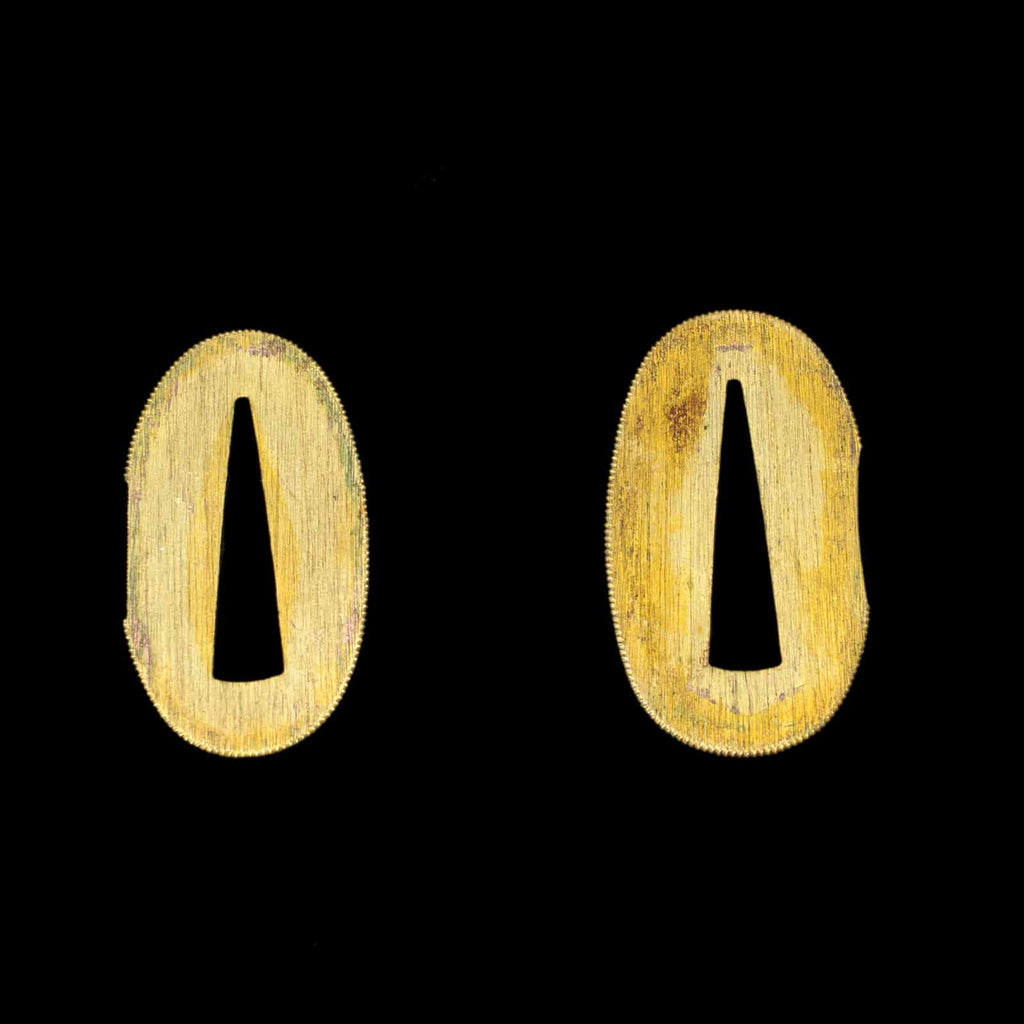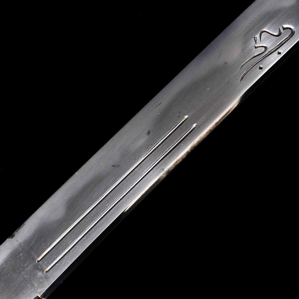 The koshirae is tanto style, with a tsuba and a black leather tsukaito in the style of a tsumami-maki. All fittings is of the period, including the kozuka. The Ishime-style scabbard lacquer is decorated with Ichimoji characters.