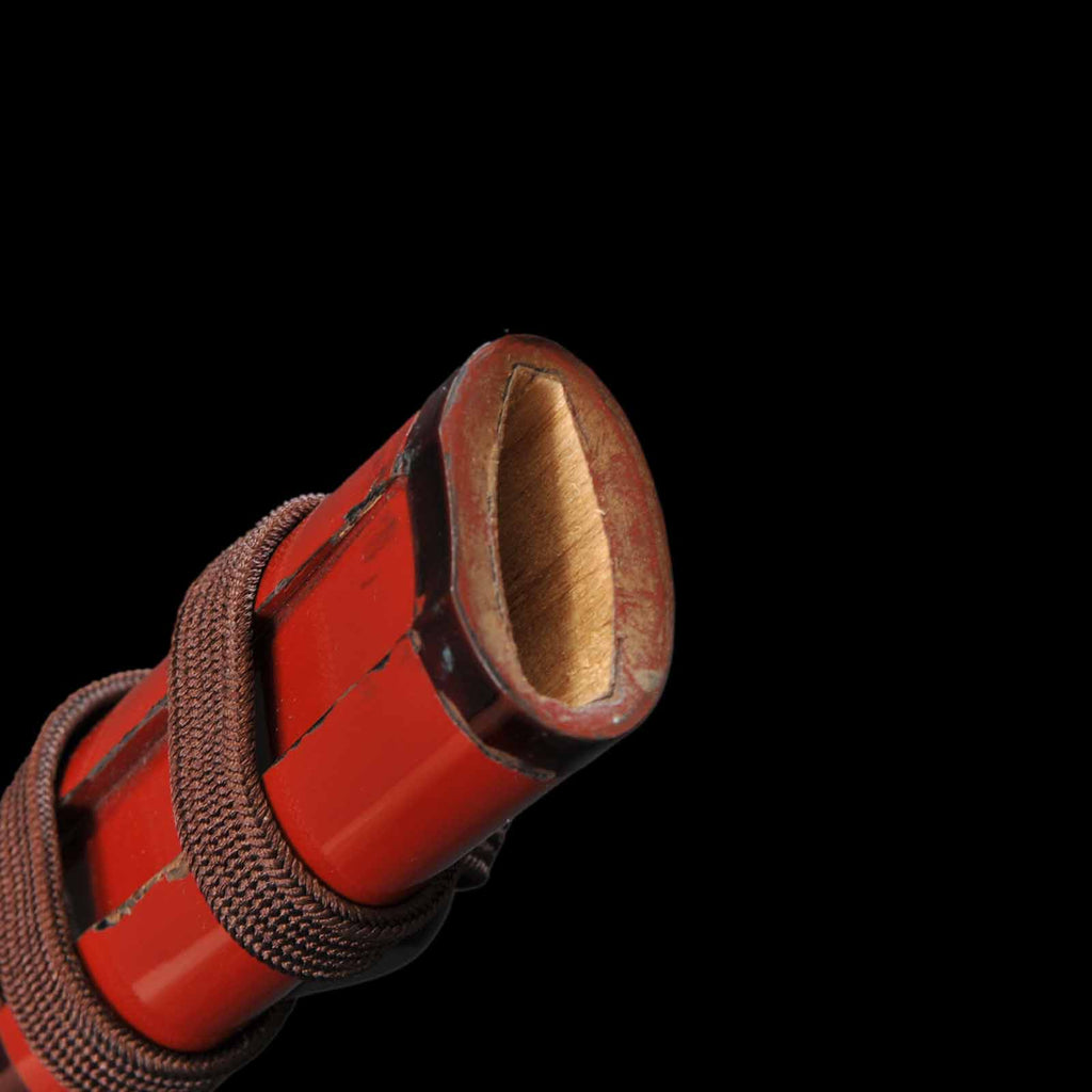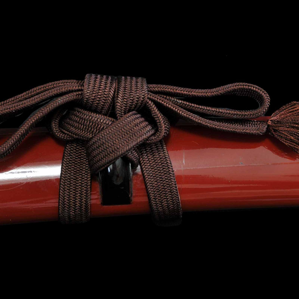 - Koshirae: Tetsukon silk Tsuka wrapping with vermillion-gloss-lacquered Saya
