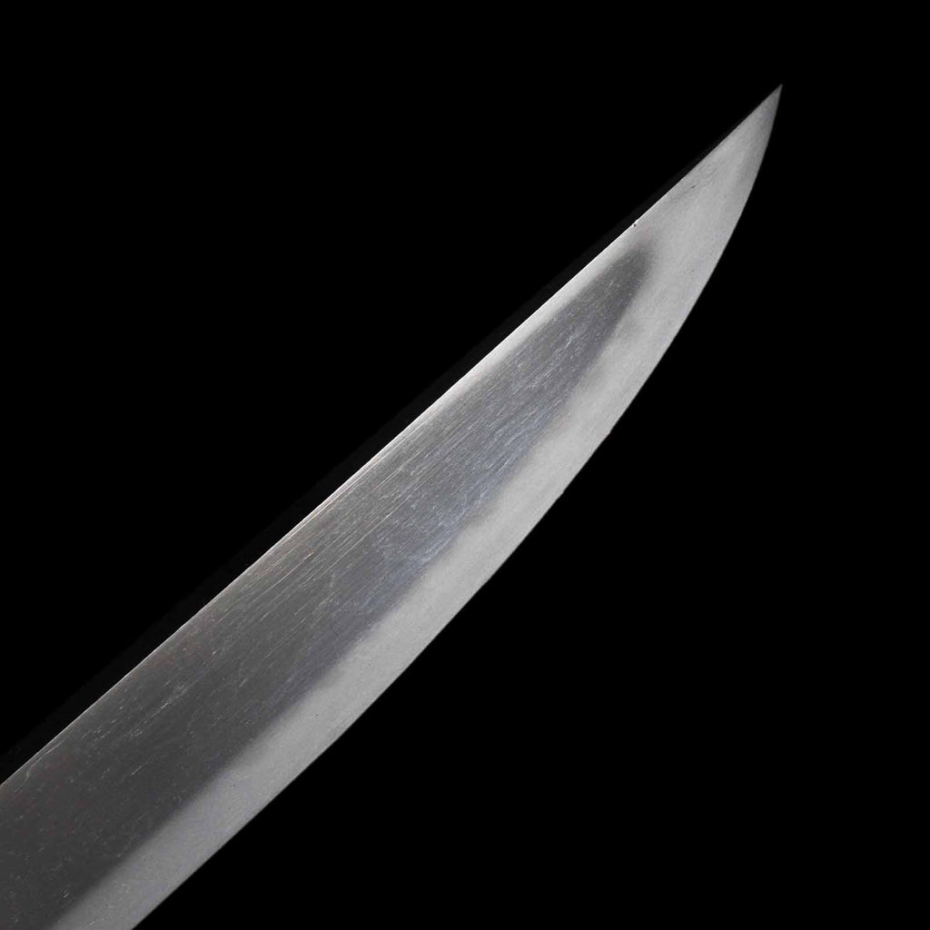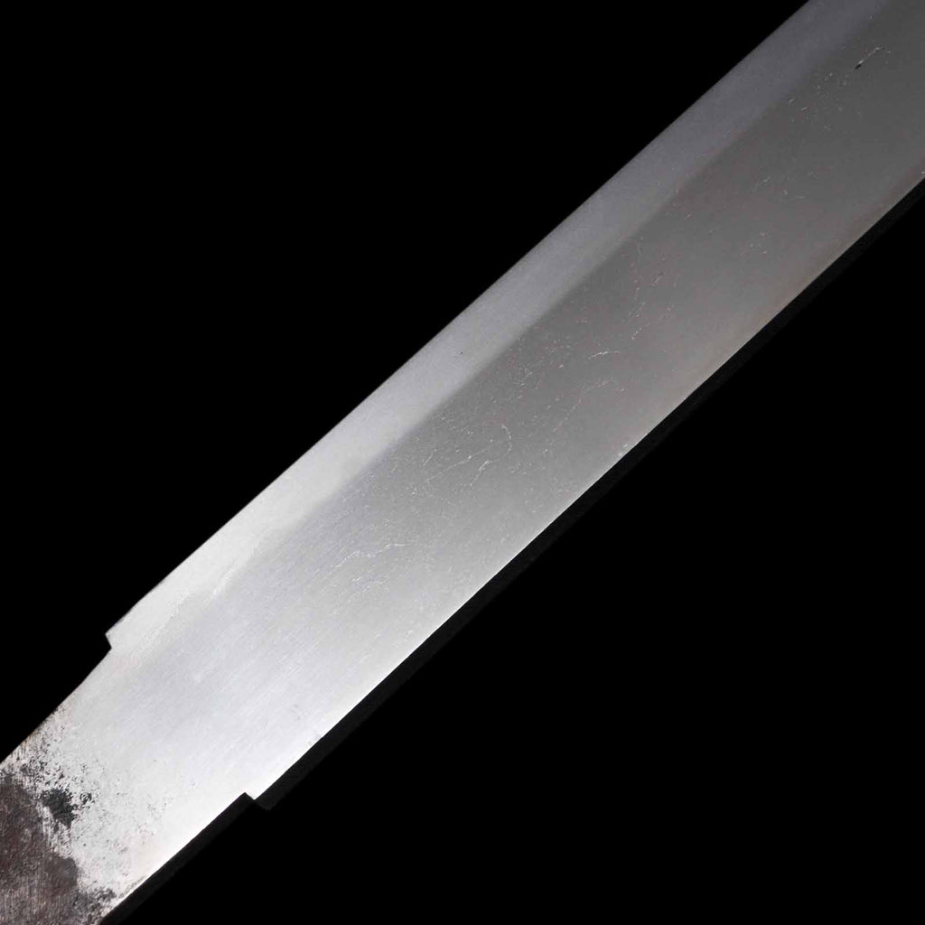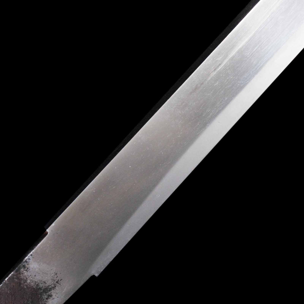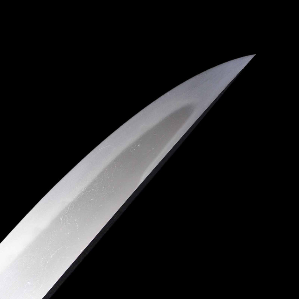 The motokasane is 9.6mm thick and very powerful. The sword is free of any defects such as forging flaws, dents, or chips, and the sharpening is in good condition, so the hada and hamon look very good. There is a scuff mark on the sashiura side about 8 cm from the munemachi that was caused by friction with the scabbard.