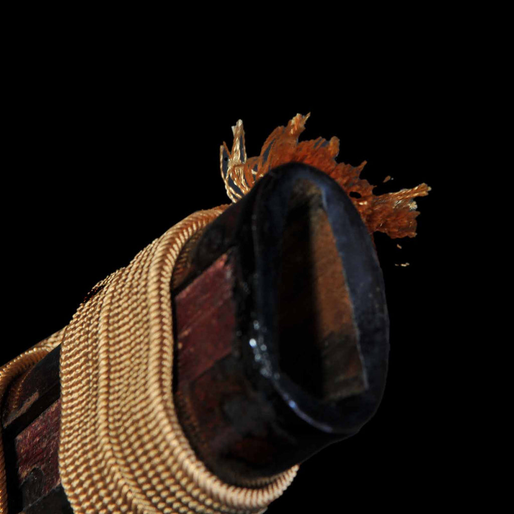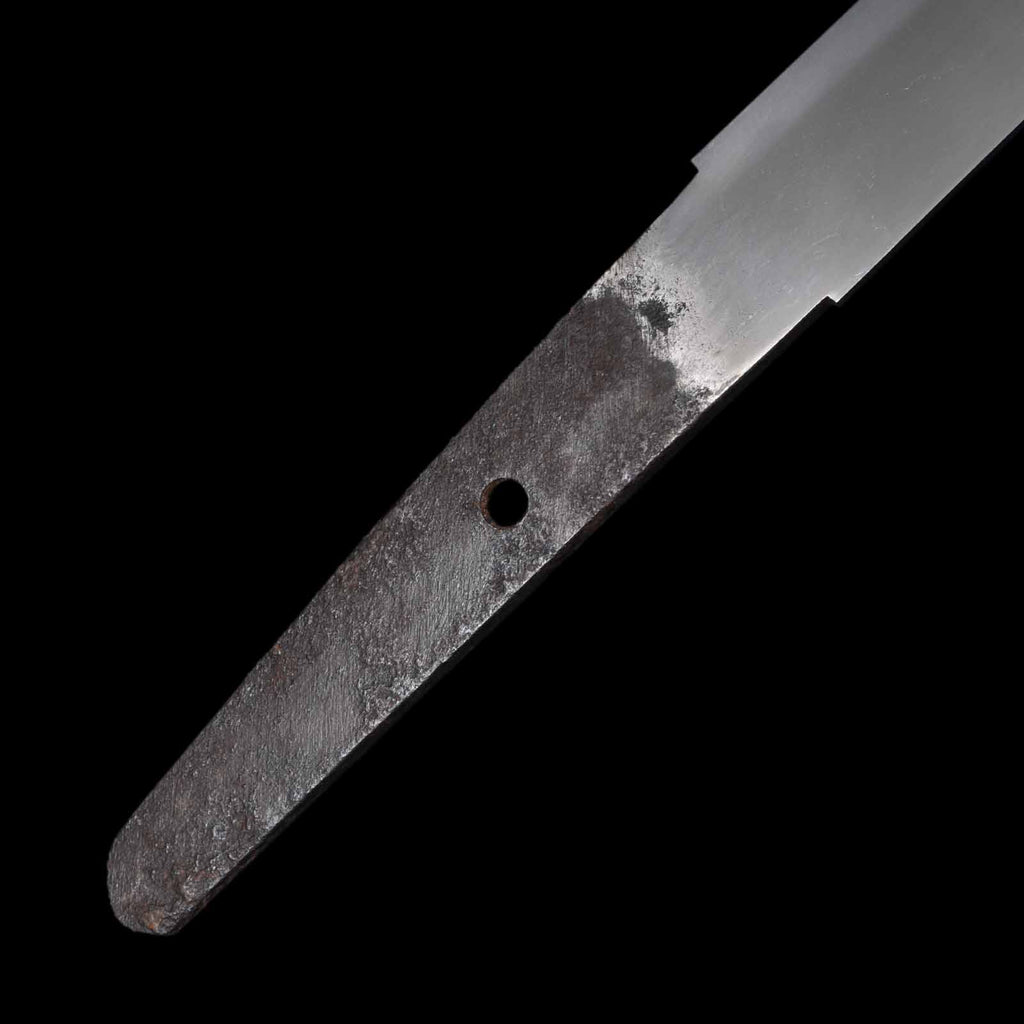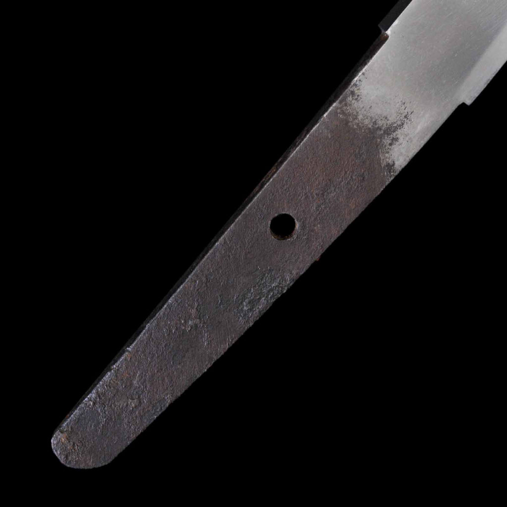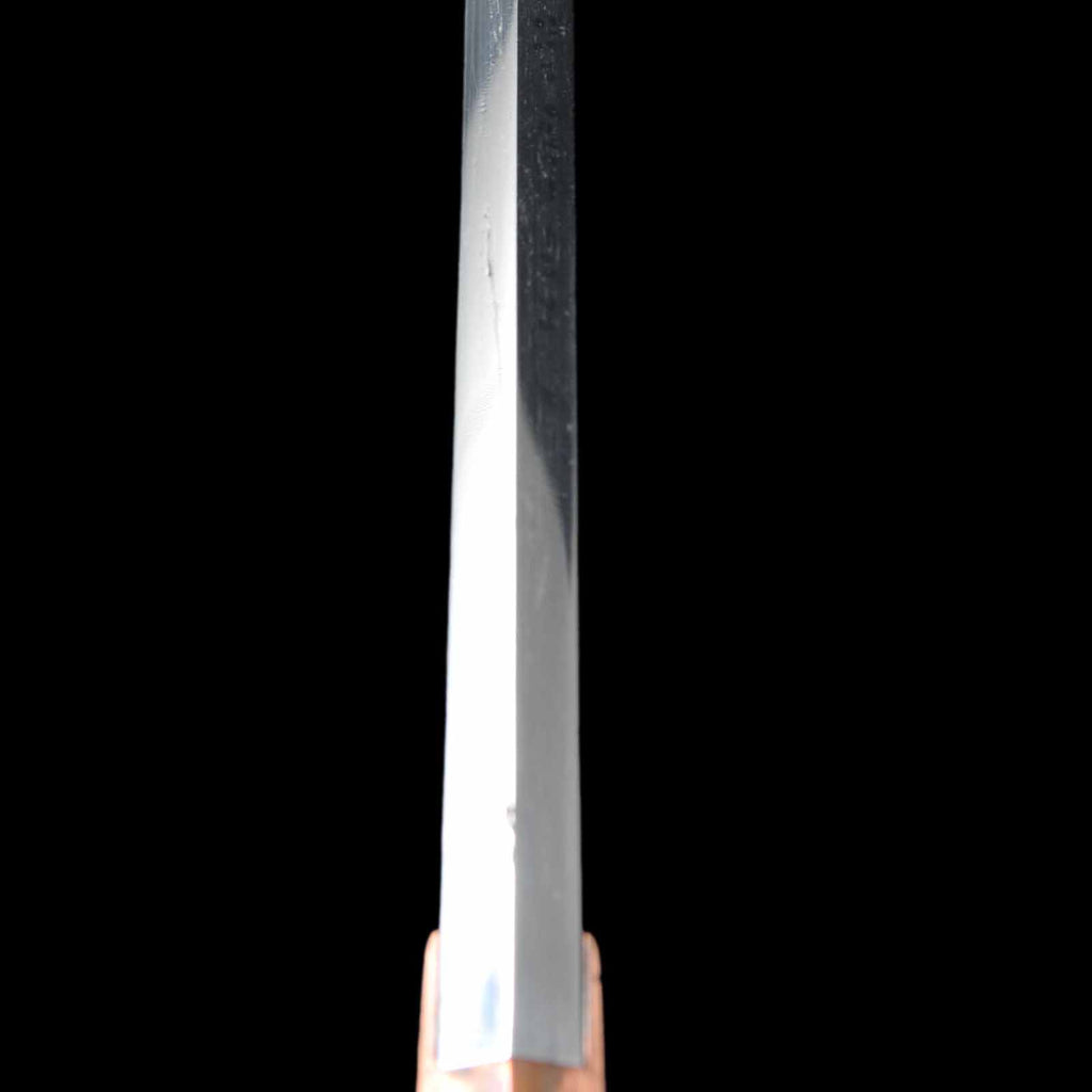 The motokasane is 9.6mm thick and very powerful. The sword is free of any defects such as forging flaws, dents, or chips, and the sharpening is in good condition, so the hada and hamon look very good. There is a scuff mark on the sashiura side about 8 cm from the munemachi that was caused by friction with the scabbard.
