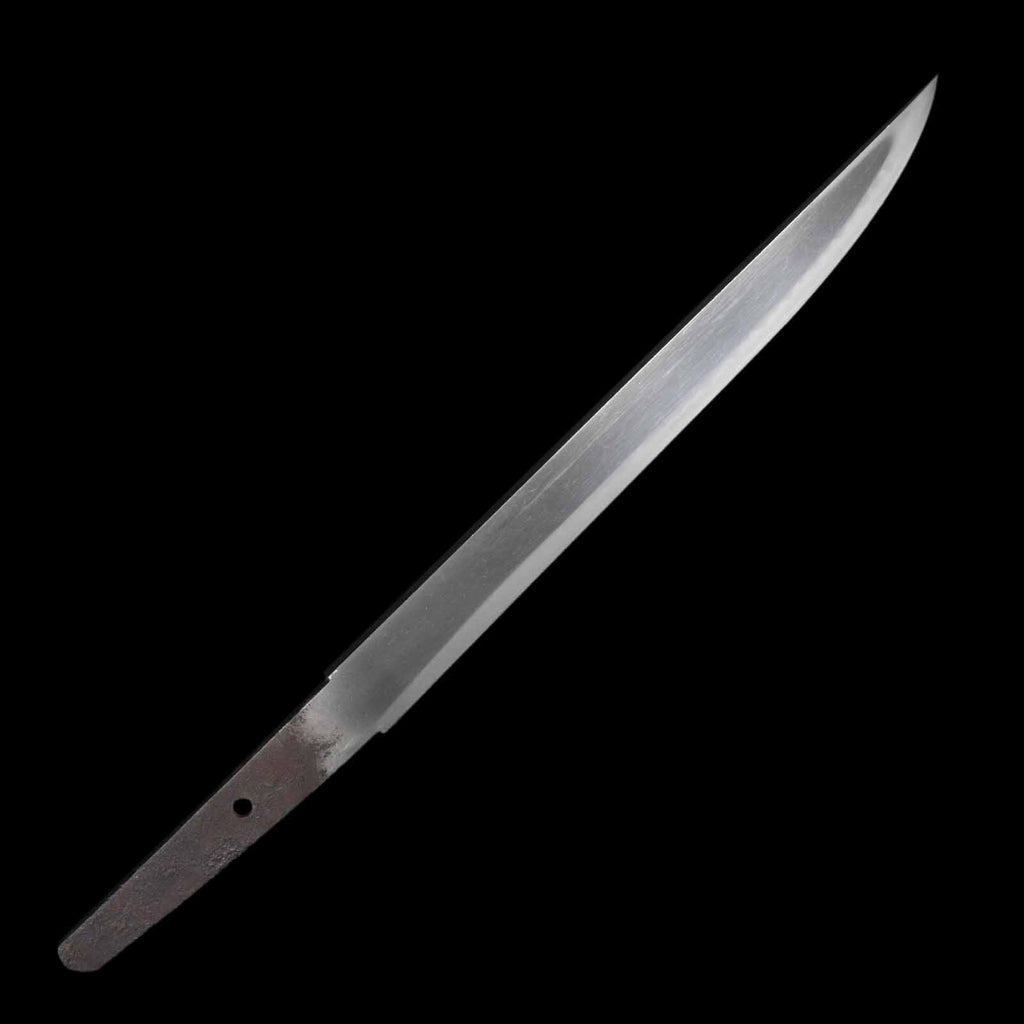 This piece is a yoroidoshi, a dagger with a very thick blade. A yoroidoshi is a short sword used to stab an armored opponent through a gap in the armor during a hand-to-hand combat, and the blade is much thicker than a regular short sword.