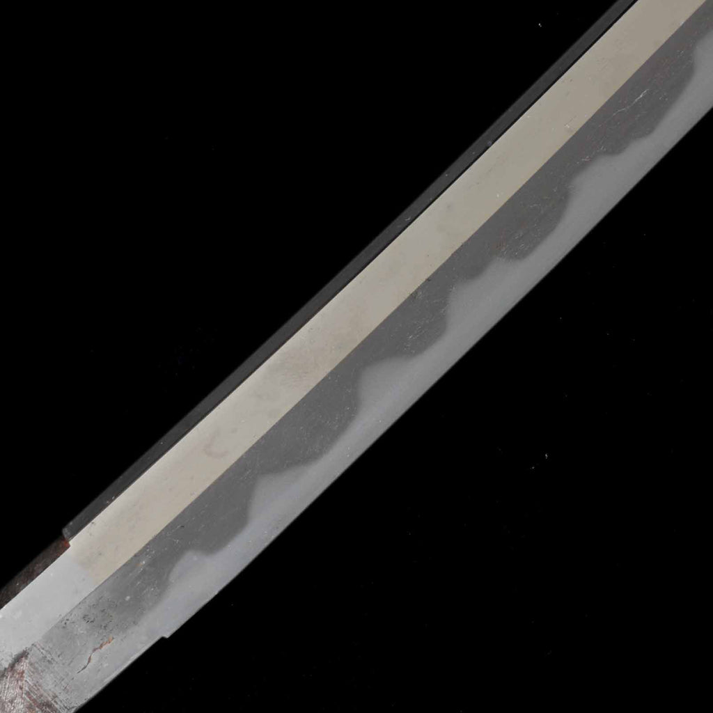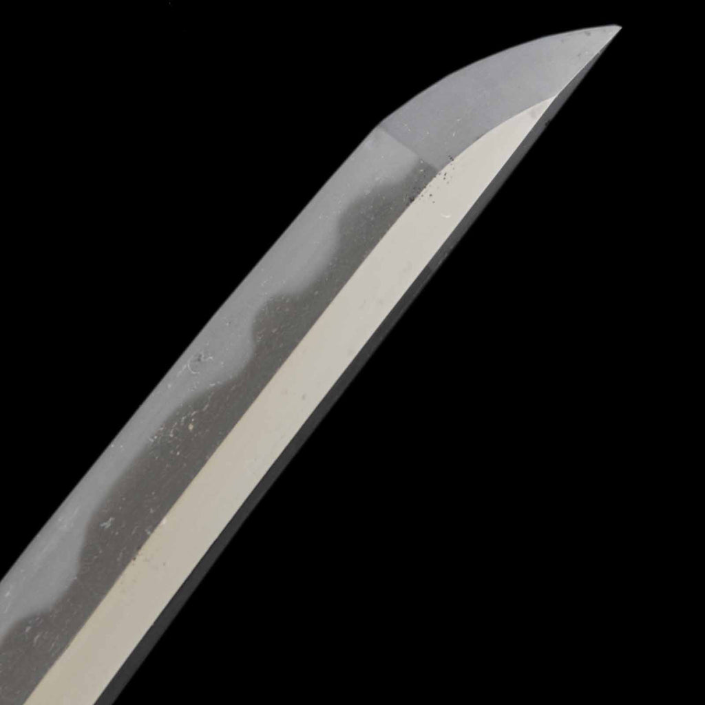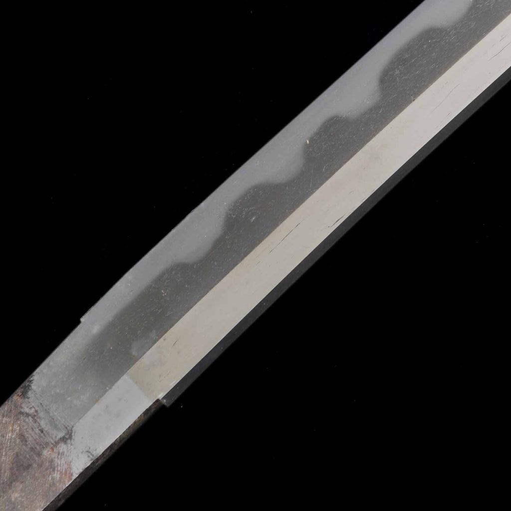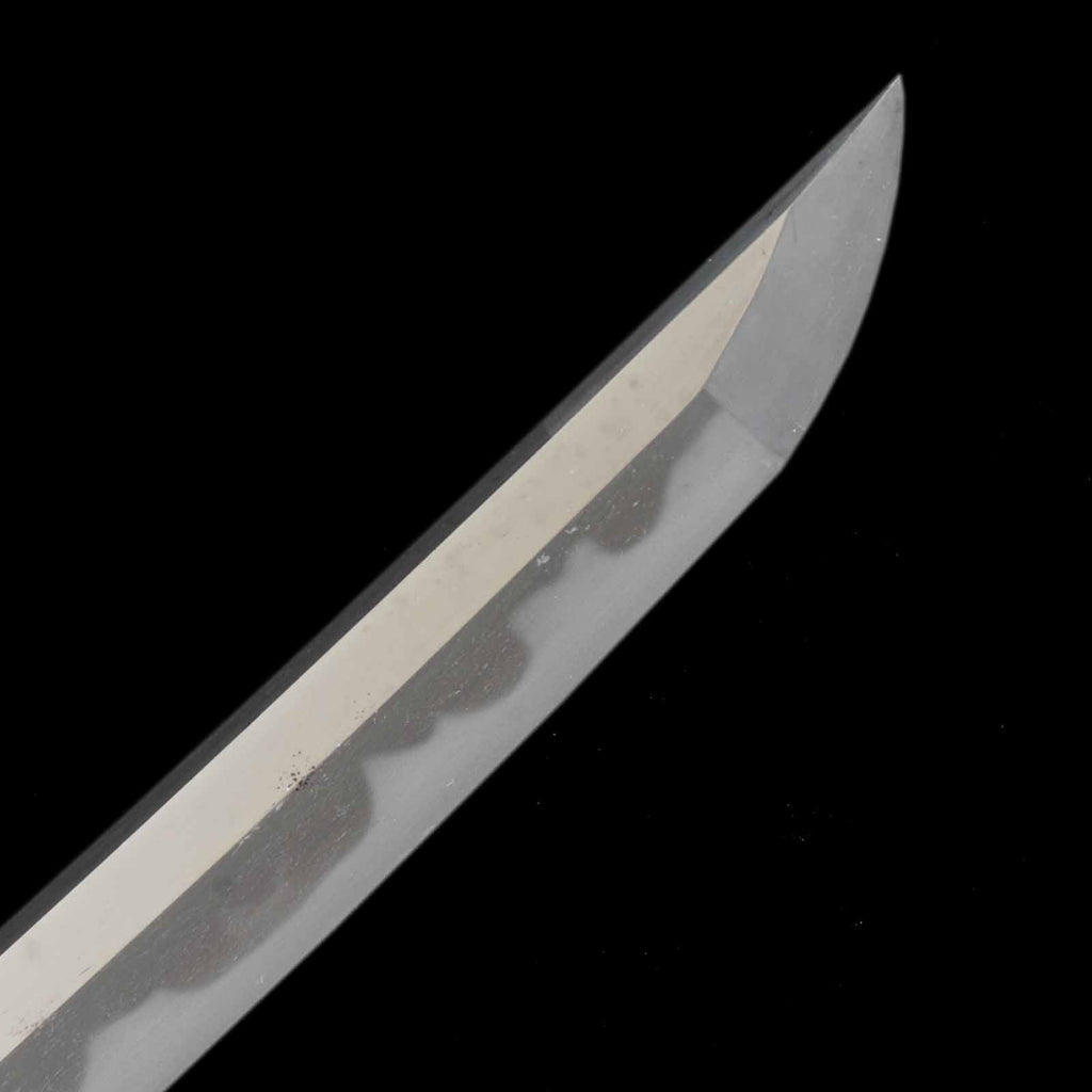 This sword is relatively well preserved, with minor black rusting but no fatal flaws. It has a dynamic Toran hamon on itame jitetsu. Suketaka was a leading swordsmith of the early Shinshinto period, and he often reproduced Tsuda Sukehiro's signature hamon, Toran.