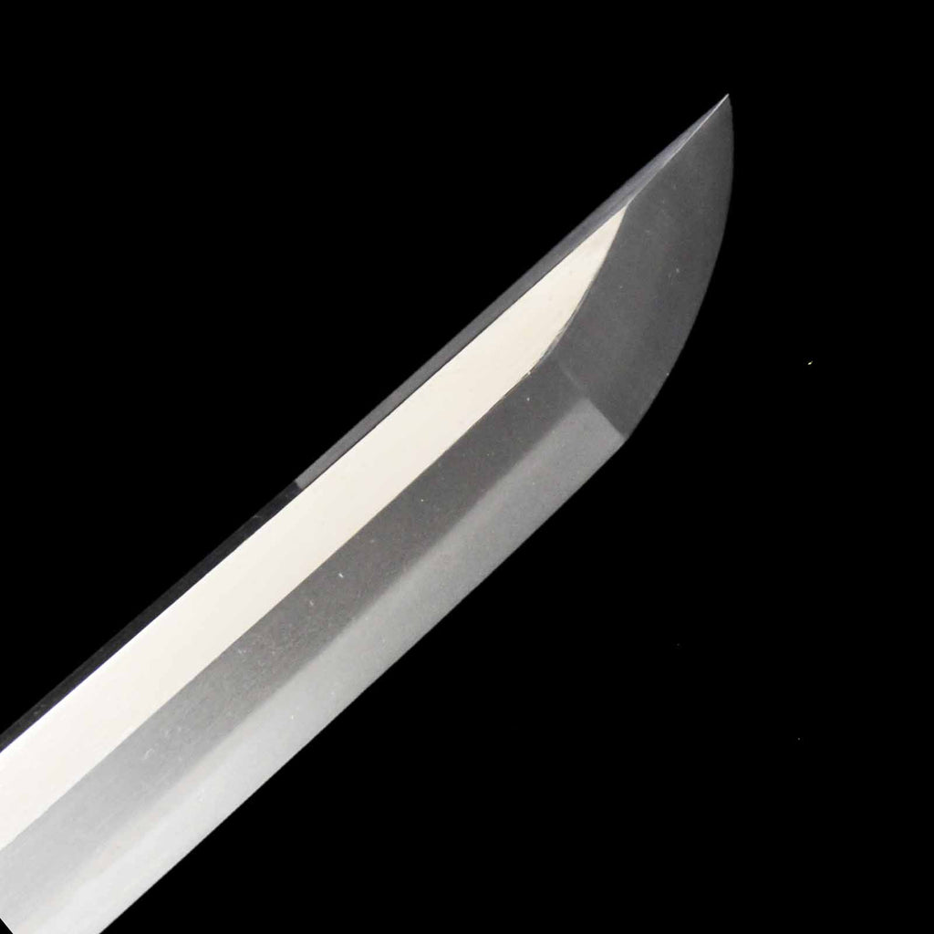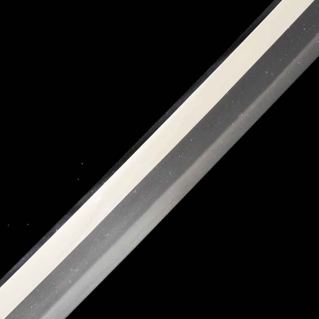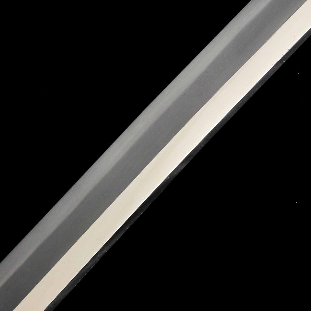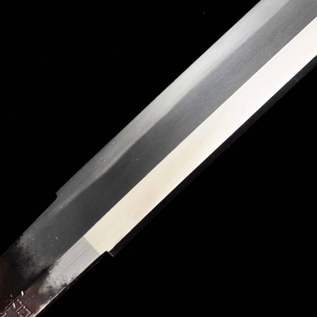 This is a wonderful Japanese sword made by the master Kanekuni during the Shinto period. It is in excellent condition, with no chips, flaws, dents, or other defects, and is in near perfect condition. As is typical of early Shinto swords, there is not much curvature and the hada is well packed and itame, and the chikei is clearly visible. The hamon is a relaxed notare-like suguha, with a konie attached to the edge of the ha, which sometimes doubles or frayed. The inside of the ha is bright and brilliant with a deep nioi. On the nakago is engraved the words, "Kanekuni of Tegai, Wakayama Prefecture, made this in Sumpu.