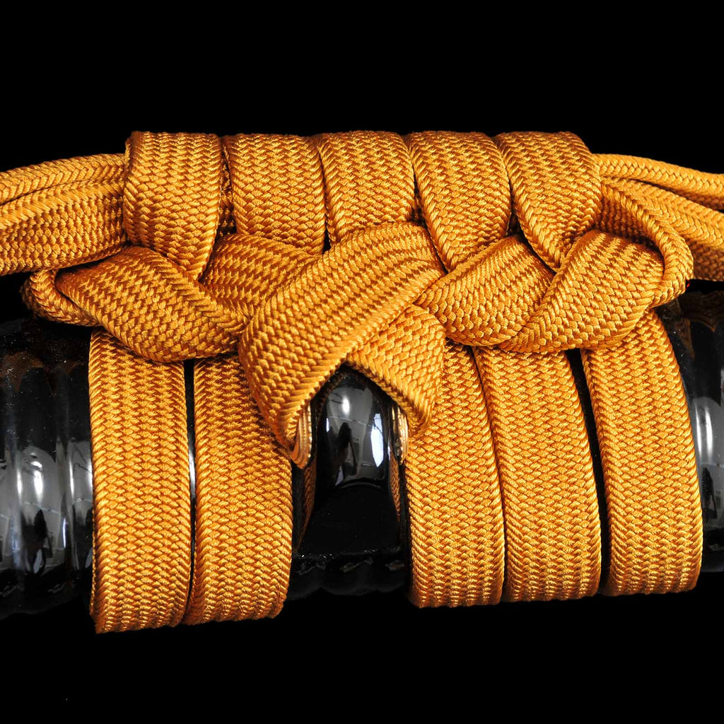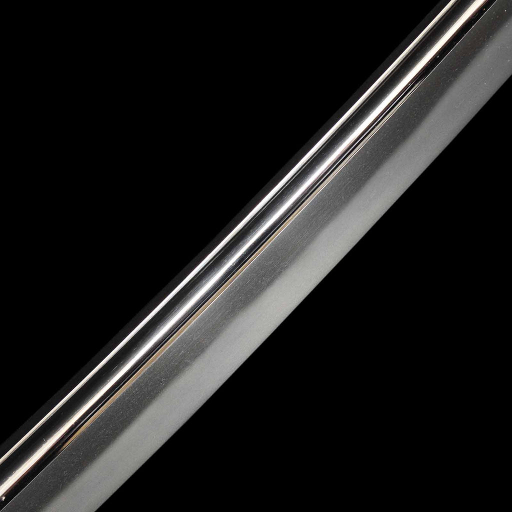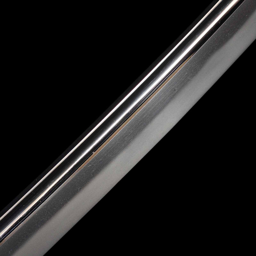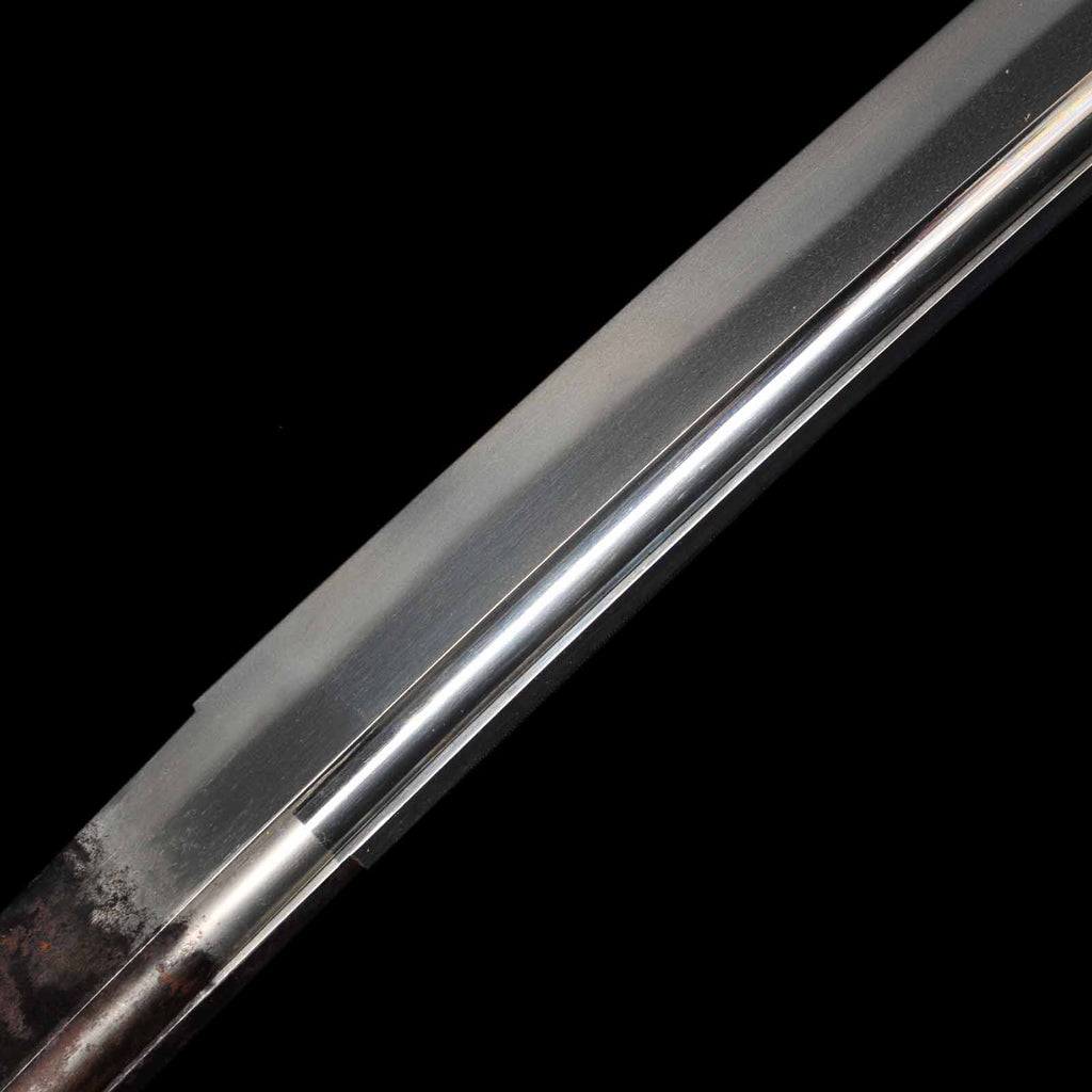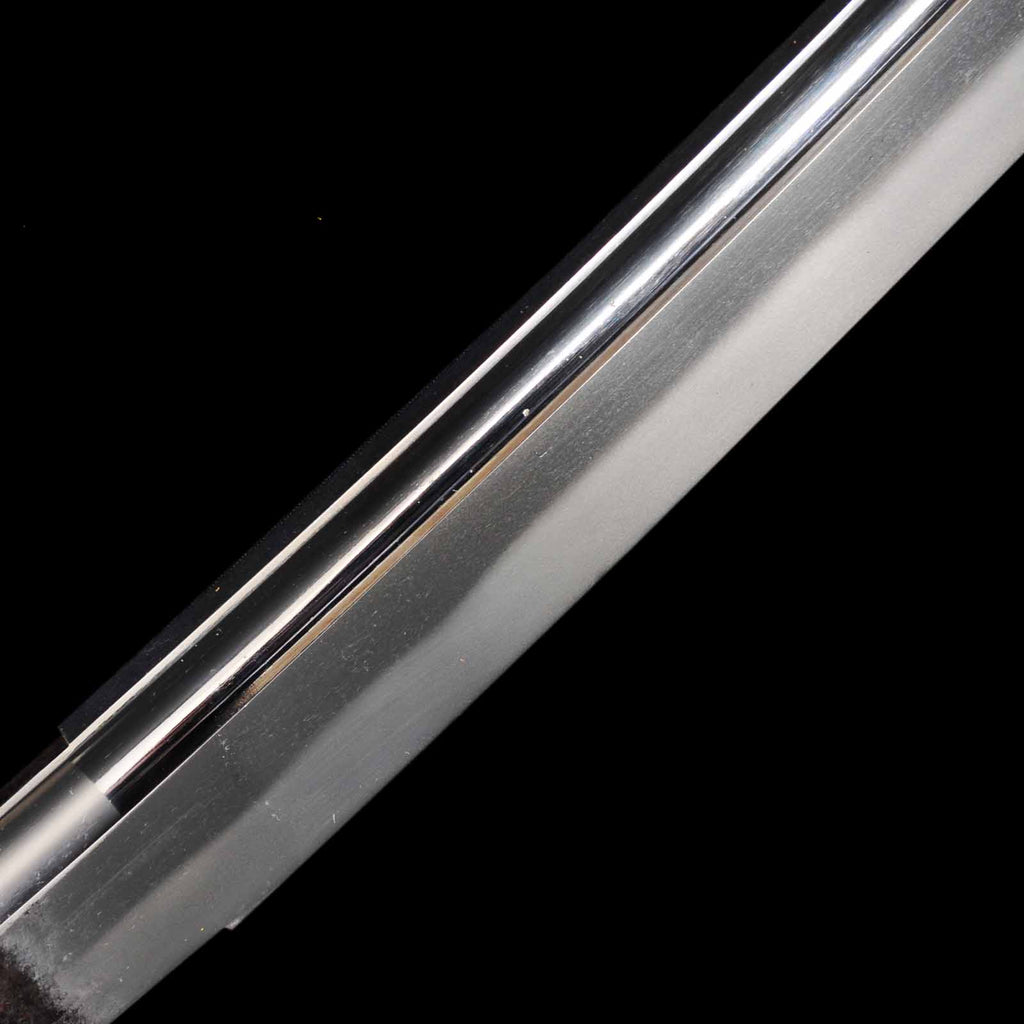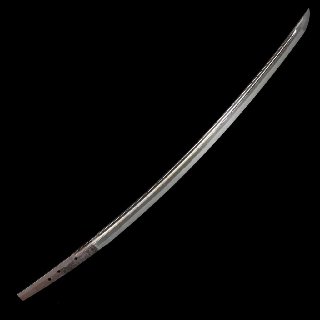 - Koshirae: Black silk Tsuka wrapping with Sendan Kizami Kuro-ro Saya, Shirasaya