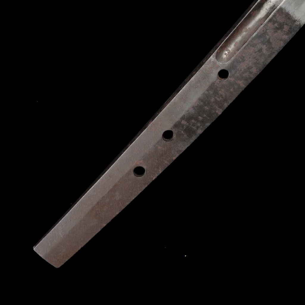 This set is also equipped with uchigatana koshirae, and like the sword itself, the koshirae is extremely well preserved. The tsuka is wrapped in black silk cord in the style of tsumami-maki. All metal fittings are of the period and have an Edo period look. The scabbard is of the kizami type, elegant and refined.