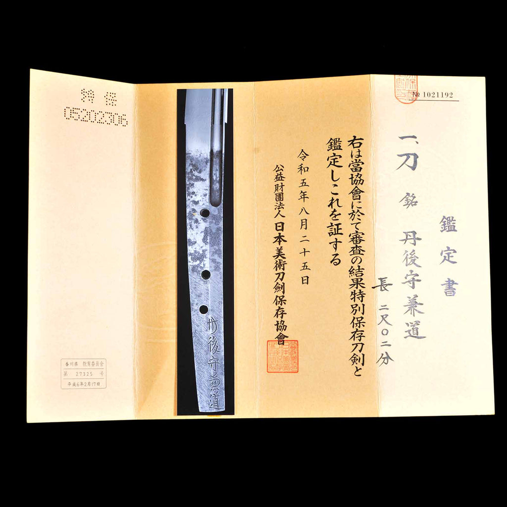 The Society for Preservation of Japanese Art Swords(NBTHK) has certified this Kanemichi piece as being of very high value for preservation for posterity and should be treated specially, and issued a certificate of authenticity for it in August 2023, Tokubetsu Hozon.