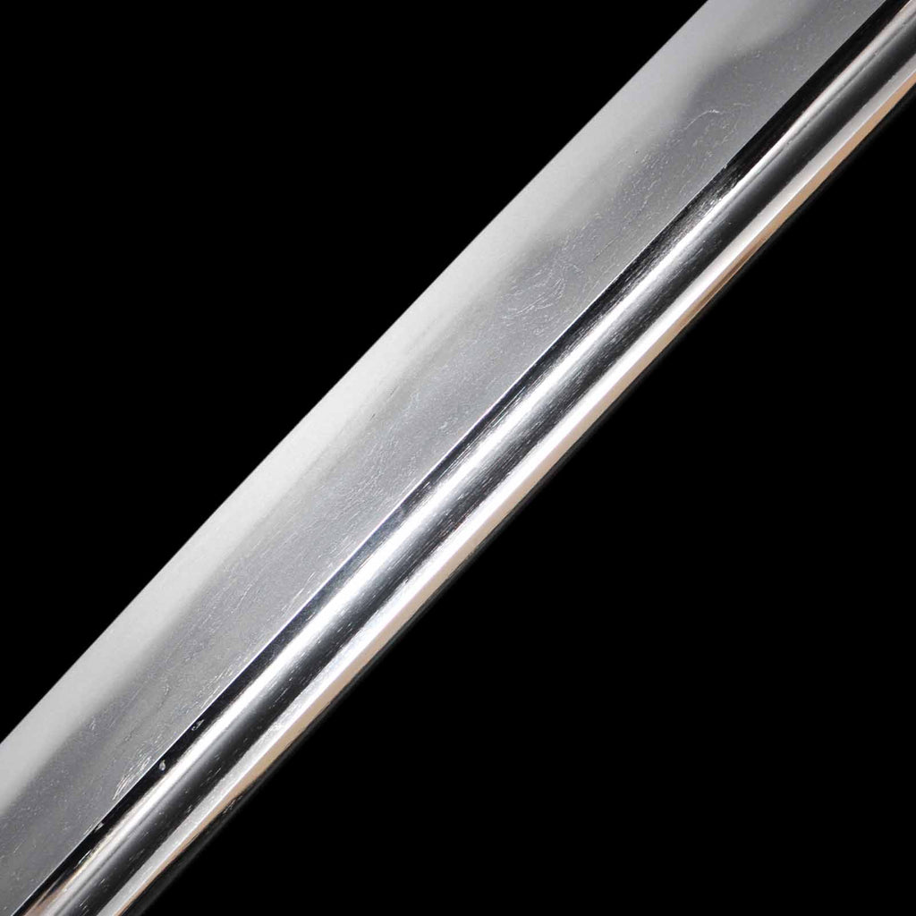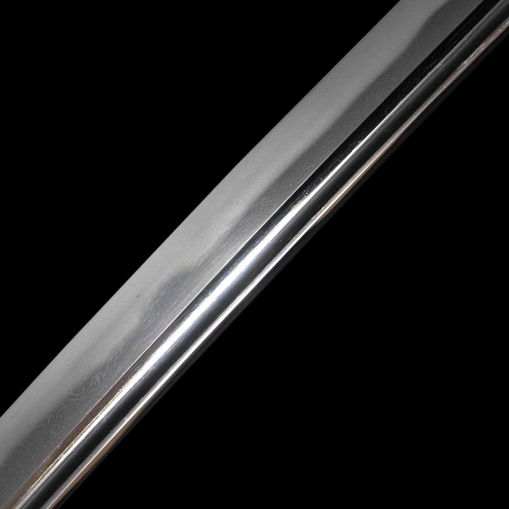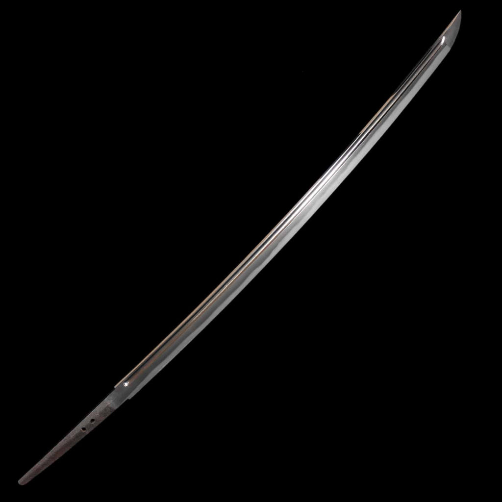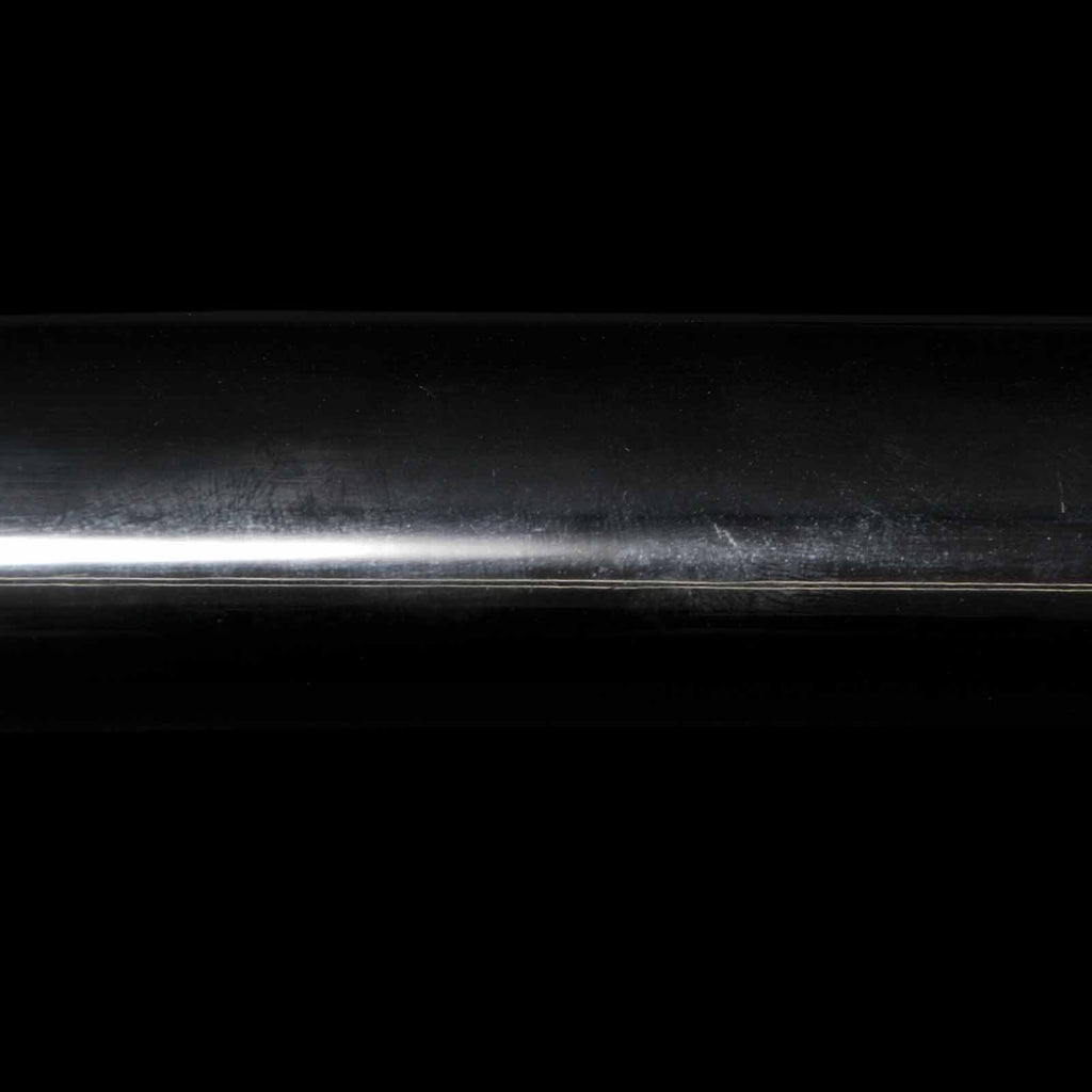 This sword has a magnificent appearance that is typical of the Shinto period. The well-packed itame hada is very active with hataraki such as yubashiri and chikei. It is decorated with notare hamon with some midare mixed in, and the blade shows aranire and ashi on the blade. The condition of the sword is very good considering its age, and there are no flaws of any kind. The blade is engraved with a groove in the shape of a marutome. On the slightly larger tip, the midare boshi is returned to the shape of a nakamaru. The Society for Preservation of Japanese Art Swords has authenticated this piece as a tokubetsu hozon as it is especially worthy of preservation for future generations and has issued a certificate for it.