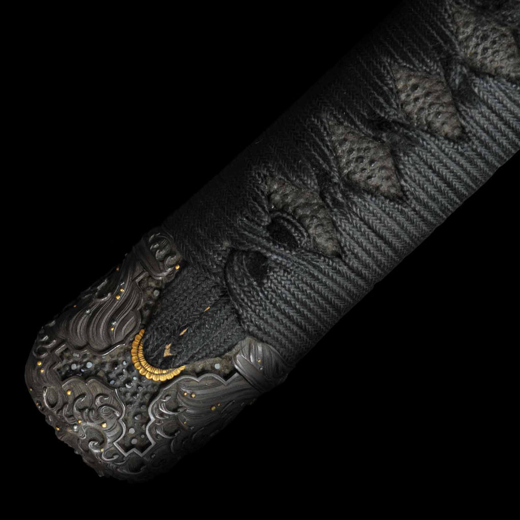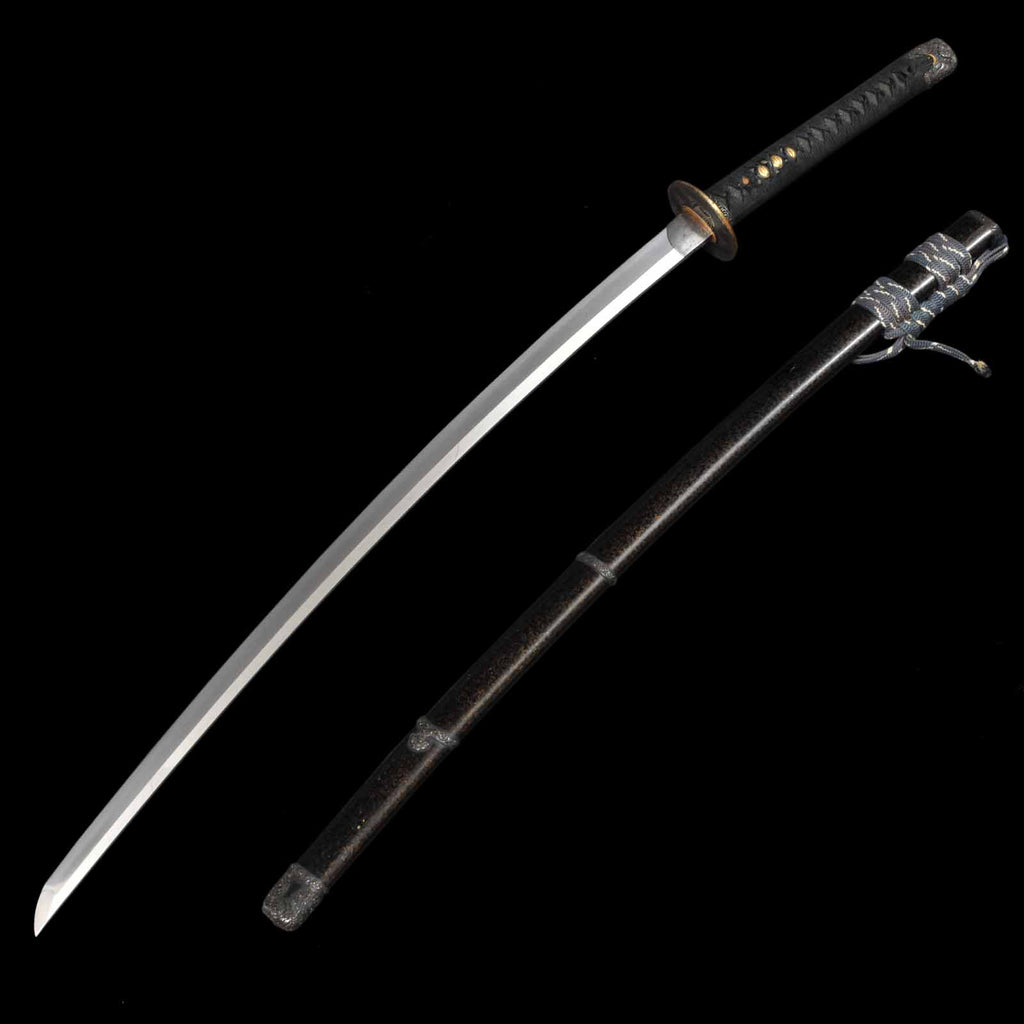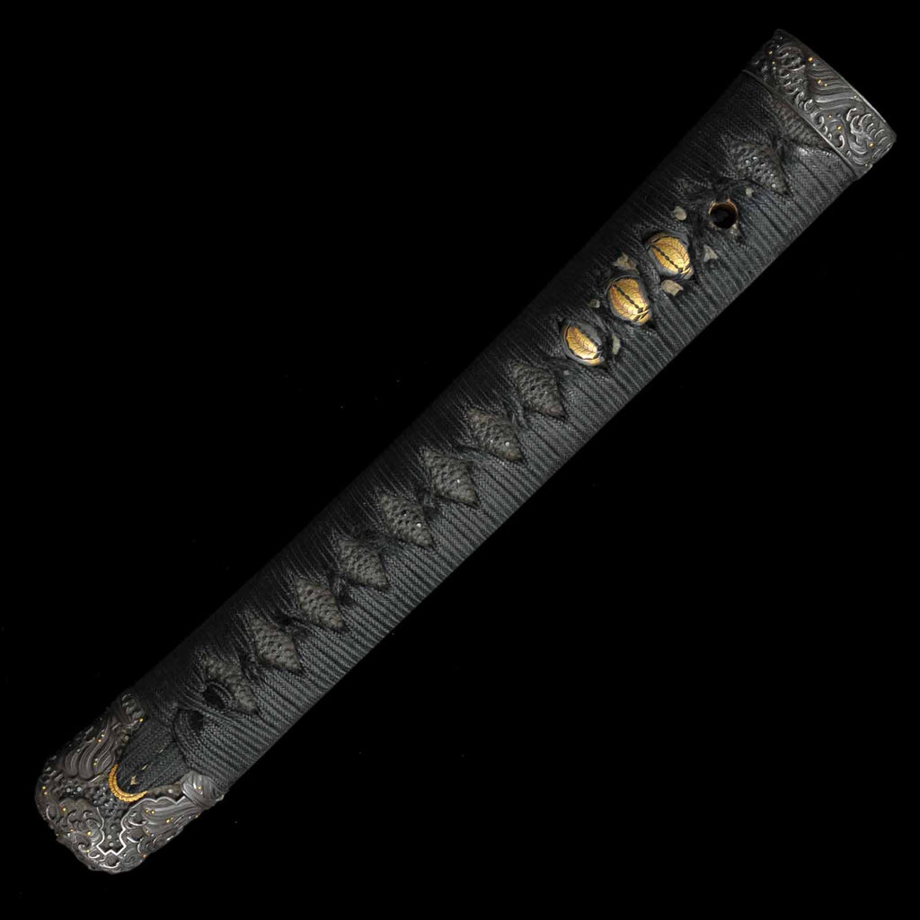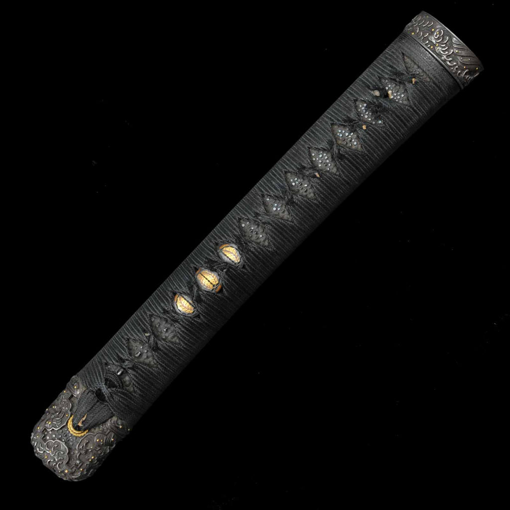 - Koshirae: Handachi Koshirae, black silk tsuka wrapping with Tsuishu lacquered saya