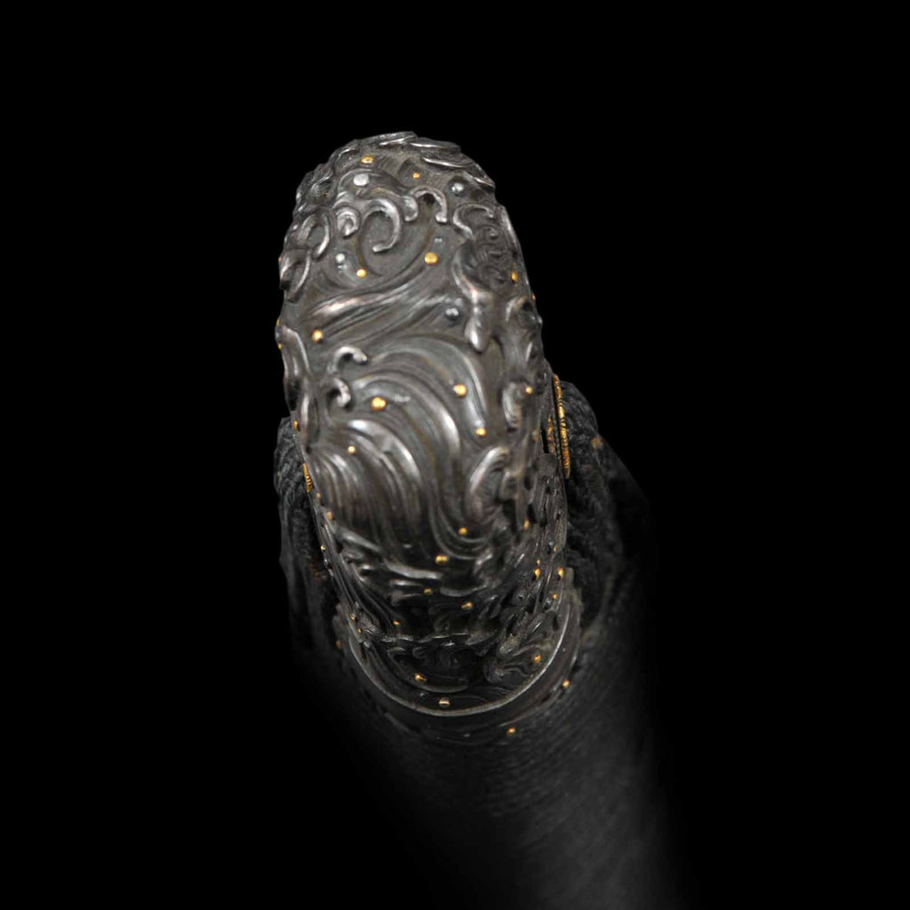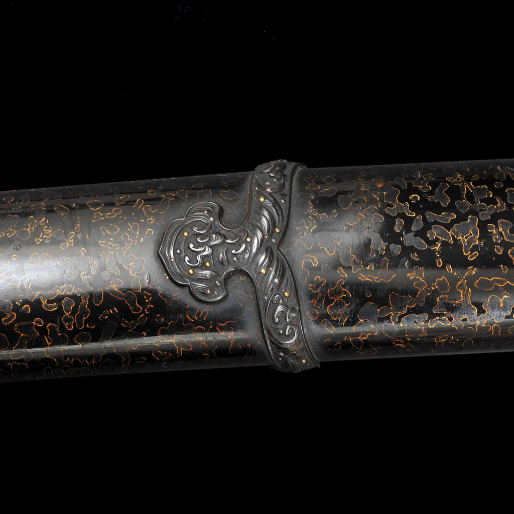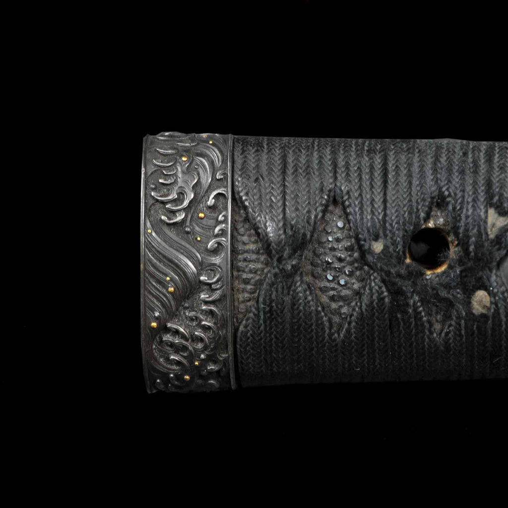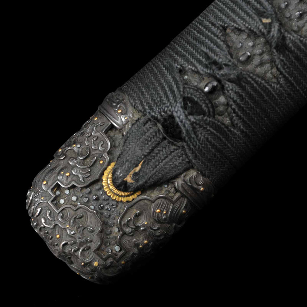 - Koshirae: Handachi Koshirae, black silk tsuka wrapping with Tsuishu lacquered saya