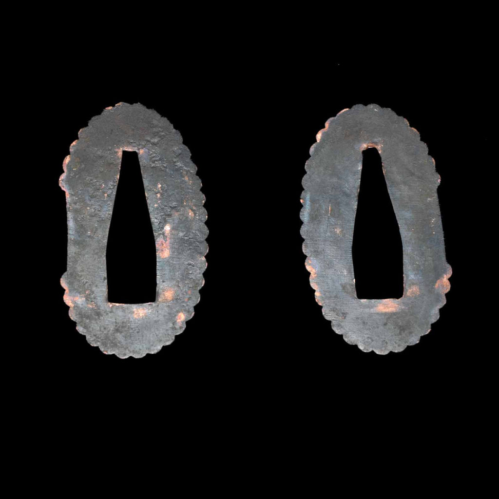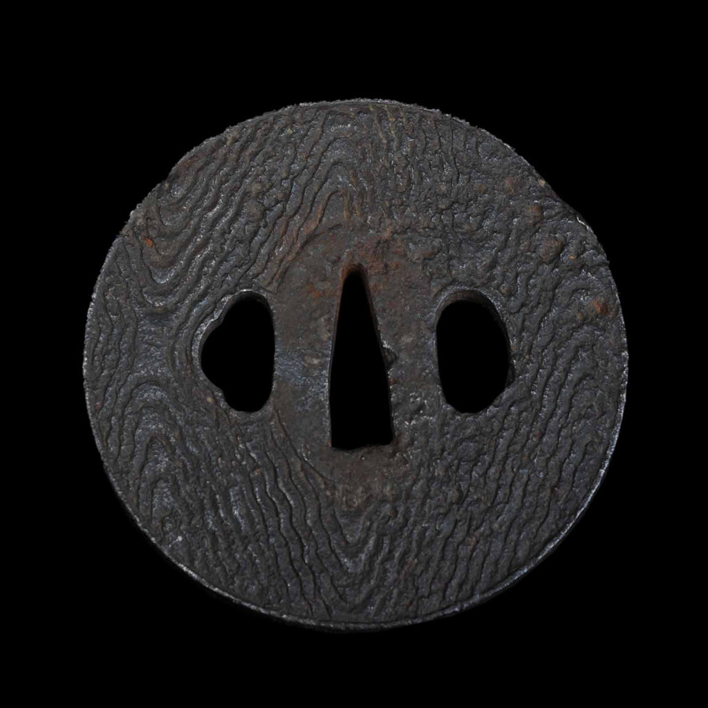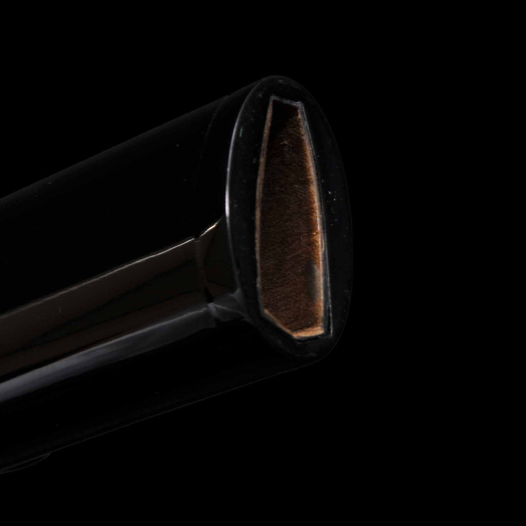 While the surface of the sword is a little cloudy overall, it is of excellent quality and there are no particularly noticeable flaws or rust. The well-packed koitame hada with a bright suguha hamon mixed with notare. The nie is finely covered and a lot of hataraki can be seen in the ha. This is a typical Kanbun period piece with little curvature. The copper fuchikashira has a dragon motif. The brass menuki has a lion design, which is not spectacular, but matches well with the sword blade.