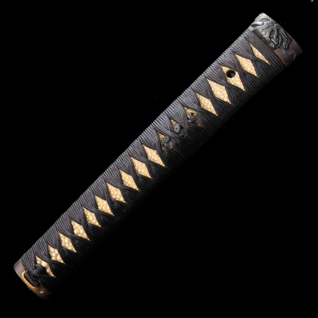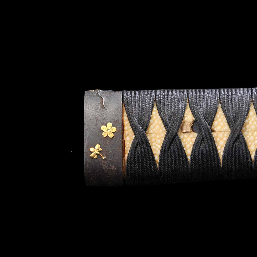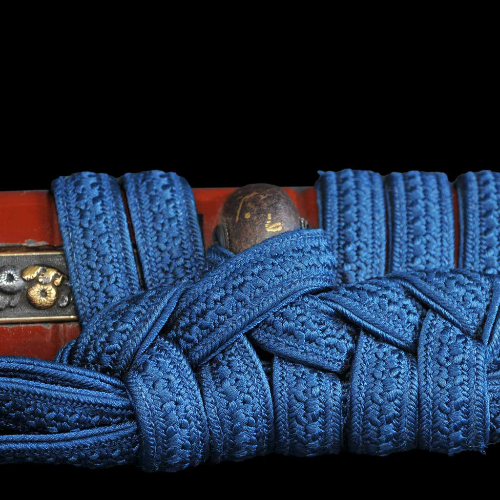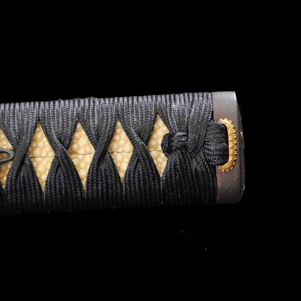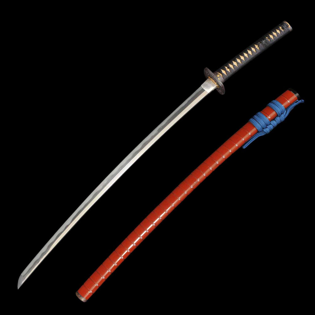 - Koshirae: Black silk Tsuka wrapping with vermillion gloss Kizami Saya/Shirasaya